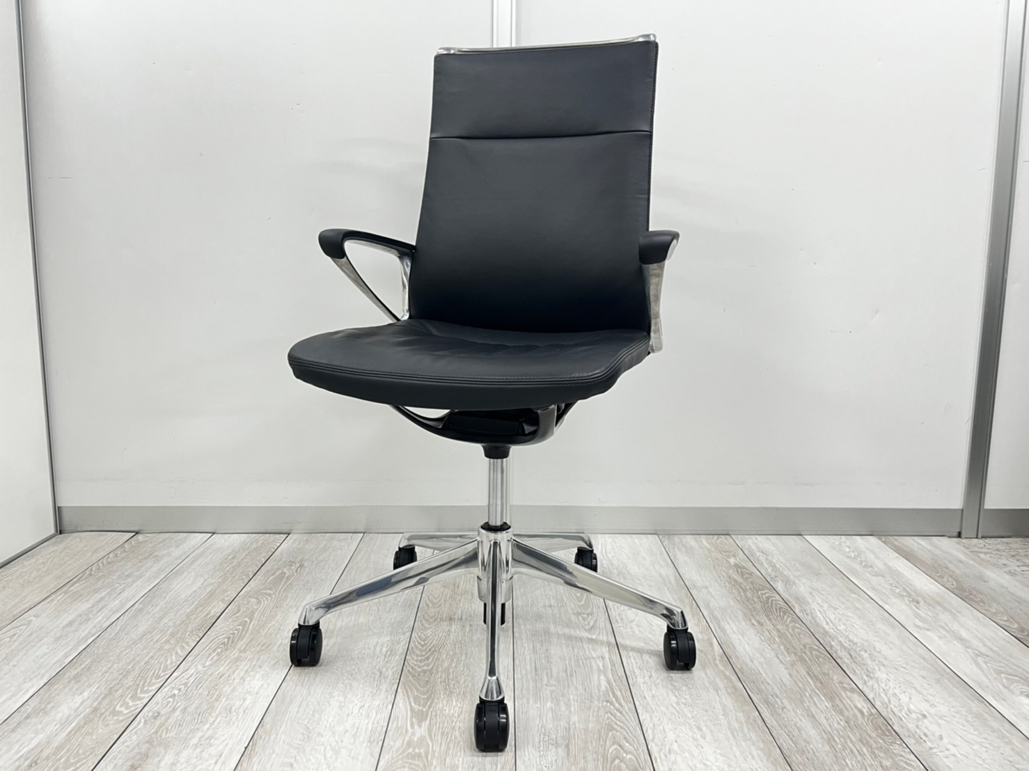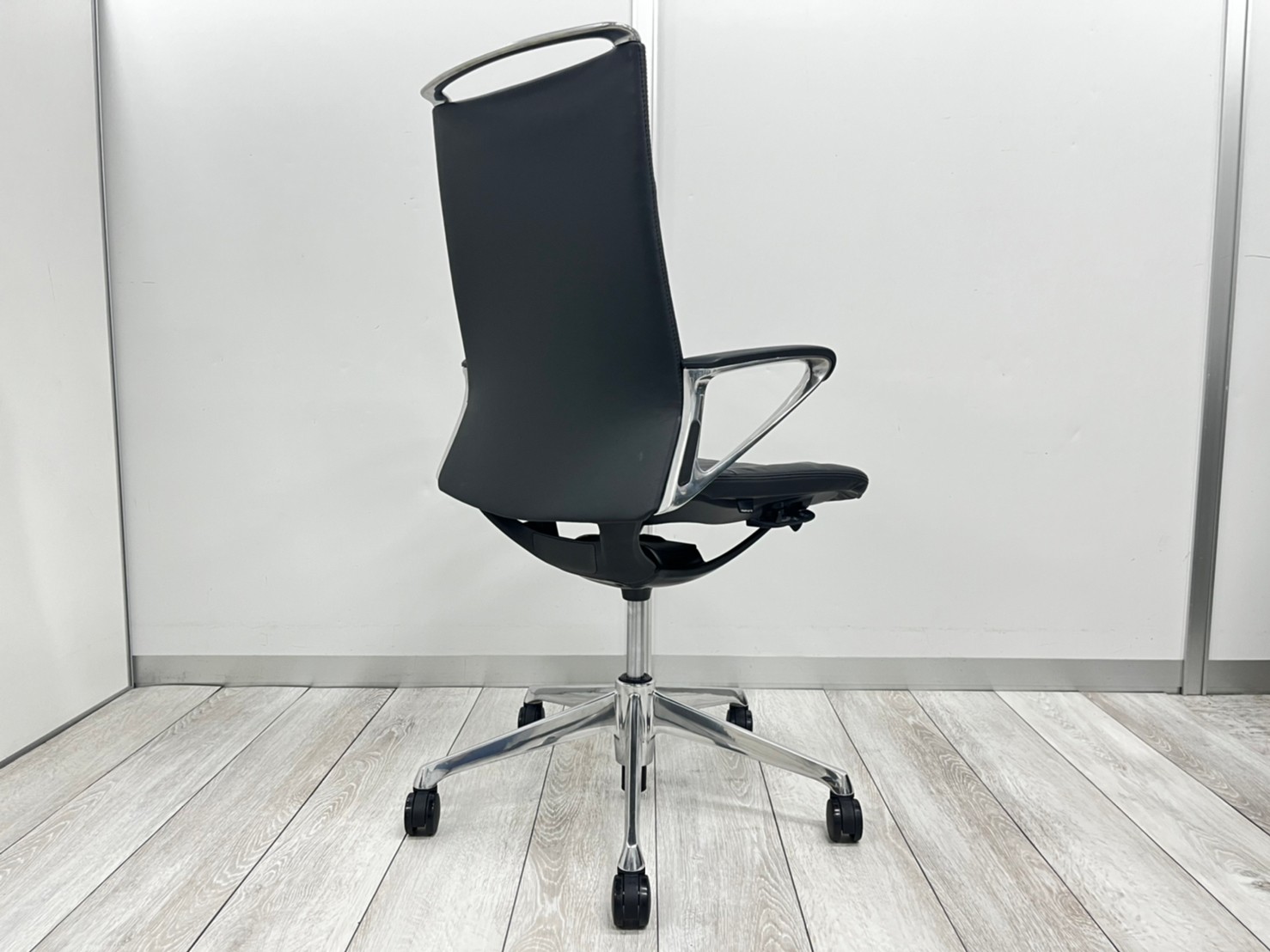 【会議室やモダンなオフィスの執務用として人気のチェア!レザータイプが入荷!】■オカムラ(okamura) モードチェア(mode) 肘付き ハイバック ■張地:レザー 色:ブラック ■デザインアーム