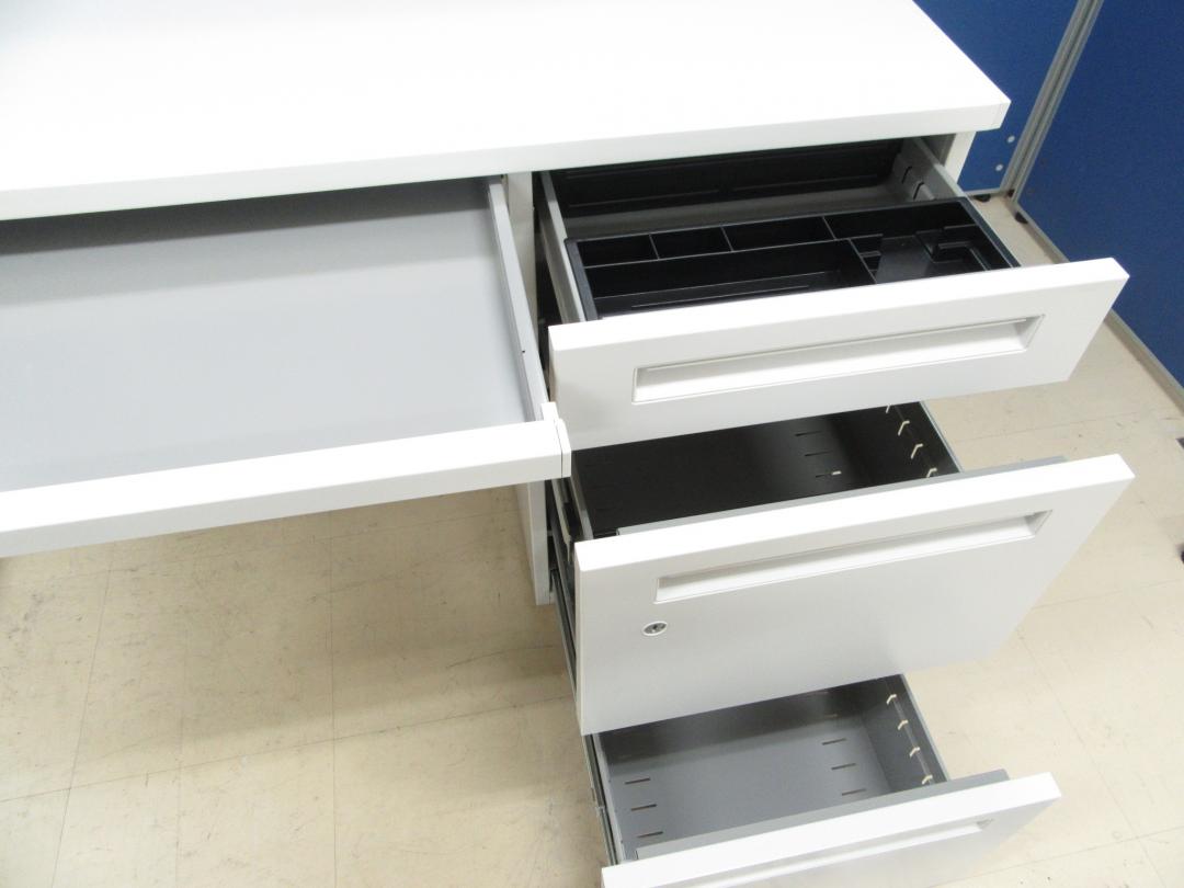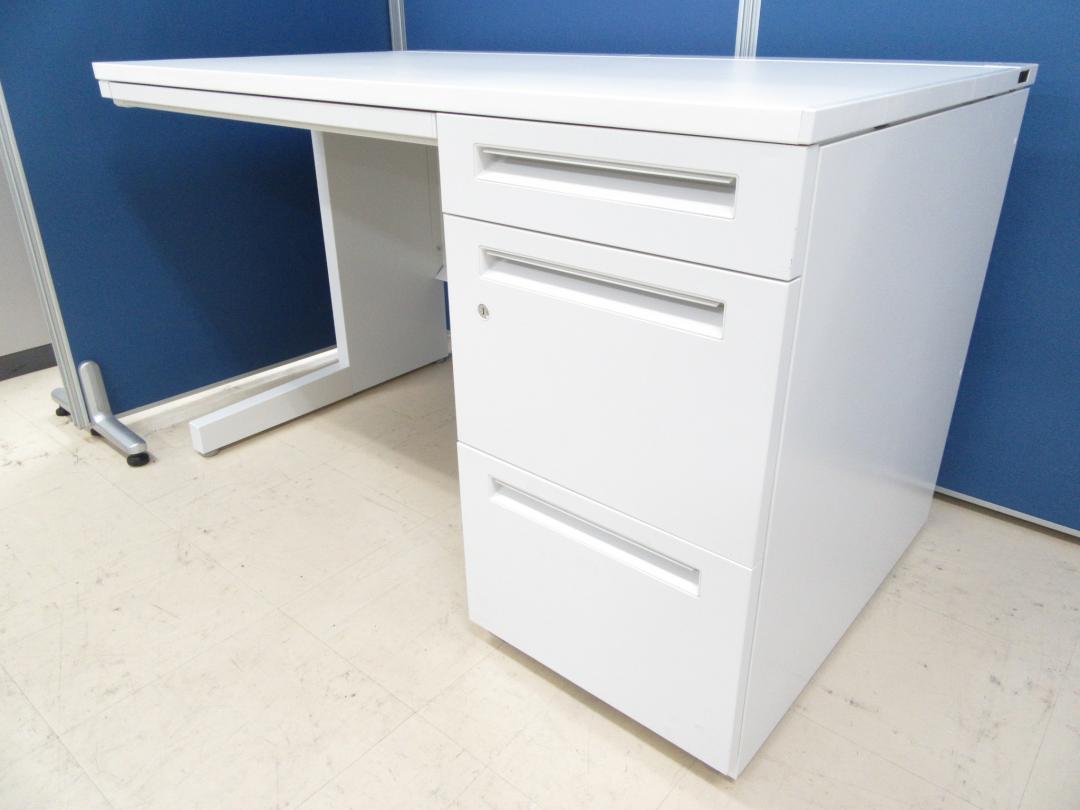 【引き出しつきデスクとワゴンの特別セット!】■内田洋行 スカエナシリーズ デスク+ワゴンセット ■横幅1200㎜×奥行き700 ■引き出しなし ■ホワイト 【中古でお得に買うなら品質の良いデスクを!】 ※ワゴンは在庫状況によって変動致します。