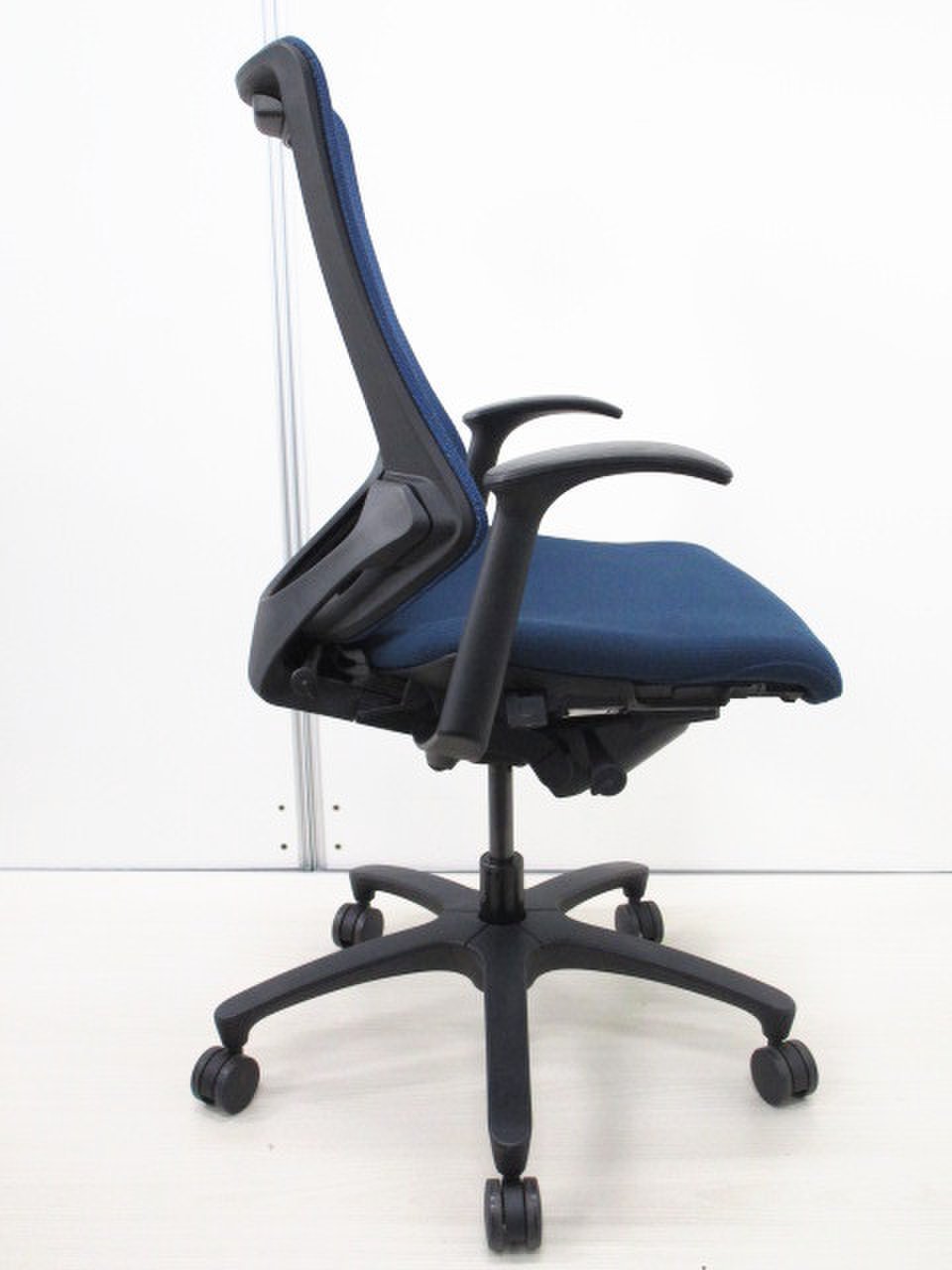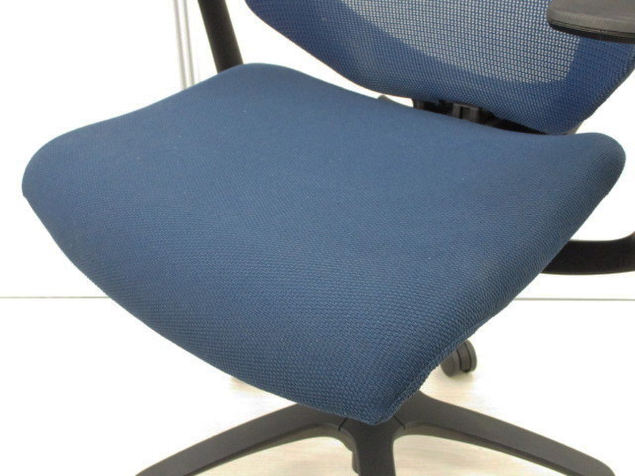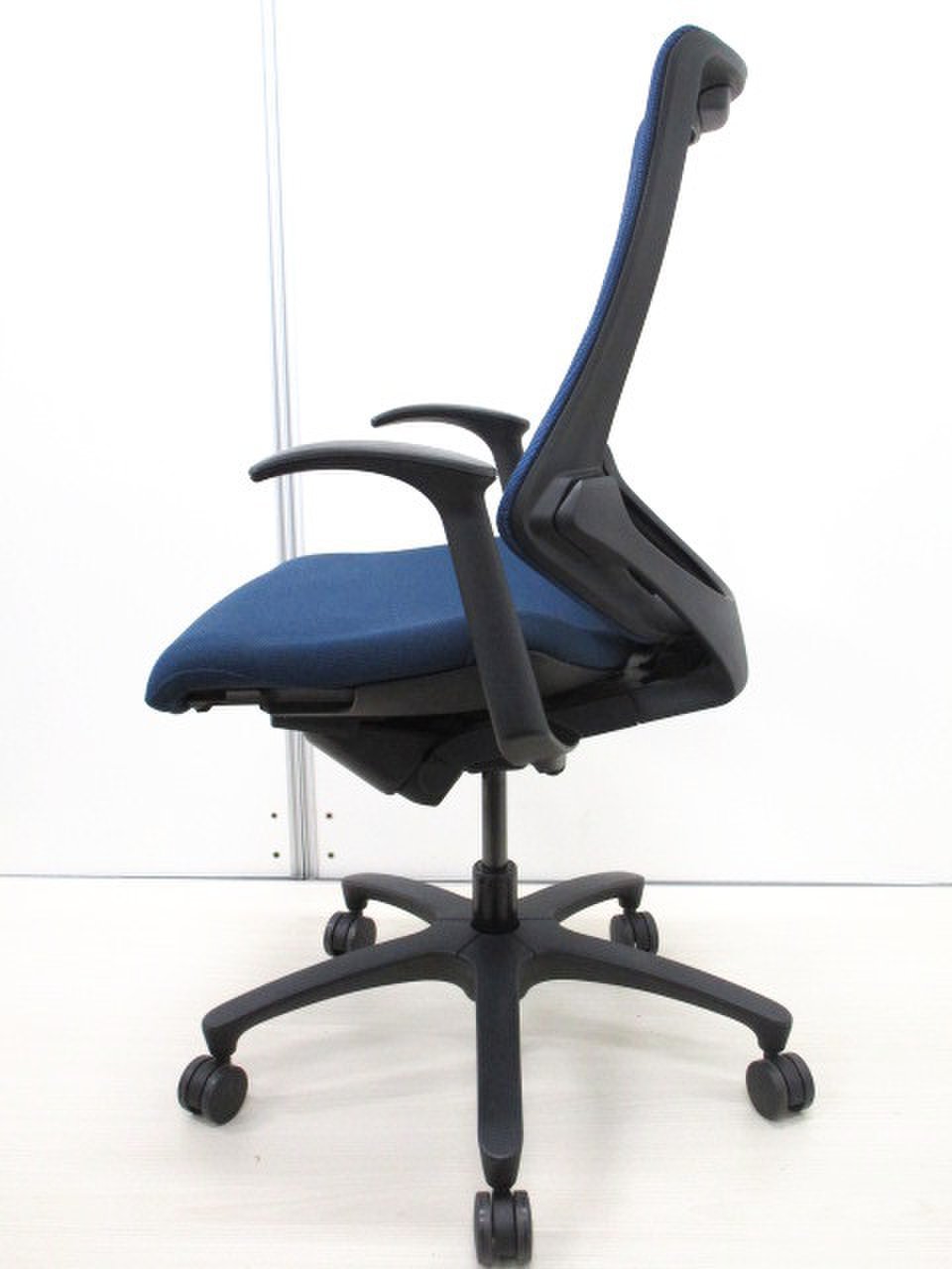 【包み込まれるフィット感!】 ■イトーキ製 エフチェア 肘付 ネイビーブルー ■デスクワークの疲労を軽減!