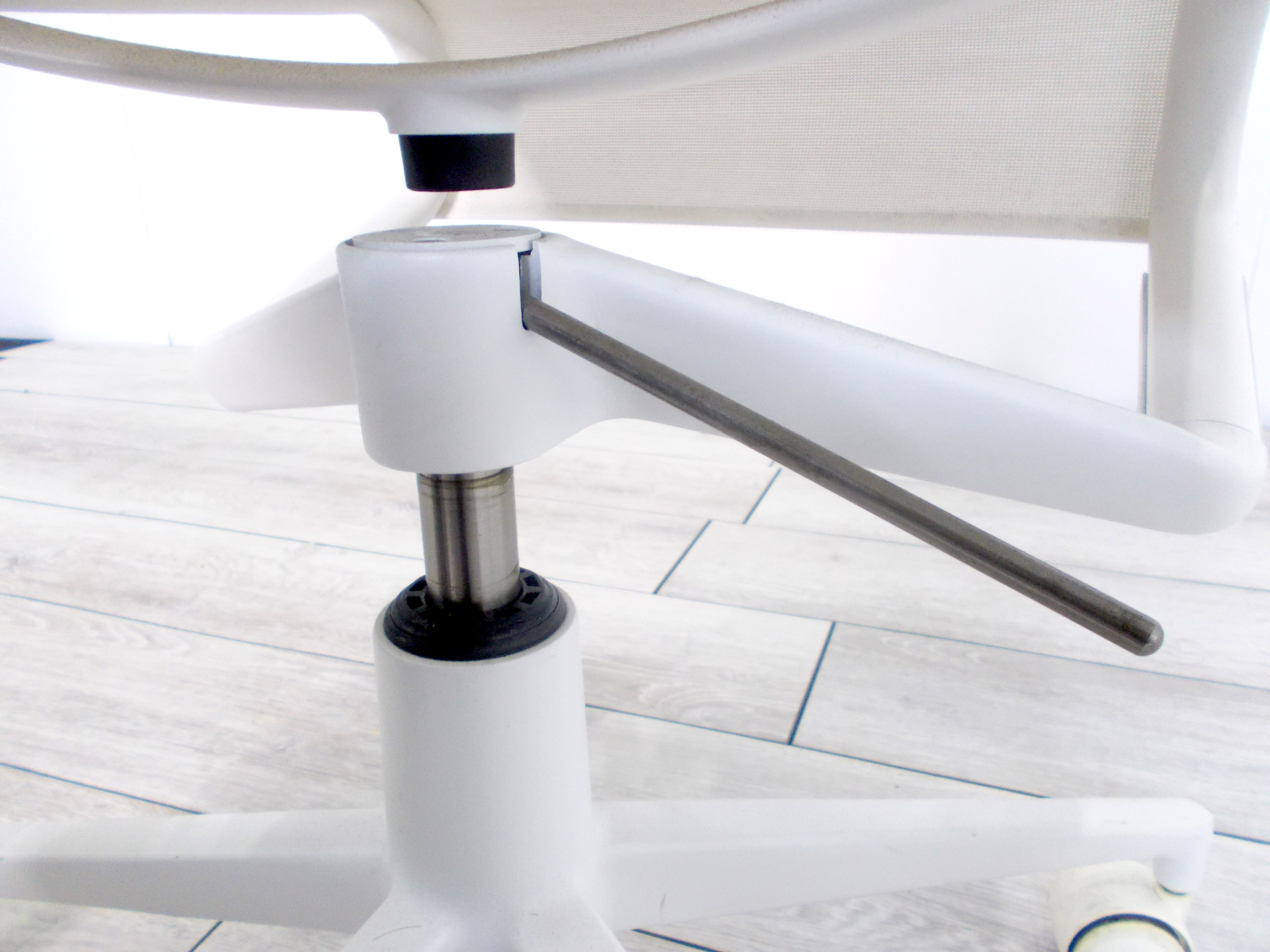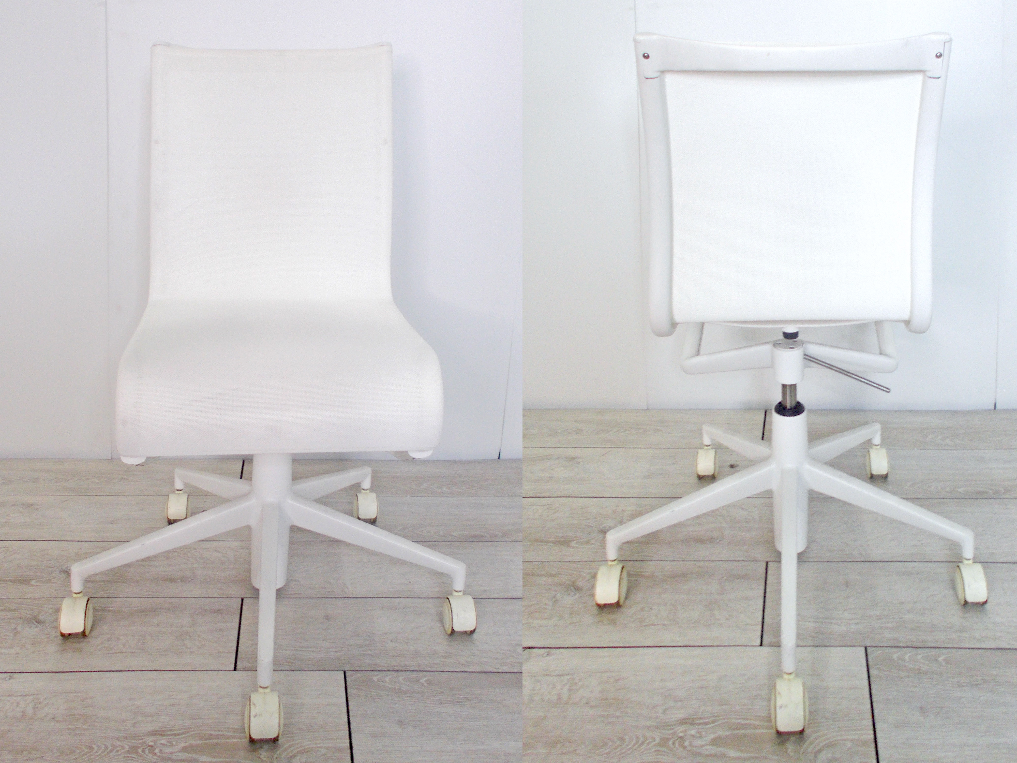 - かなり強い濃い黄ばみ・変色が商品全体にある。(例、座面・背もたれ、脚部等にある。)