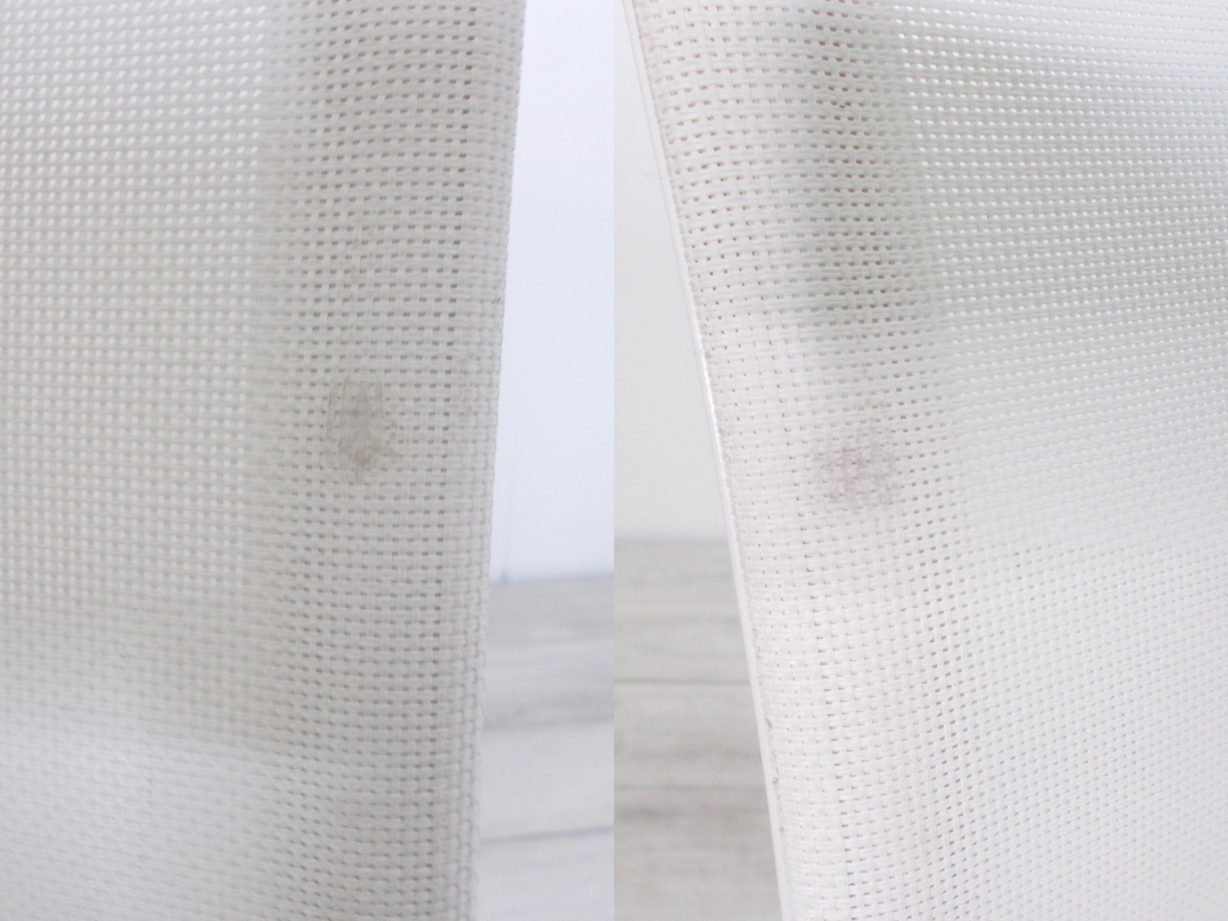 - あり黄ばみ・変色が広い範囲にうっすらある、または濃い黄ばみ・変色が一部ある。(例、座面・背もたれ、脚部等にある。)