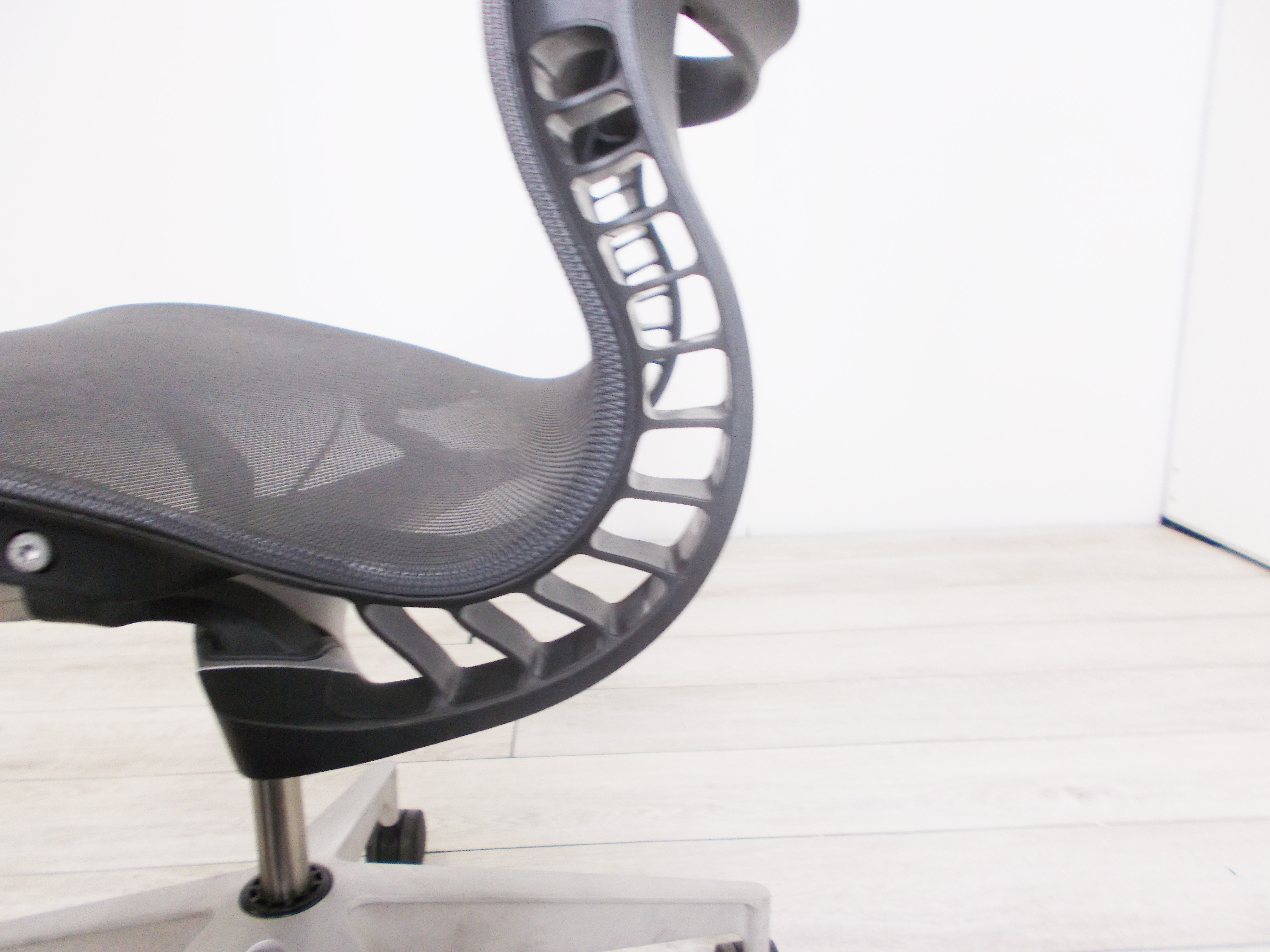 チルト機構やさまざまな調節機能の代わりに、座面と背もたれが身体の動きに連動する、キネマチック・スパインを採用したオフィスチェアです。