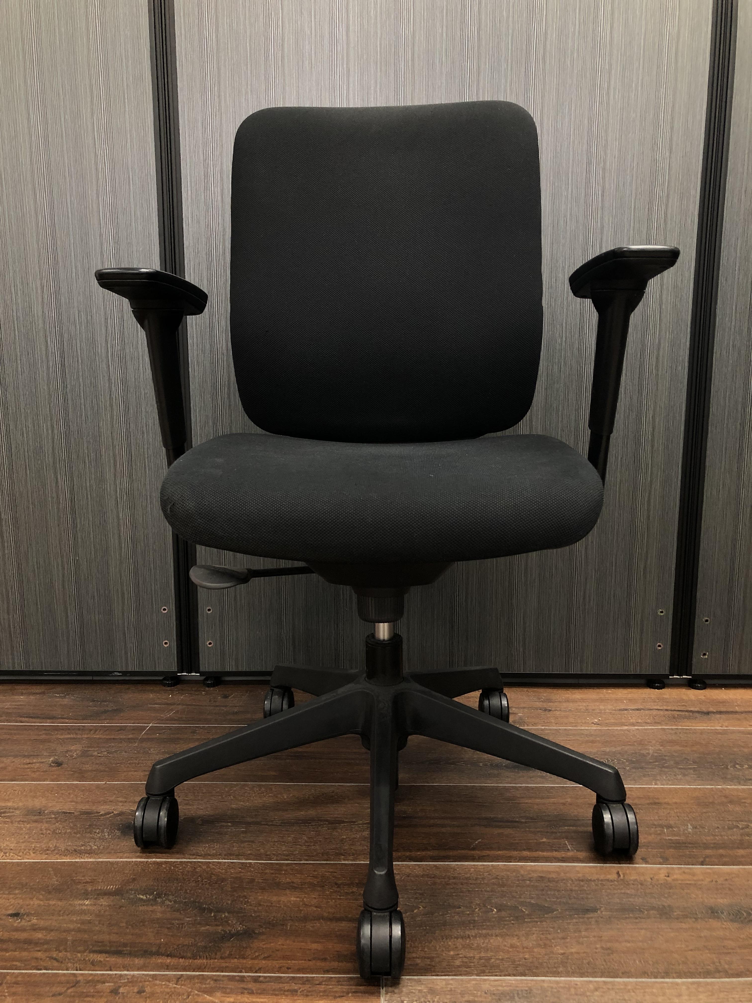 【KS】【ふっくらクッションが心地良い!】■オカムラ製 シージーアールチェア 可動肘付 ブラック ※クッション劣化 肘擦れ【在庫入替】サーキュラーバリューCO2削減量の算出について