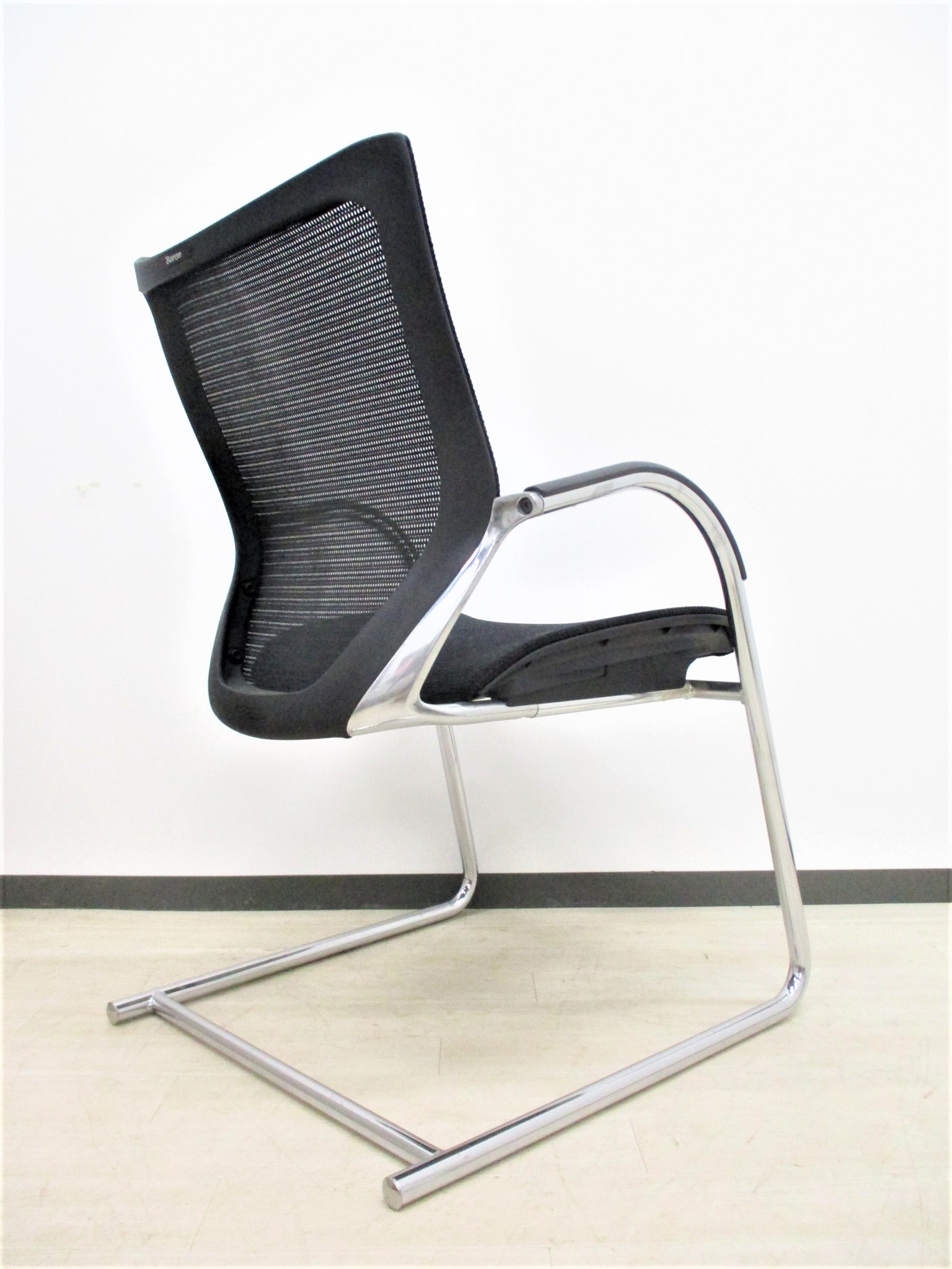 【在庫入替セール】オカムラ バロン ゲストチェア(ミーティングチェア) 背メッシュ×座クッション カンチレバー脚 ブラック×クロームメッキ