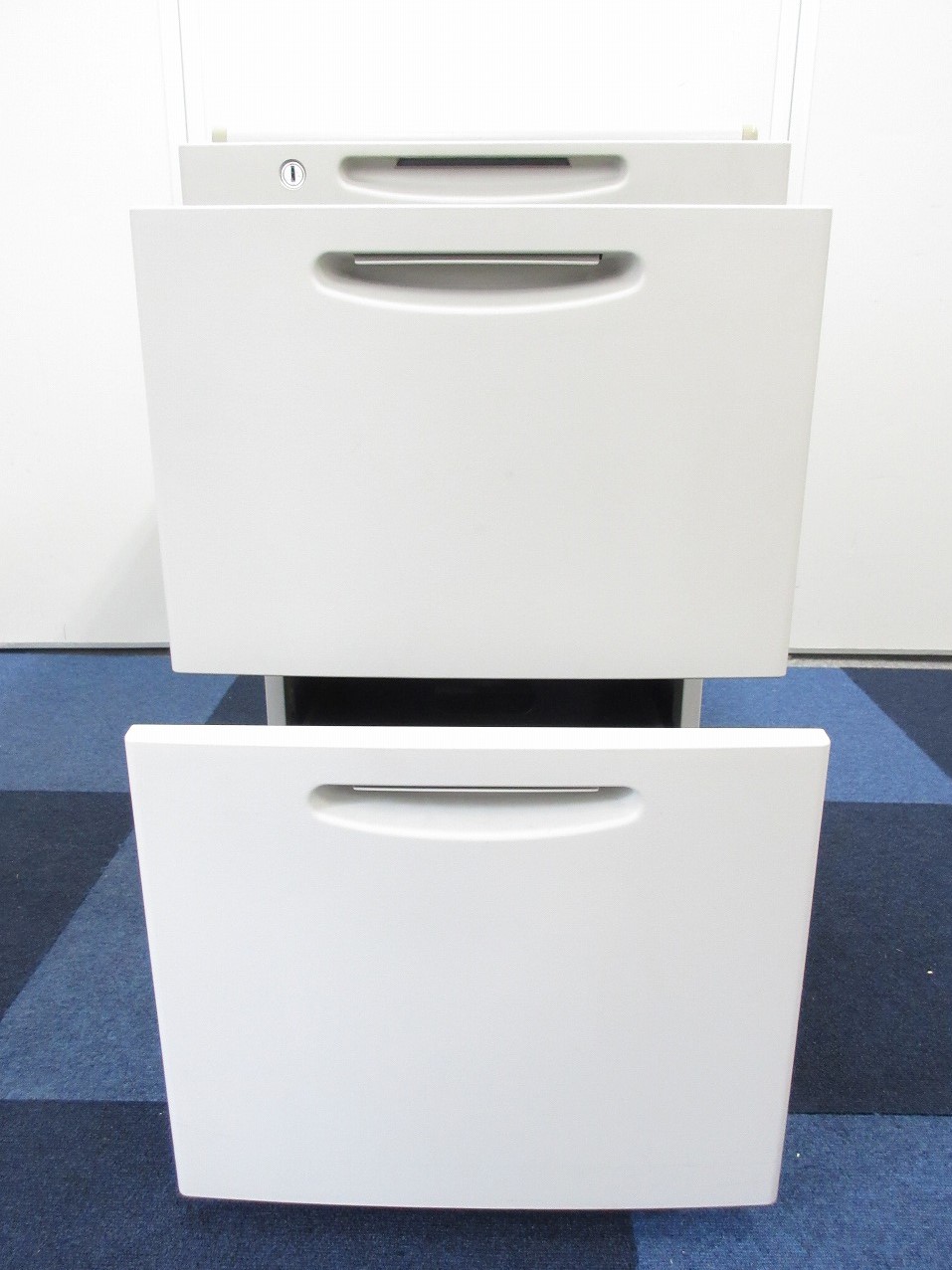 - 一部不具合ありその脇机・ワゴンの本来の効用を果たすための機能以外の一部が使用不可な状態。(例、引出が開閉しづらい、 キャスターロック機能使用不可、ラッチ不良 等がある。)