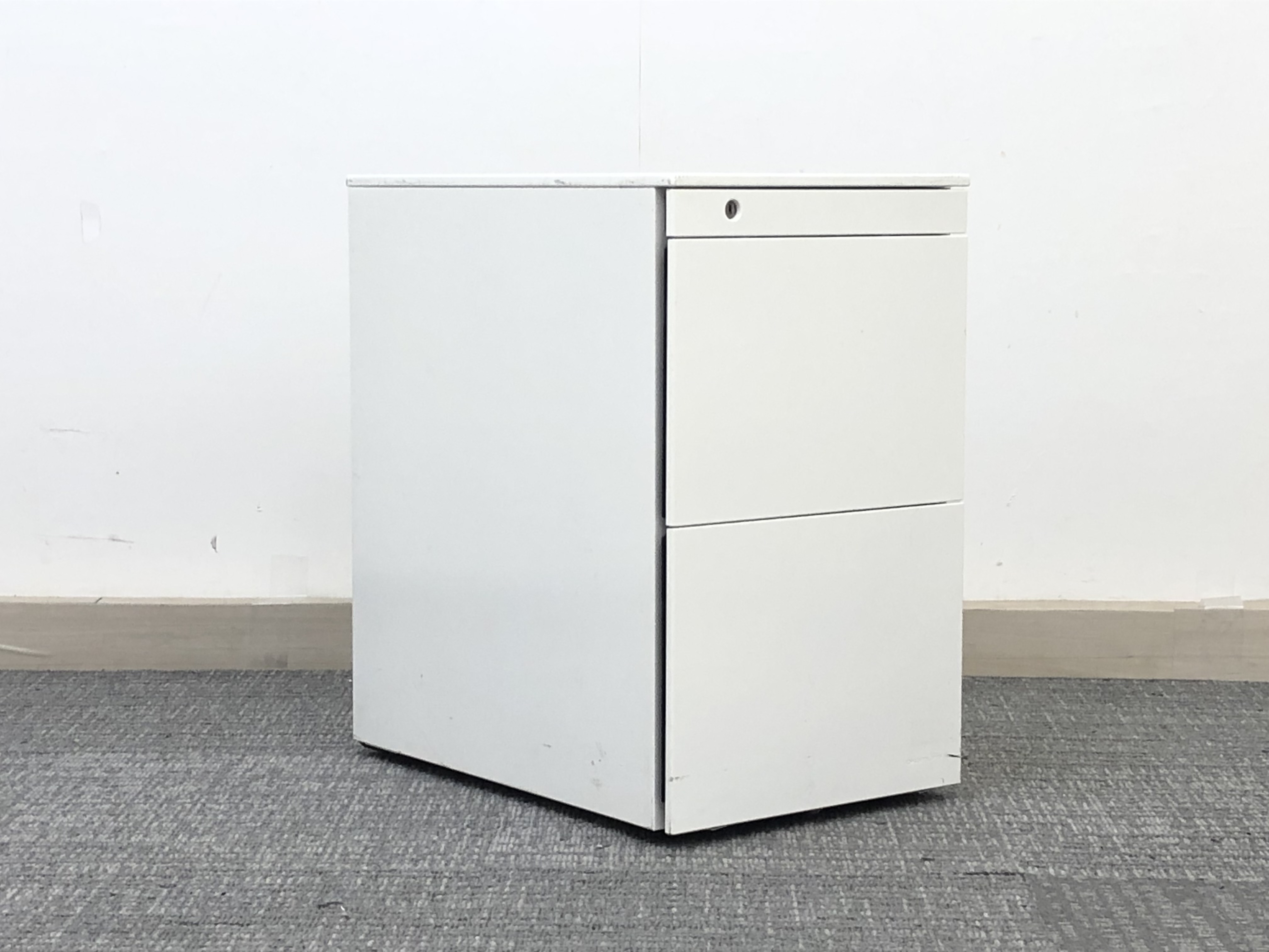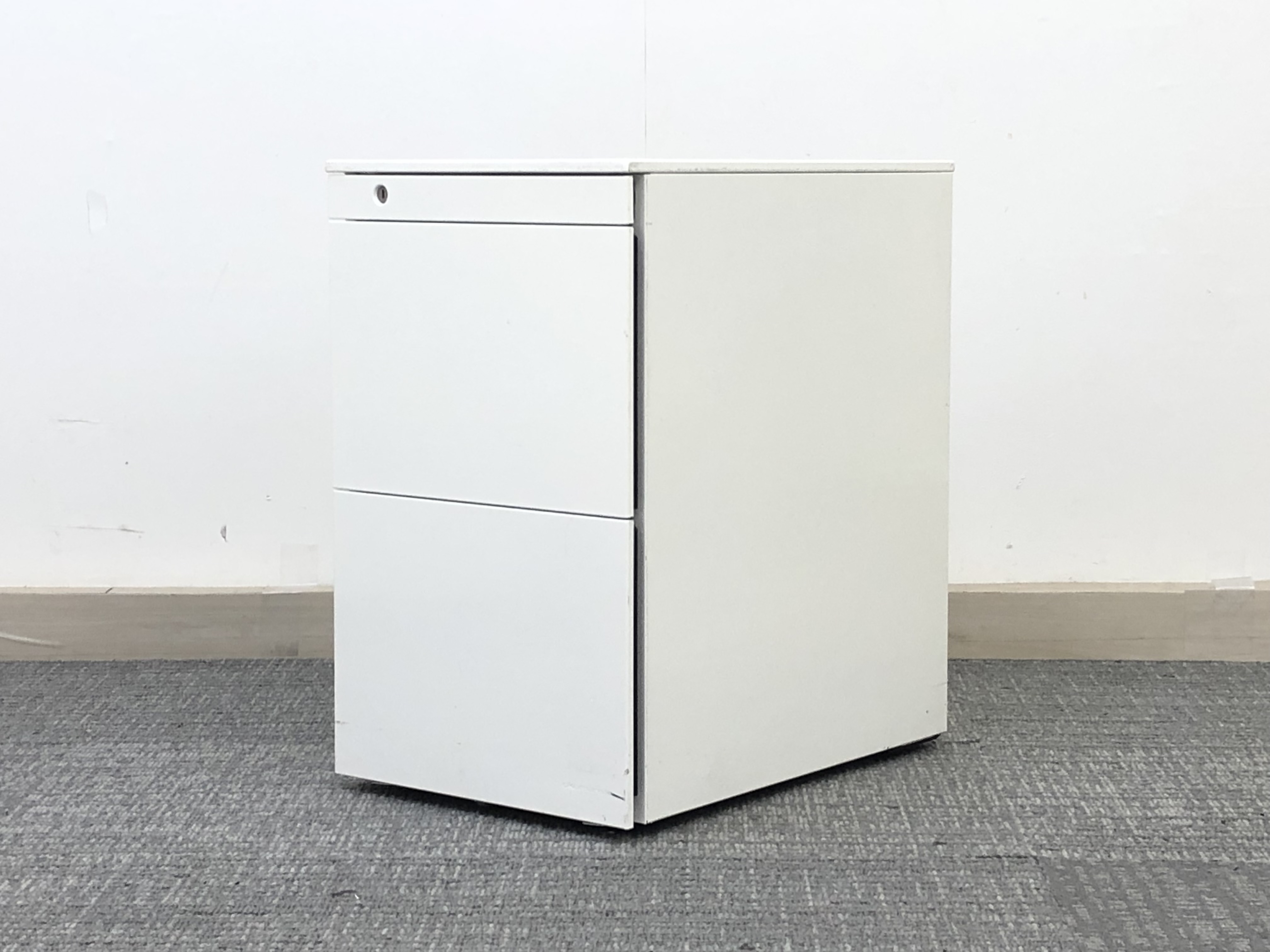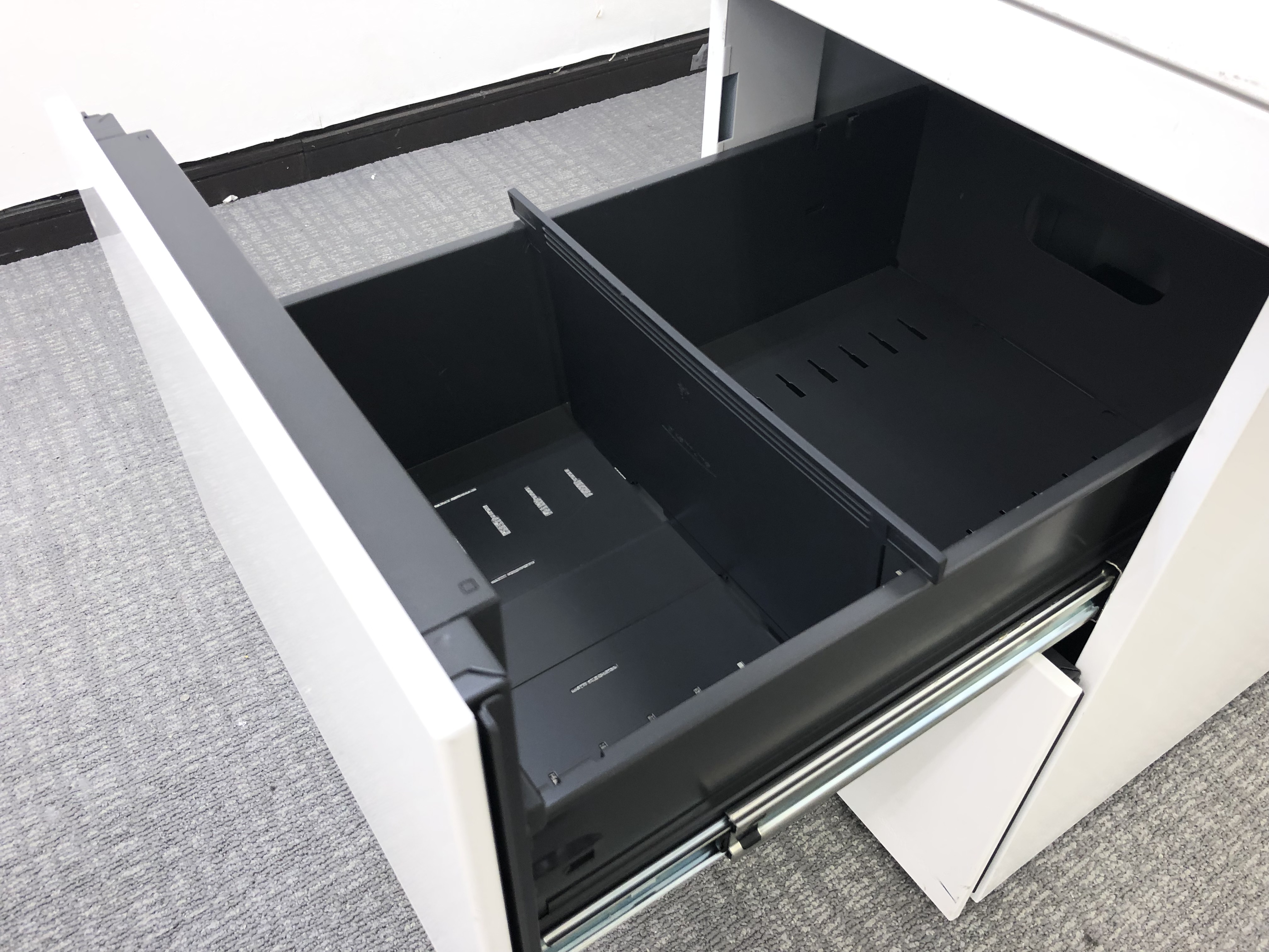 【フリアドデスクや平机の収納力アップに!ファイルや書類の収納に最適な3段ワゴン!】■オカムラ(okamura)製 プロユニット(Pro Unit)シリーズ 3段ワゴン フリアド用ワゴン H650㎜ ■シリンダー錠 ■ホワイト