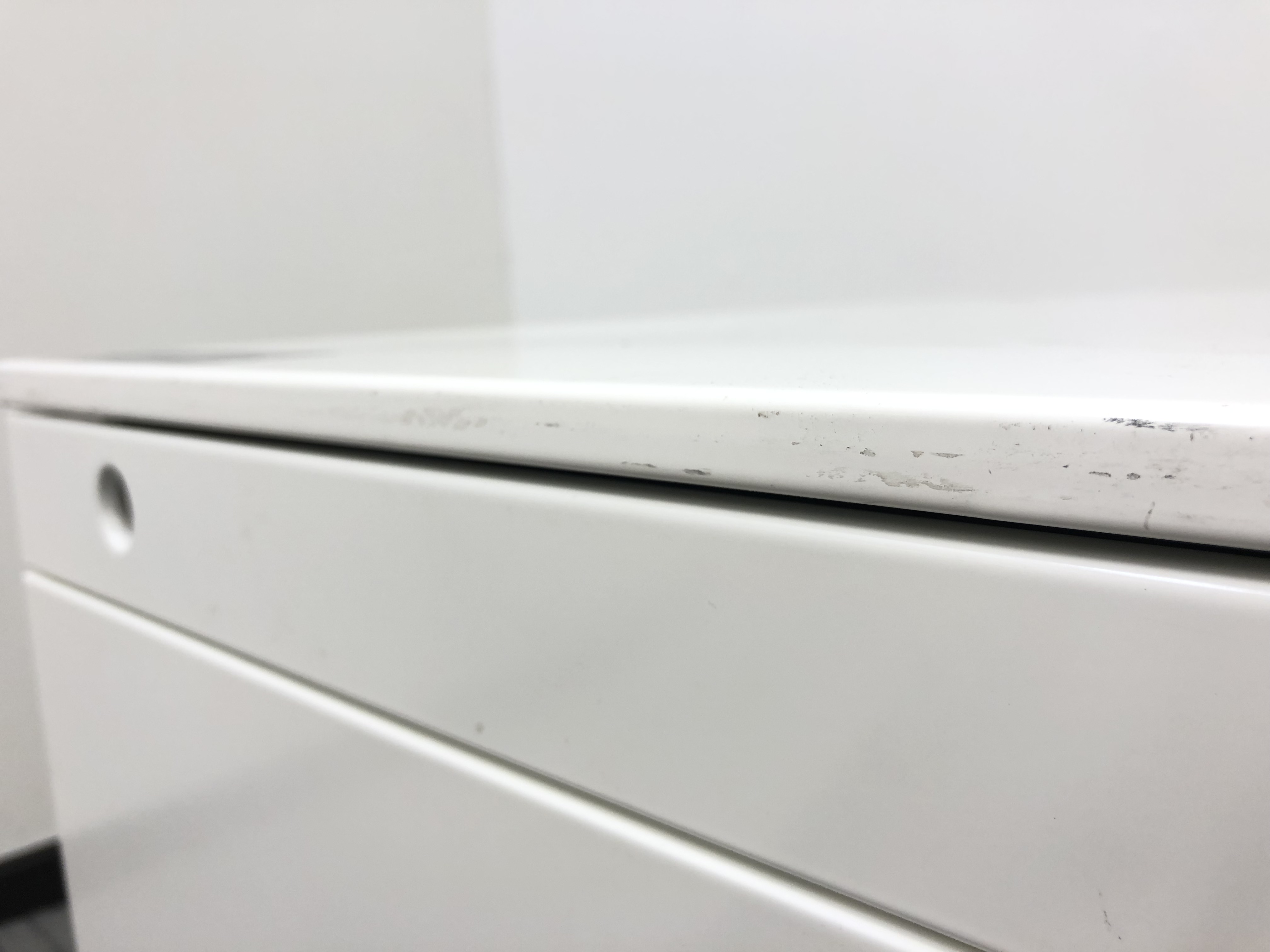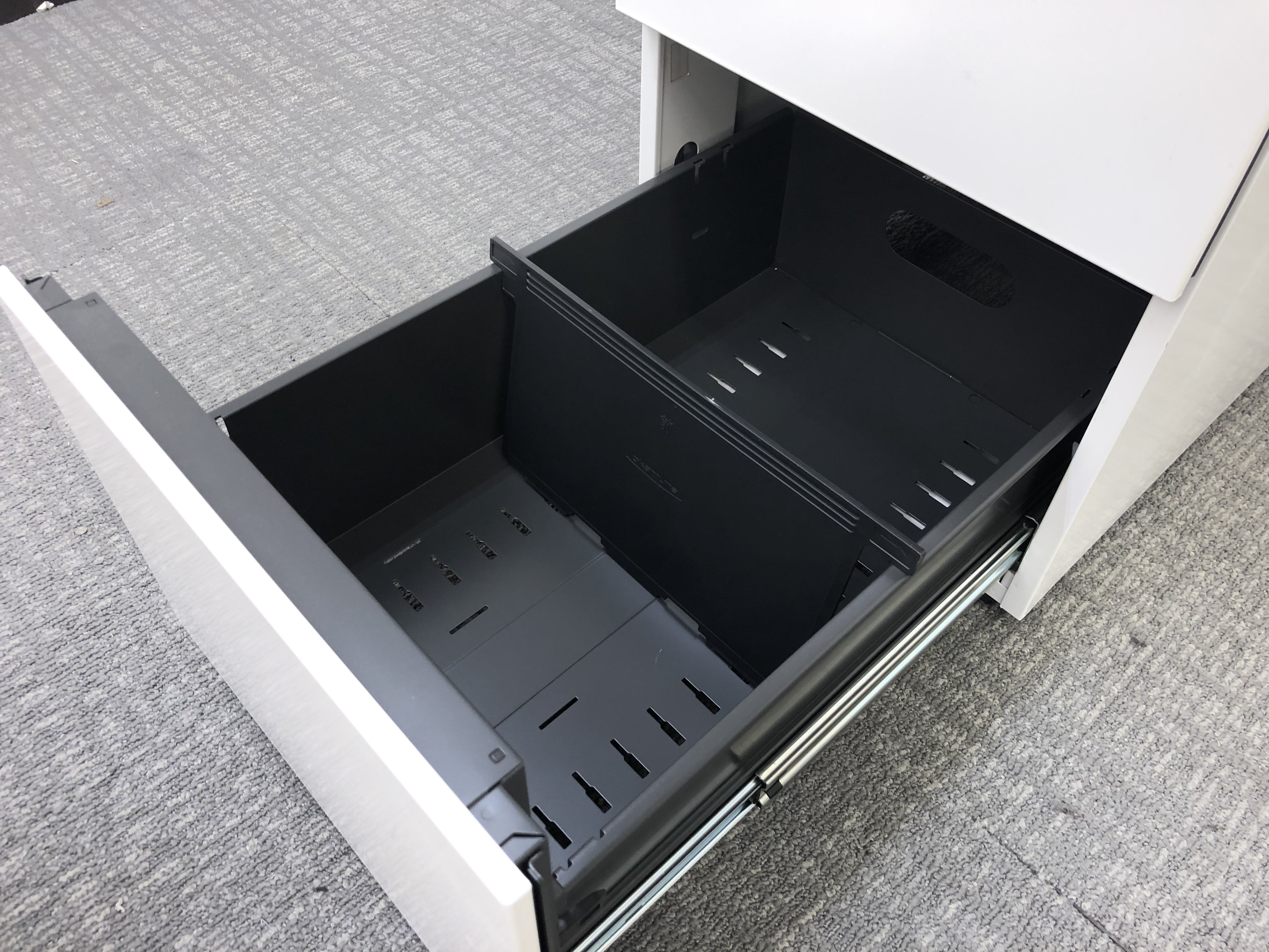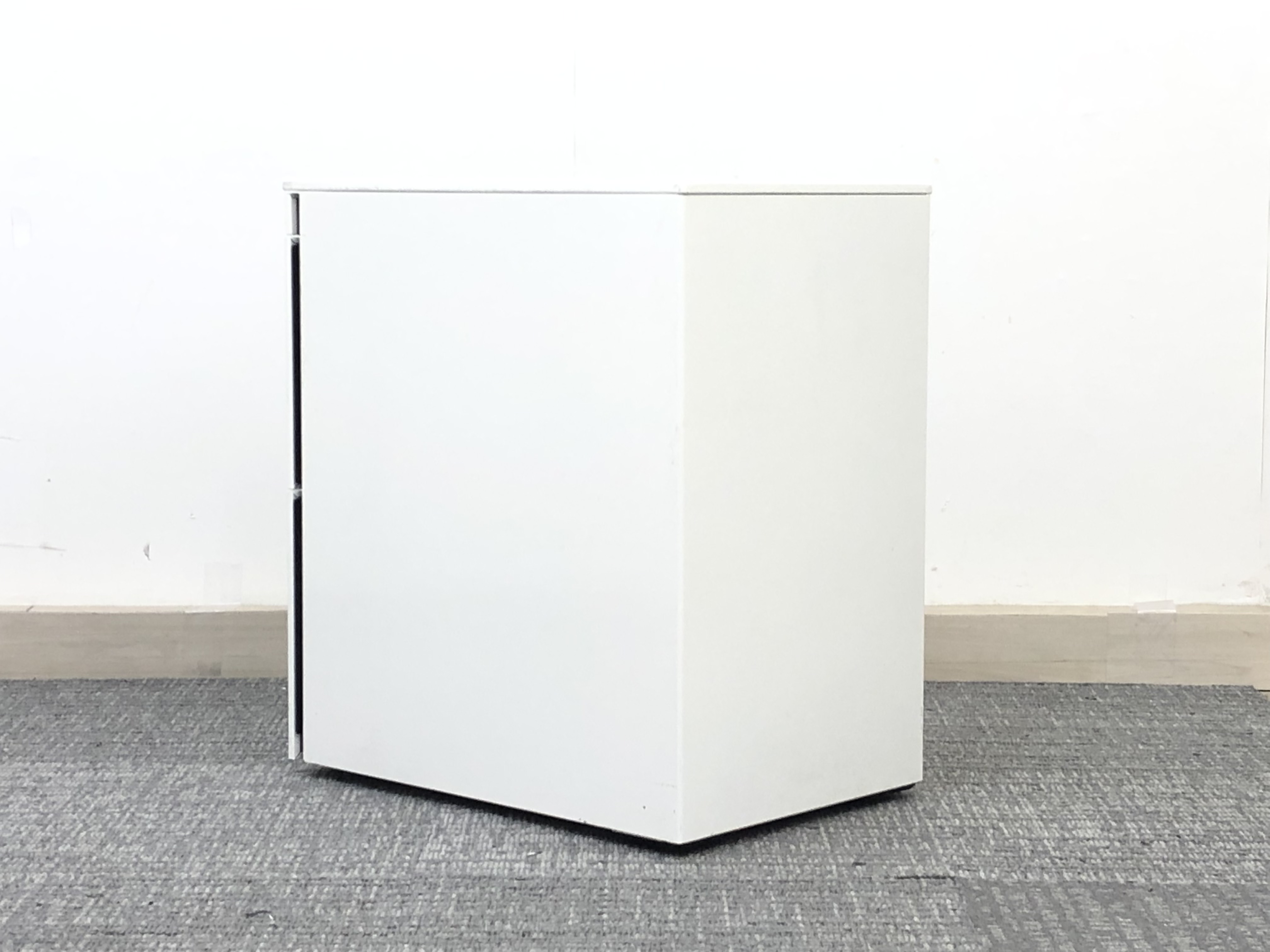 【正面に取っ手が無いフラットなデザイン!キャスター付でレイアウト変更がスムーズ!】■オカムラ(okamura)製 プロユニットシリーズ 3段ワゴン フリアド用ワゴン H650㎜ ■ホワイト ■シリンダー錠 ※キズ・塗装剝がれ有