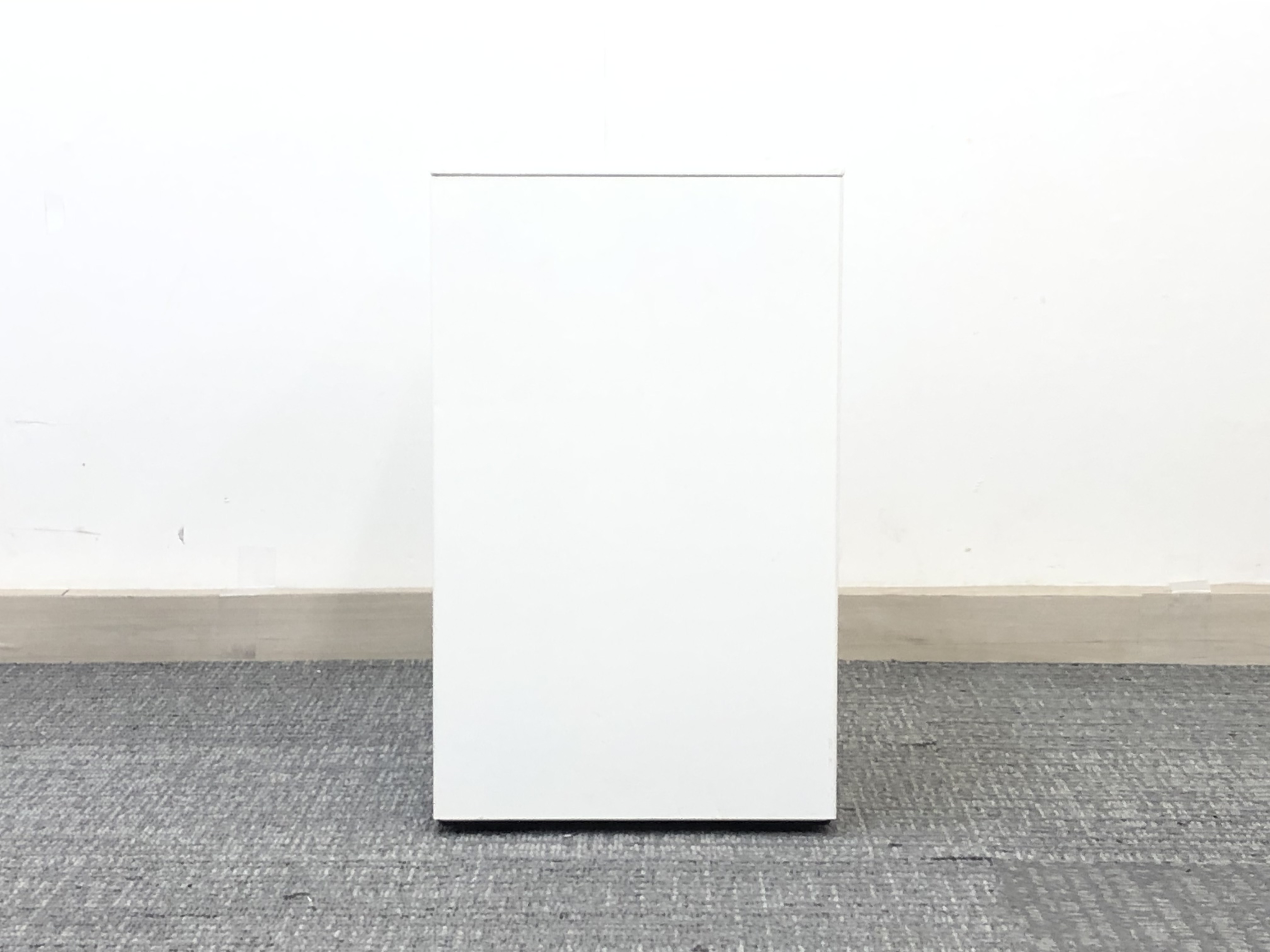 【正面に取っ手が無いフラットなデザイン!キャスター付でレイアウト変更がスムーズ!】■オカムラ(okamura)製 プロユニットシリーズ 3段ワゴン フリアド用ワゴン H650㎜ ■ホワイト ■シリンダー錠 ※キズ・塗装剝がれ有【弊社使用欄:A01042240】