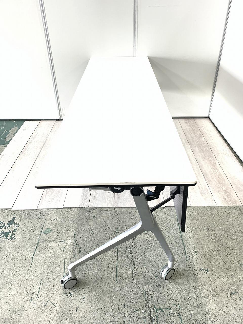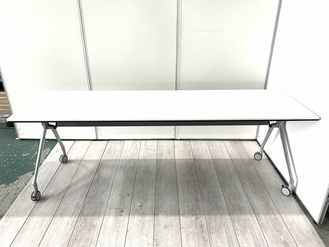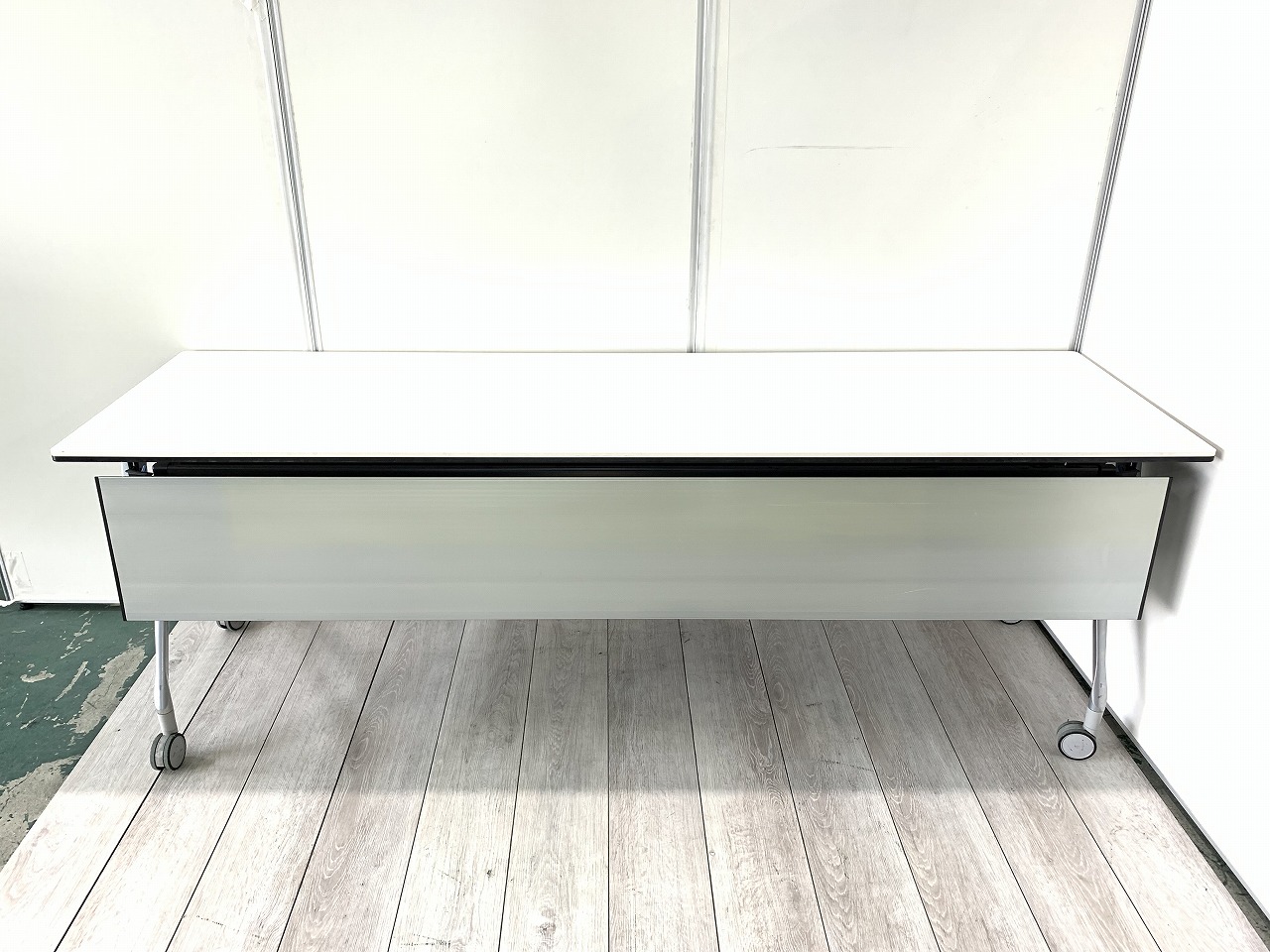 幅2100mm 幕板付き スタックテーブル フォールディングテーブル ホワイト キャスター付き 2~3名向け- 東大阪店