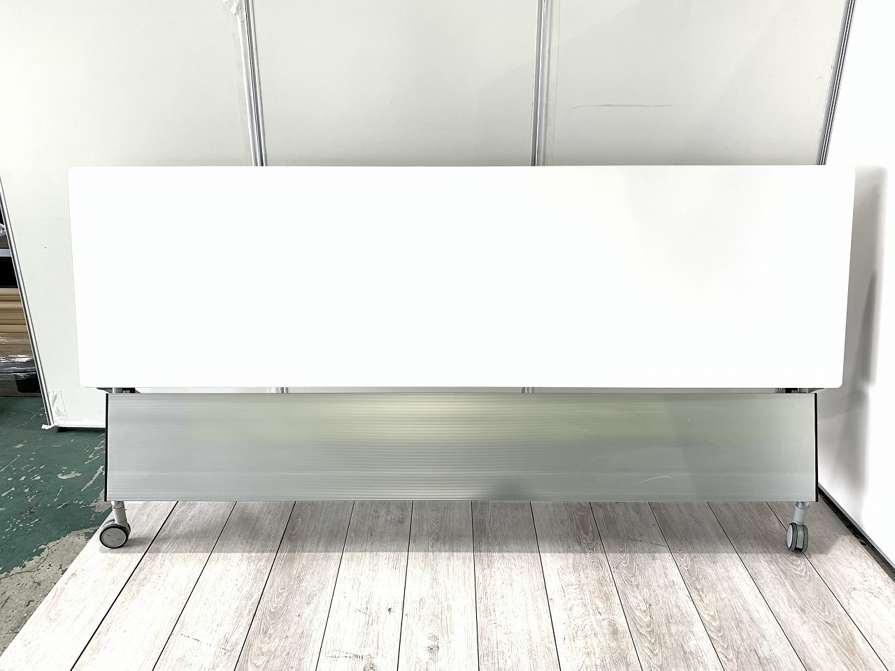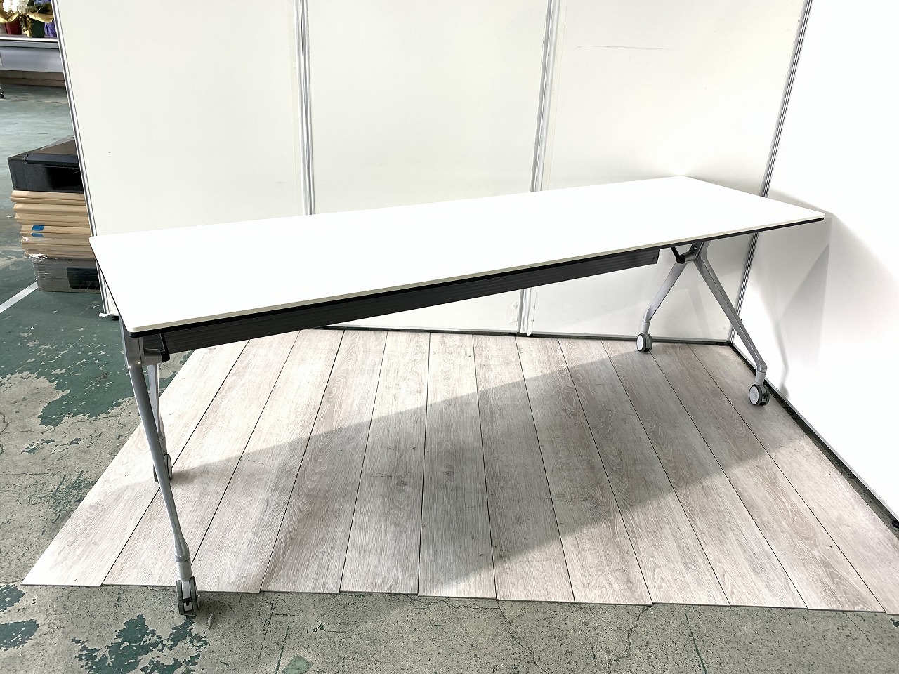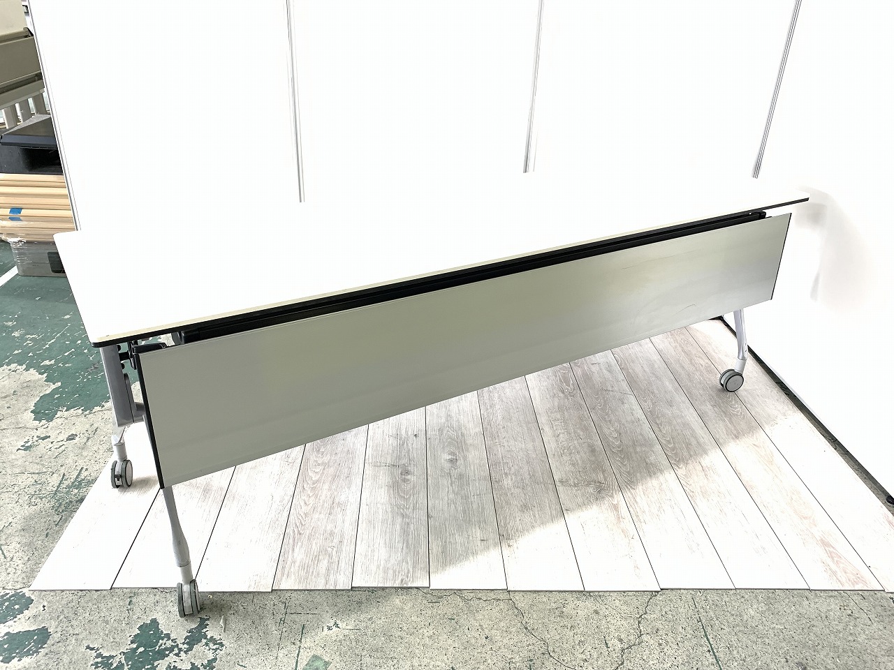 幅2100mm 幕板付き スタックテーブル フォールディングテーブル ホワイト キャスター付き 2~3名向け- 東大阪店