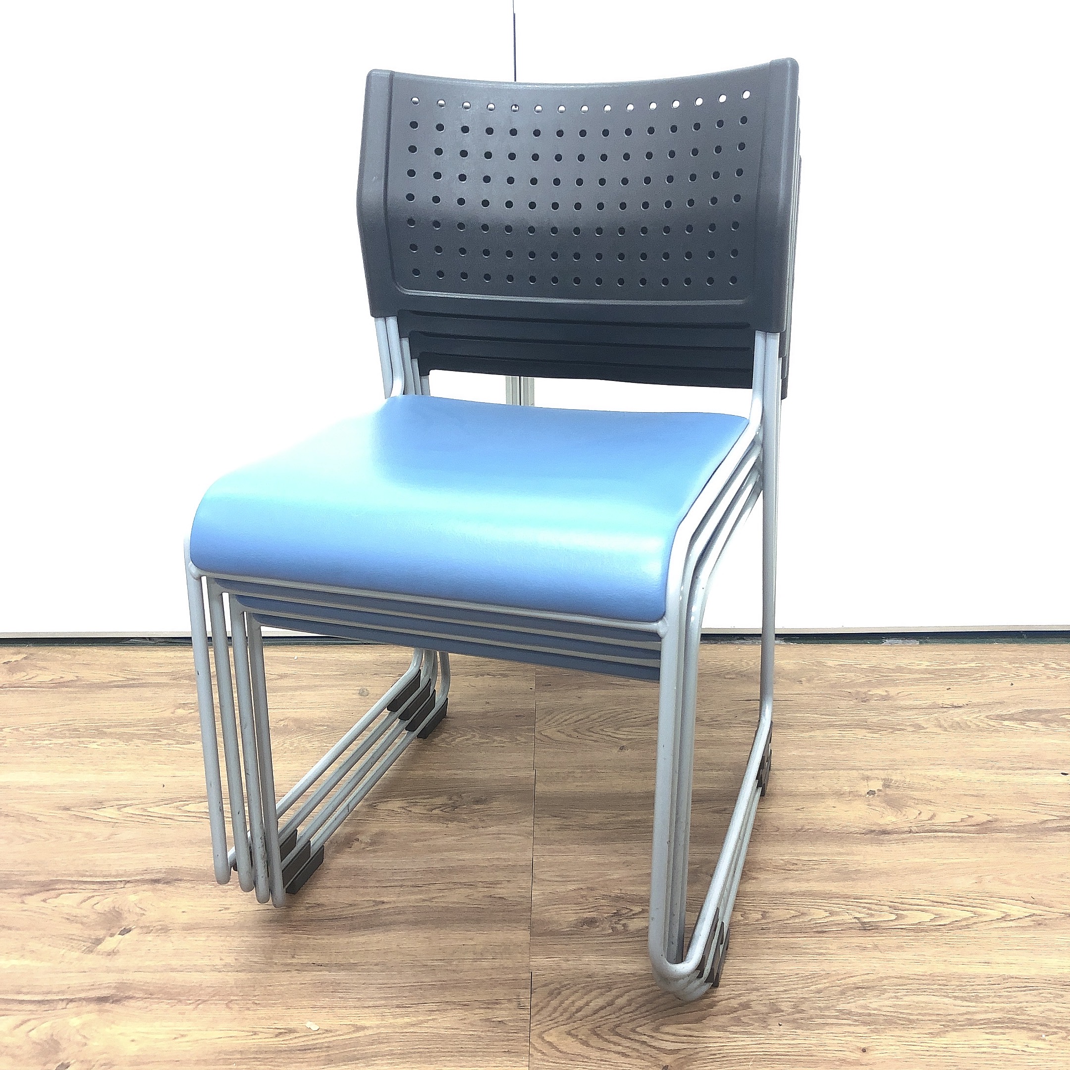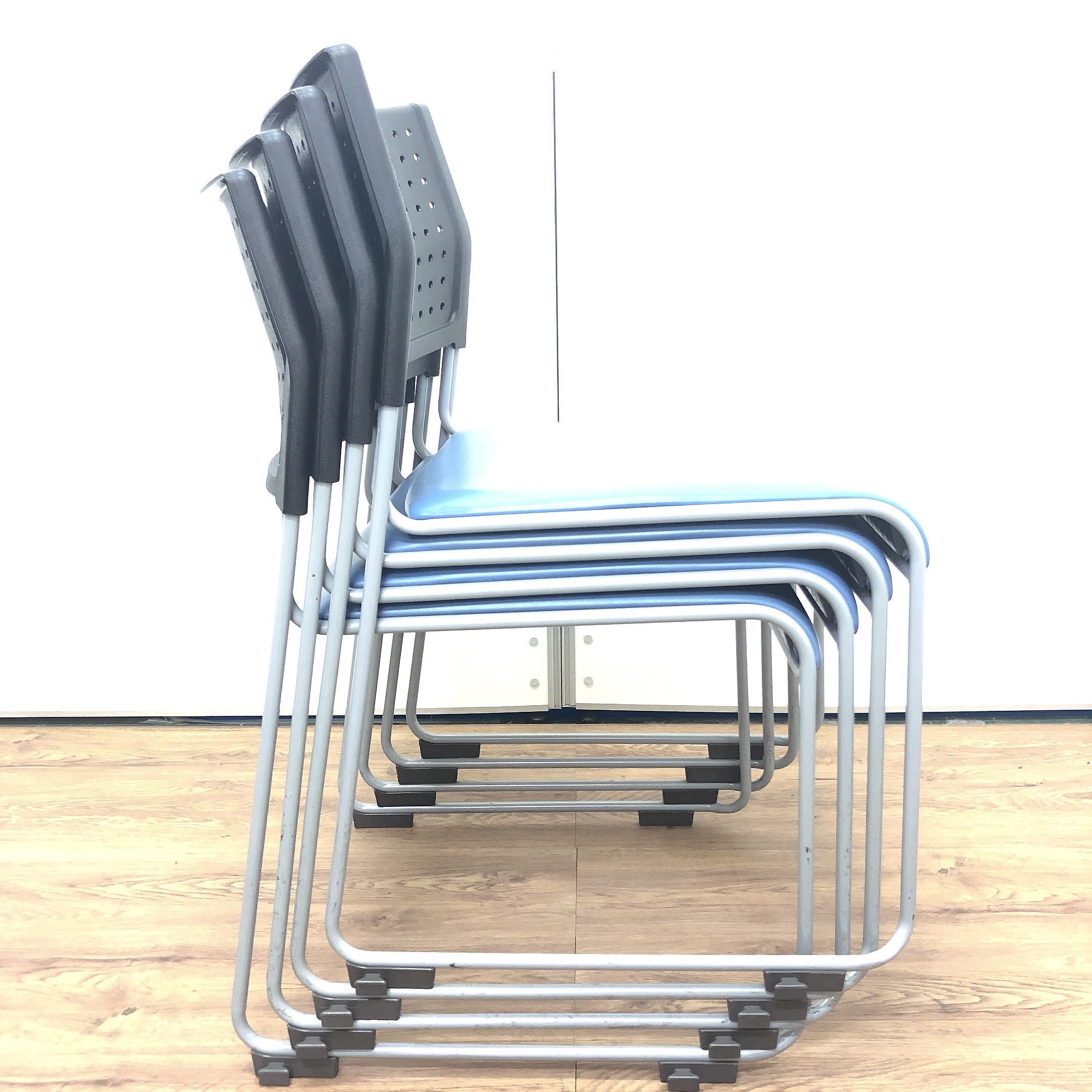 現行機 スタッキングチェア 収納 アイリスチトセ ミーティングチェア 研修 会議 打合 ブルー ビニールレザー 【4脚セット】- 大阪梅田本店