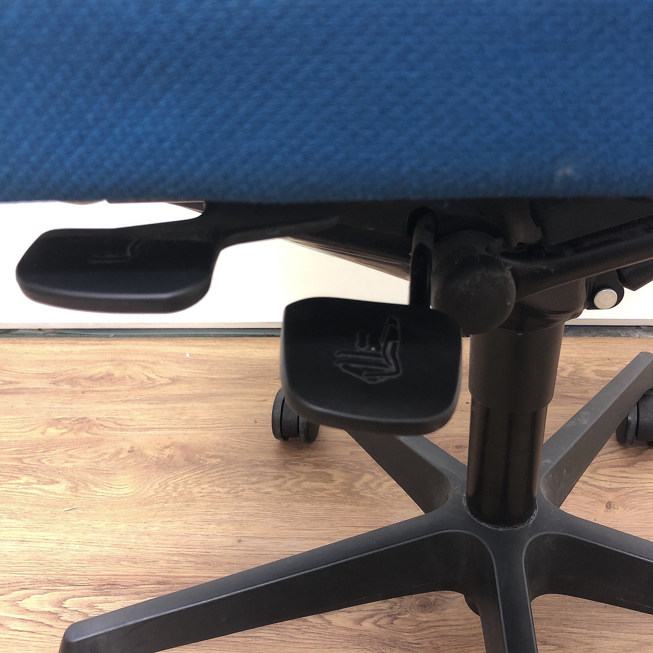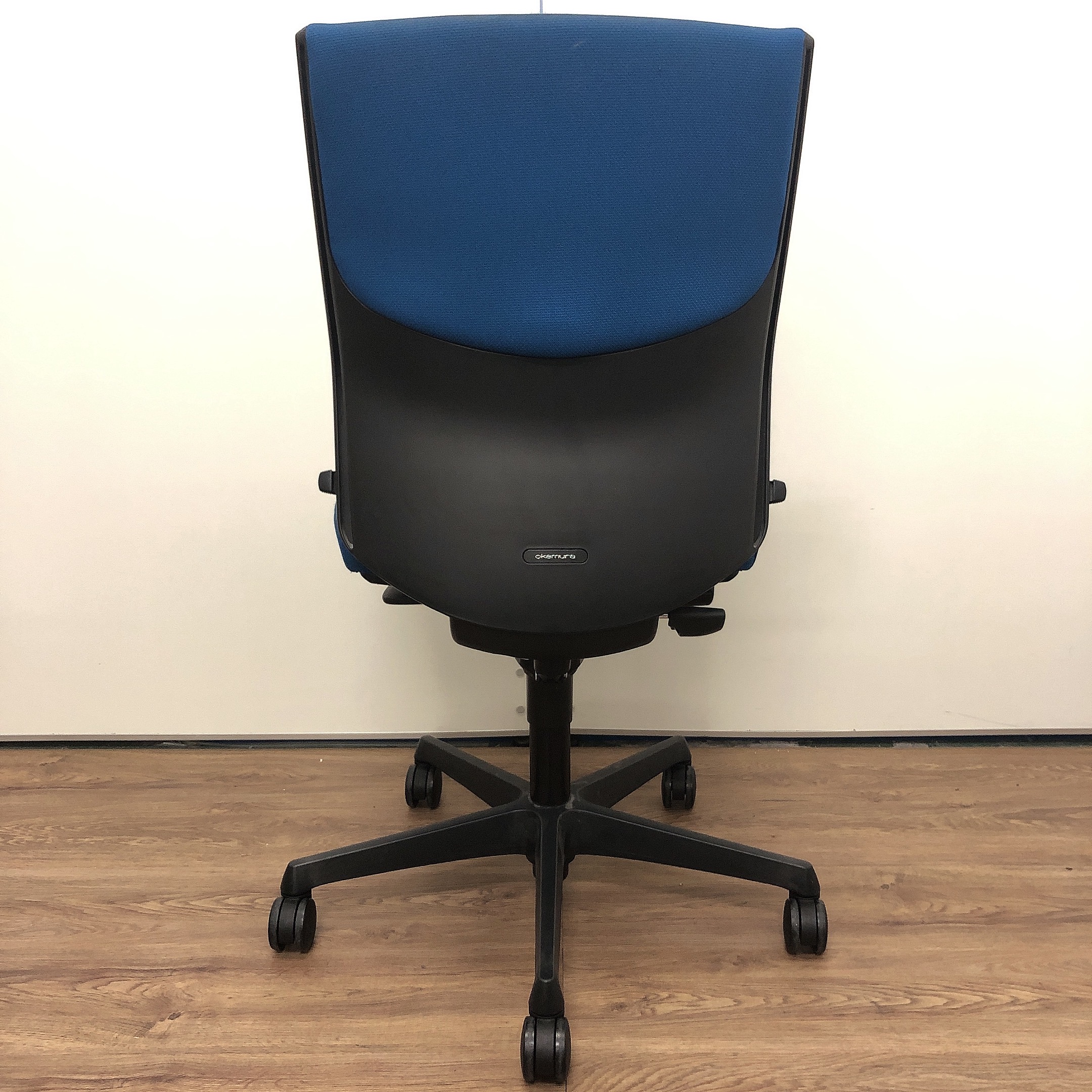 【人気チェア!肘無仕様でタイトにゆったり座れます!】オカムラ エスクード 肘無 ハイバック ネイビーブルー グレーシェル 人気 中古 福岡 九州最大級《オフィスバスターズ福岡博多店は、福岡を拠点として、日本全国へ中古オフィス用品・オフィス家具を提供しております》