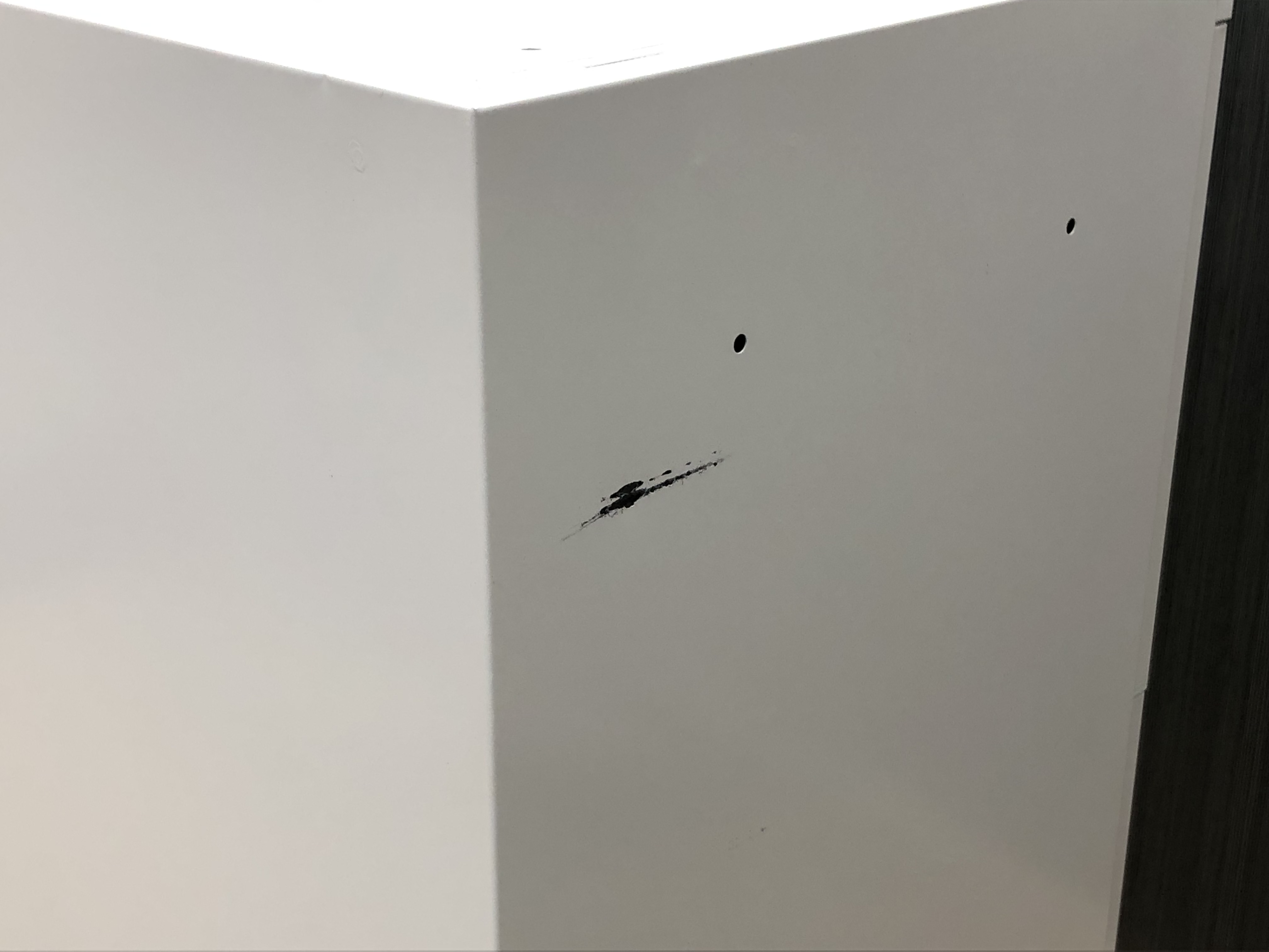 - 目立つ箇所あり傷・凹みが多数、深い傷・凹みが一部ある。(例、天板、正面、背部、サイド部分にある。)