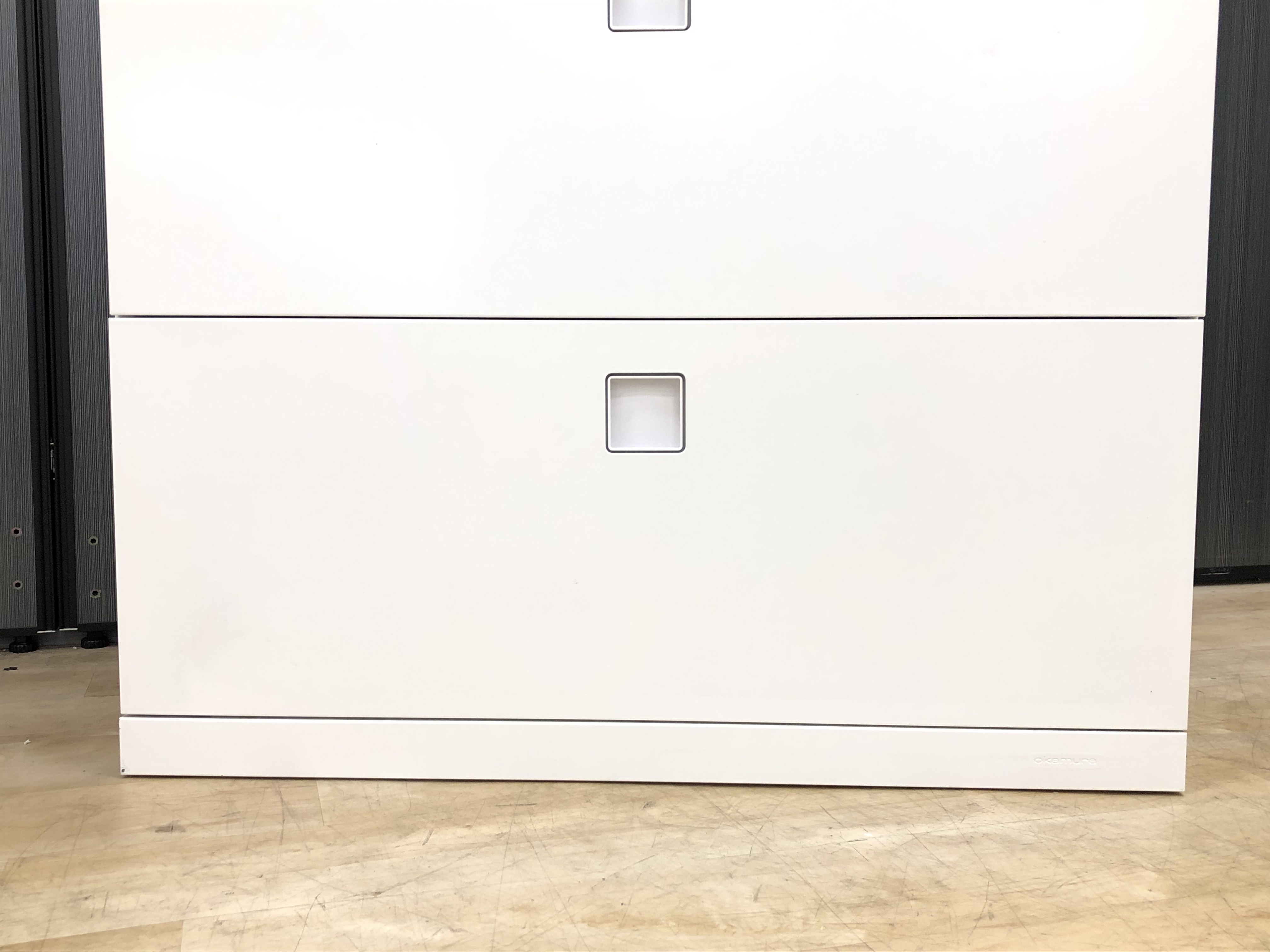 【オフィスの必需品!大容量の三段キャビネット!】■オカムラ(okamura)製 レクトラインシリーズ 3段ラテラル ローキャビネット ■ベース付 ■シリンダー錠 ■ホワイト 【弊社使用欄:A01037187】
