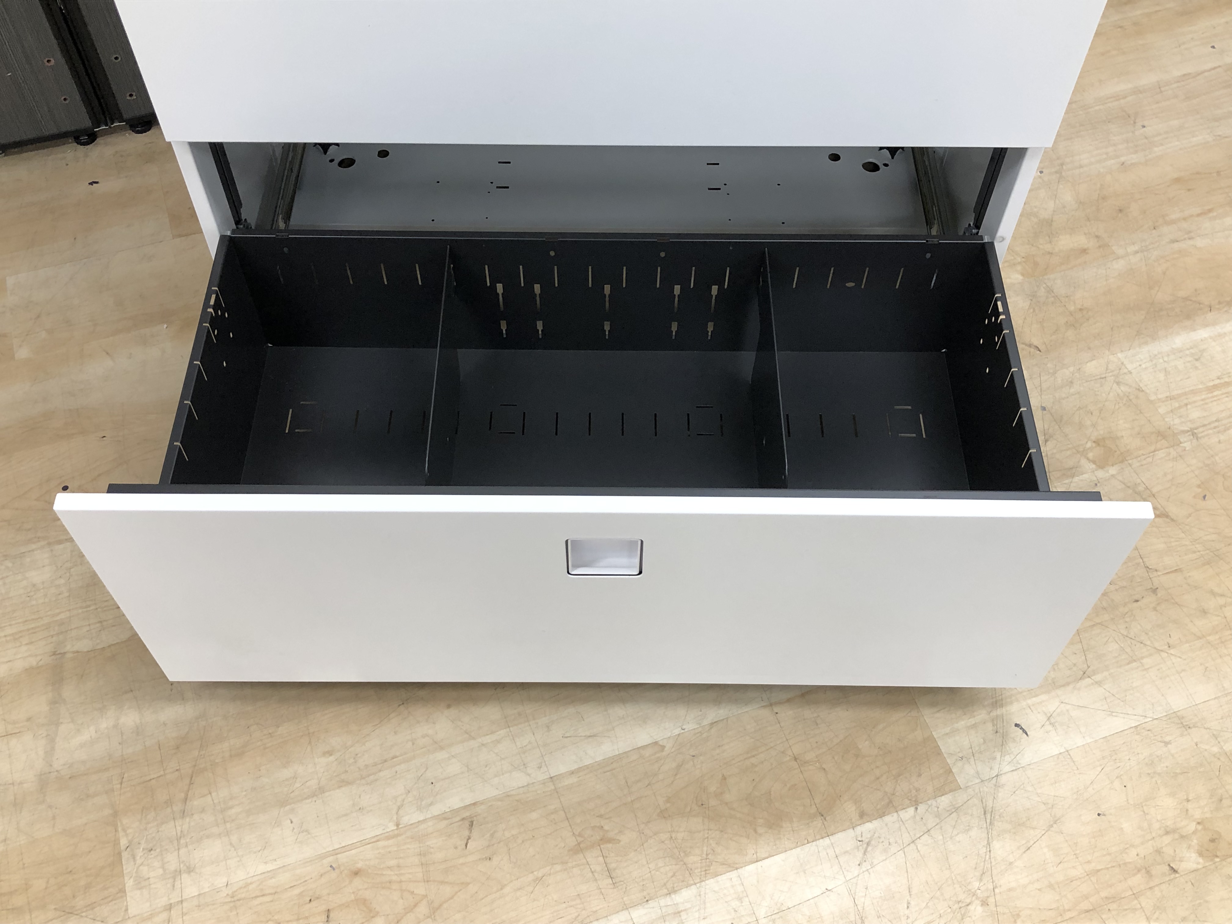 【オフィスの必需品!大容量の三段キャビネット!】■オカムラ(okamura)製 レクトラインシリーズ 3段ラテラル ローキャビネット ■天板/ベース付 ■シリンダー錠 ■ホワイト 【弊社使用欄:A01037187】