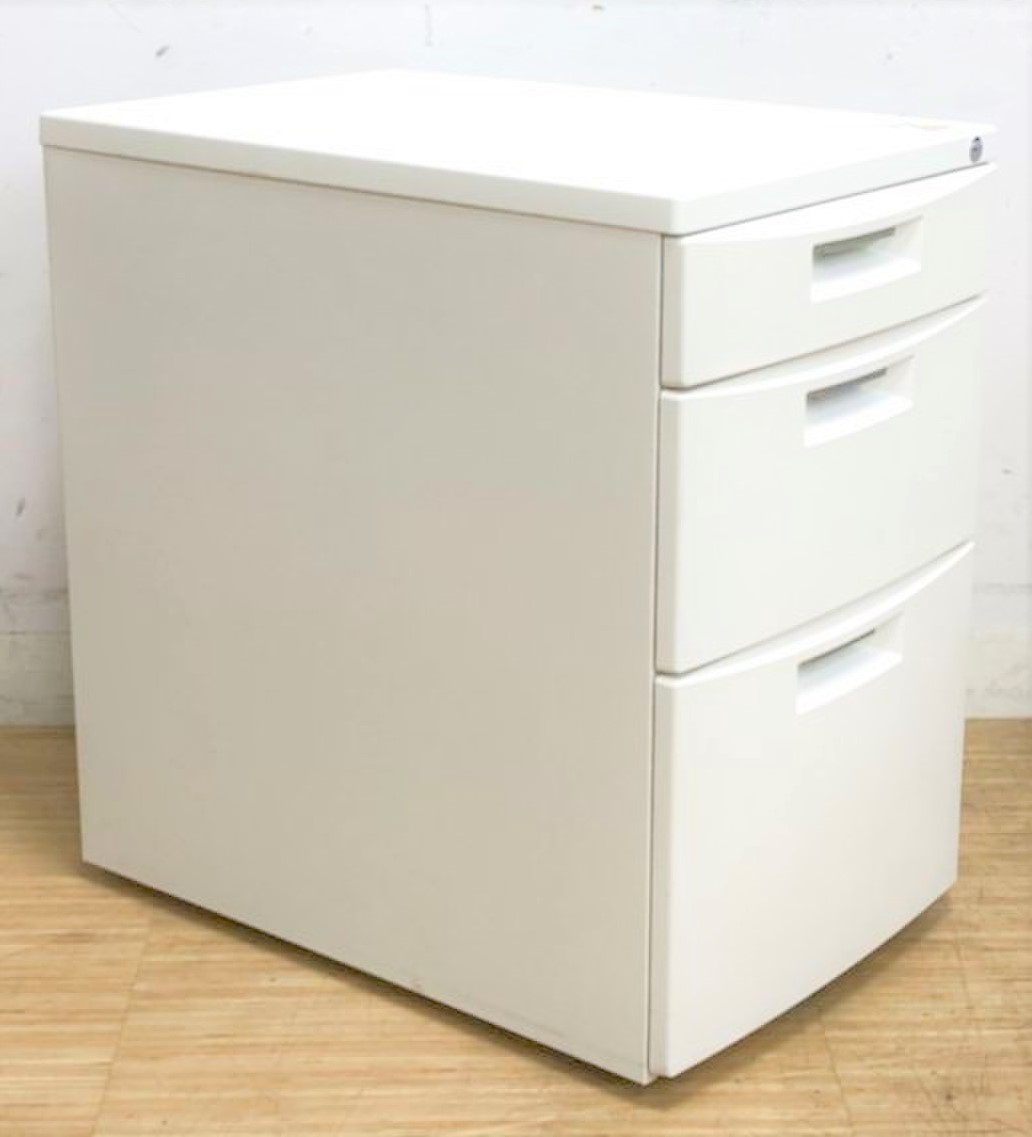 【大量入荷】ホワイトの3段ワゴン 鍵付き 国内メーカーのイトーキ製 CZシリーズ キャスターロック仕様- 名古屋千種店
