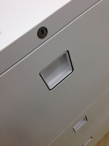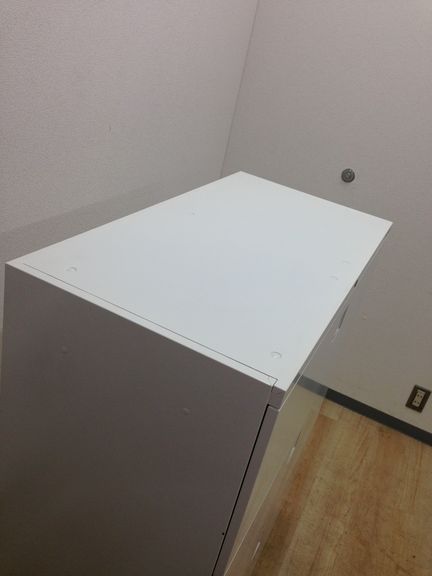 オカムラ レクトライン 3段ラテラル書庫 ホワイト天板 シリンダー錠 鍵付き ※取っ手部分に若干日焼けあり