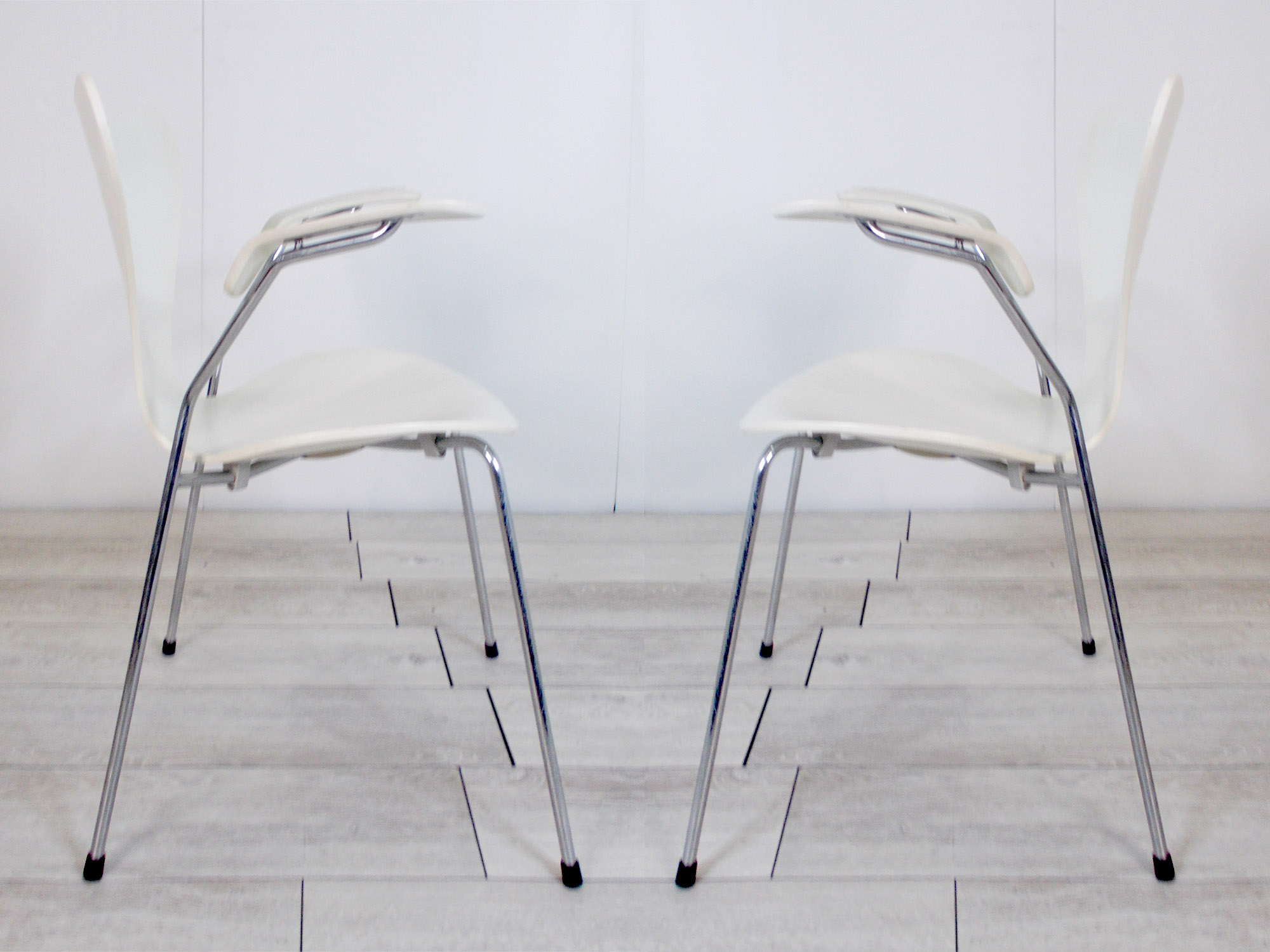 A)FritzHansen/フリッツハンセン セブンチェアアームチェア 3207 ホワイト アルネ・ヤコブセン 北欧- デザイナーズ家具センター