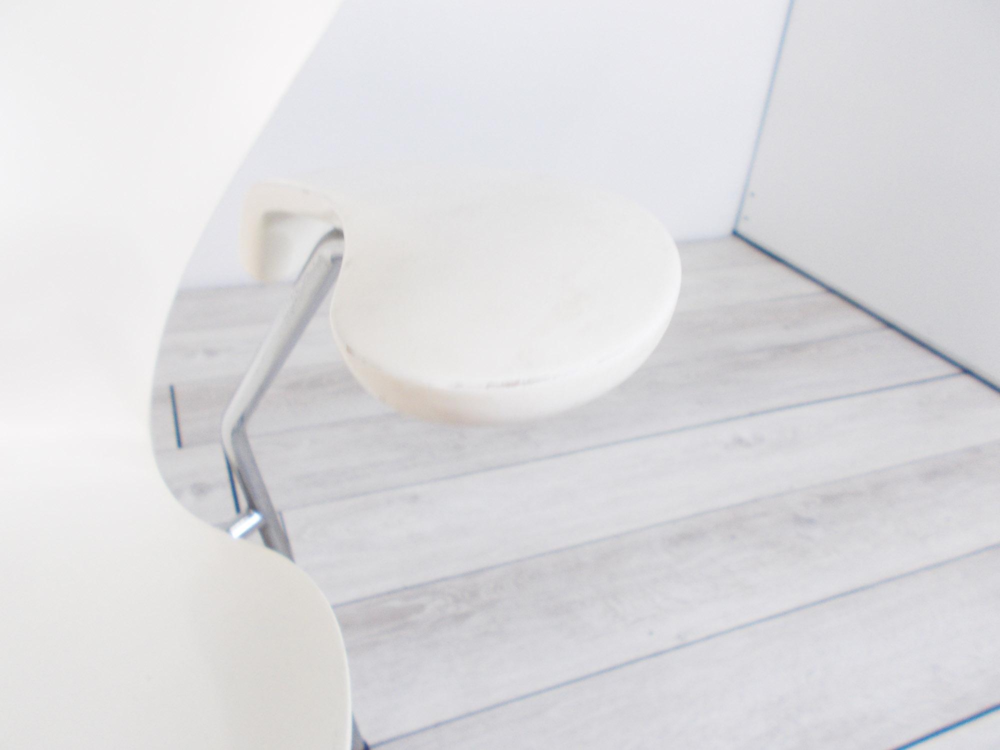 - かなり強い濃い黄ばみ・変色が商品全体にある。(例、座面・背もたれ、脚部等にある。)