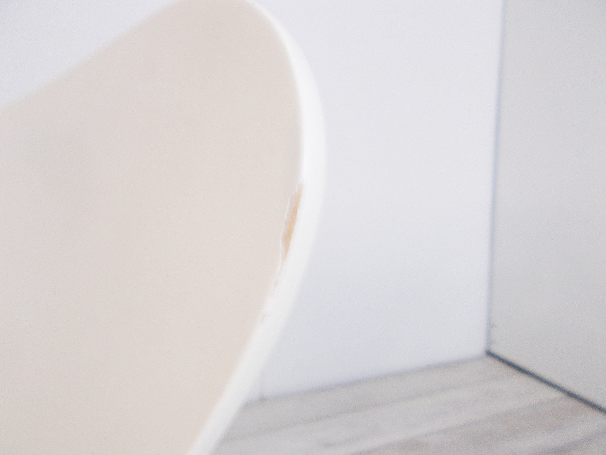 - かなり強い濃い黄ばみ・変色が商品全体にある。(例、座面・背もたれ、脚部等にある。)