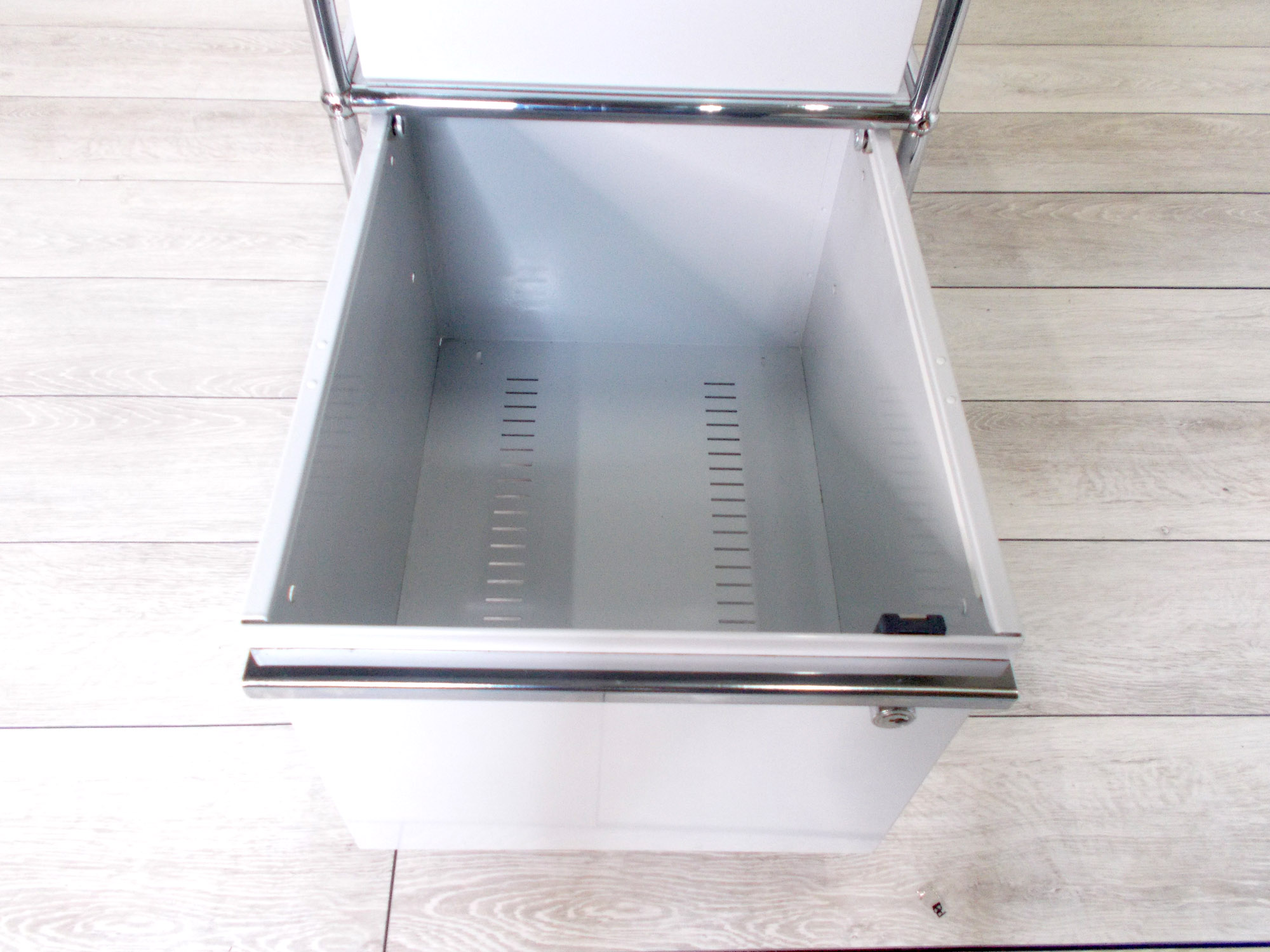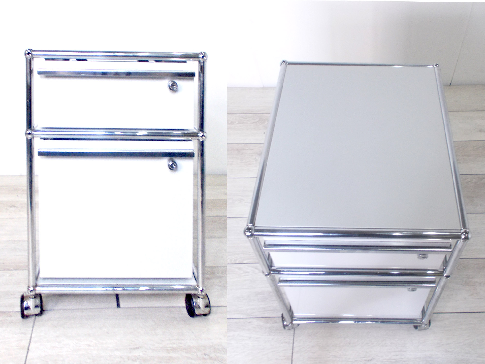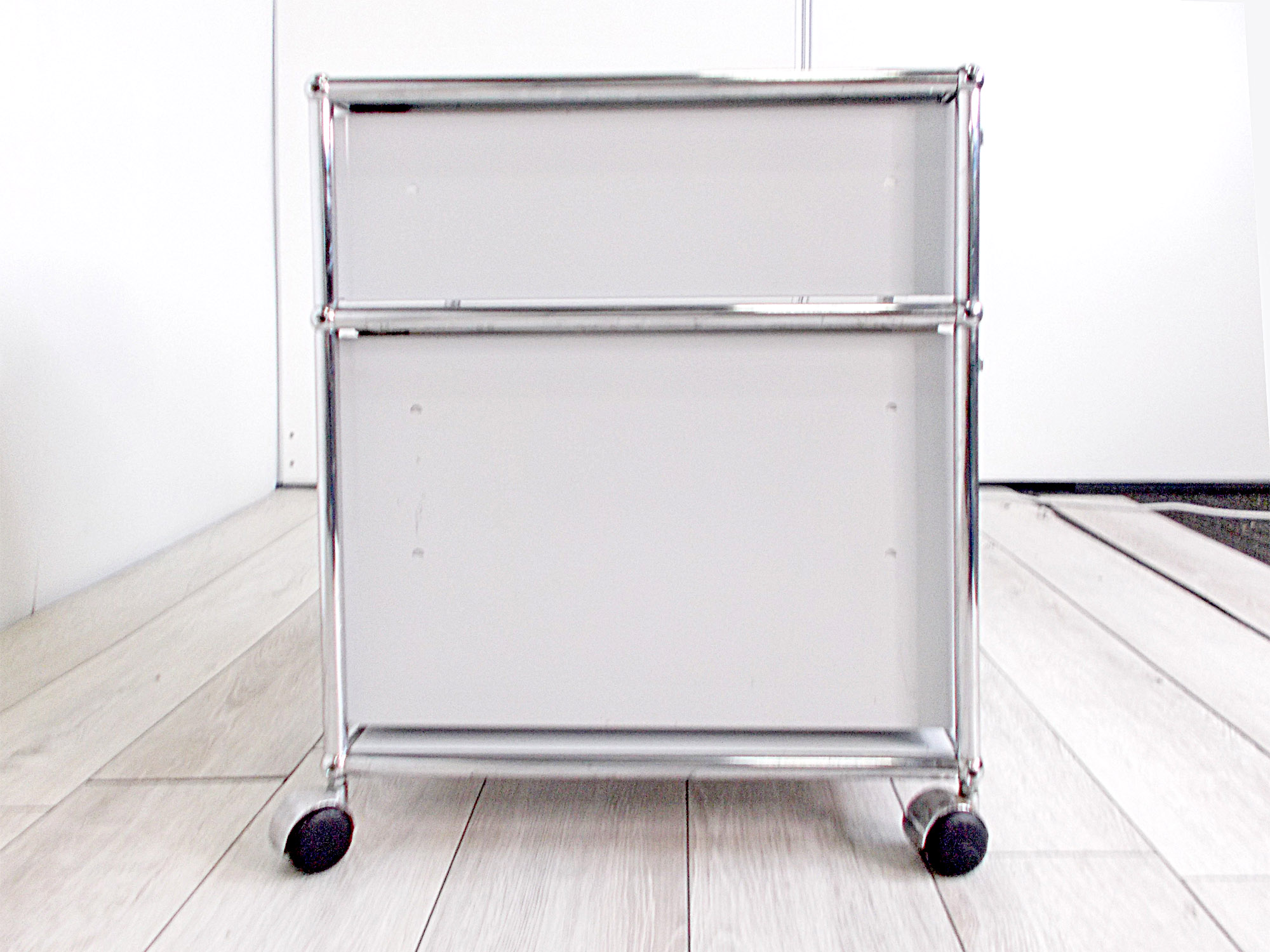 システムキャビネットメーカー『USMハラー』のデスクインワゴンです。 デスクワゴンとしてはもちろん、ベッドサイドのナイトテーブルやキッチン周りの収納キャビネットとしてもお使いいただけます。