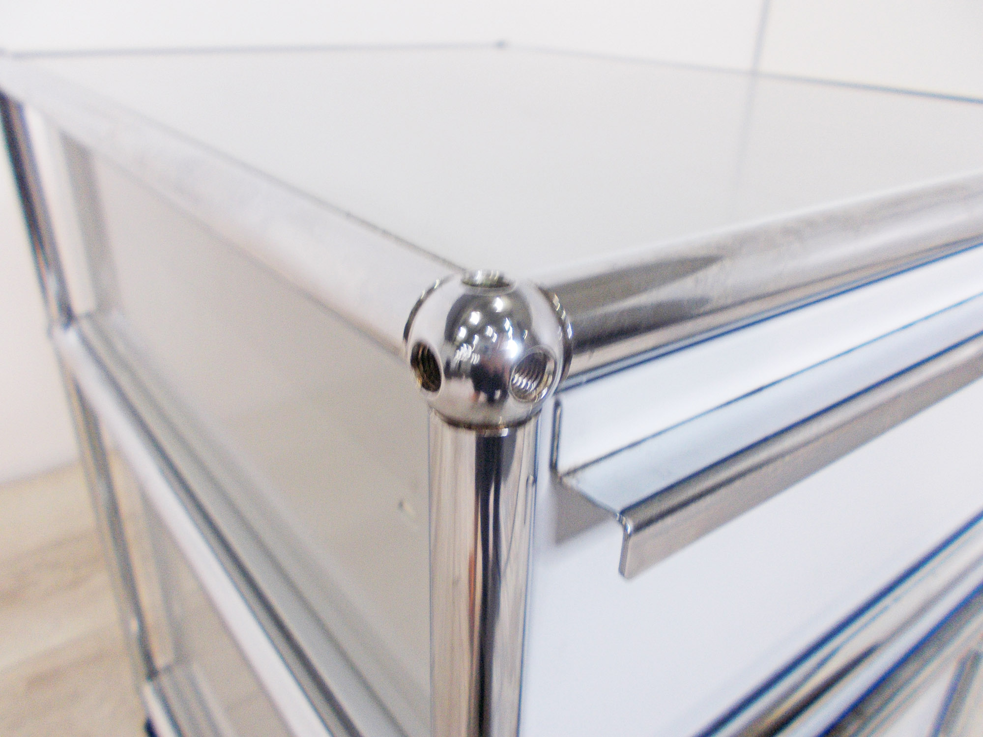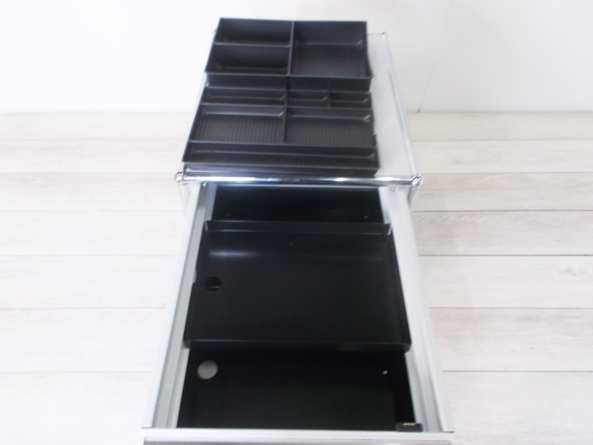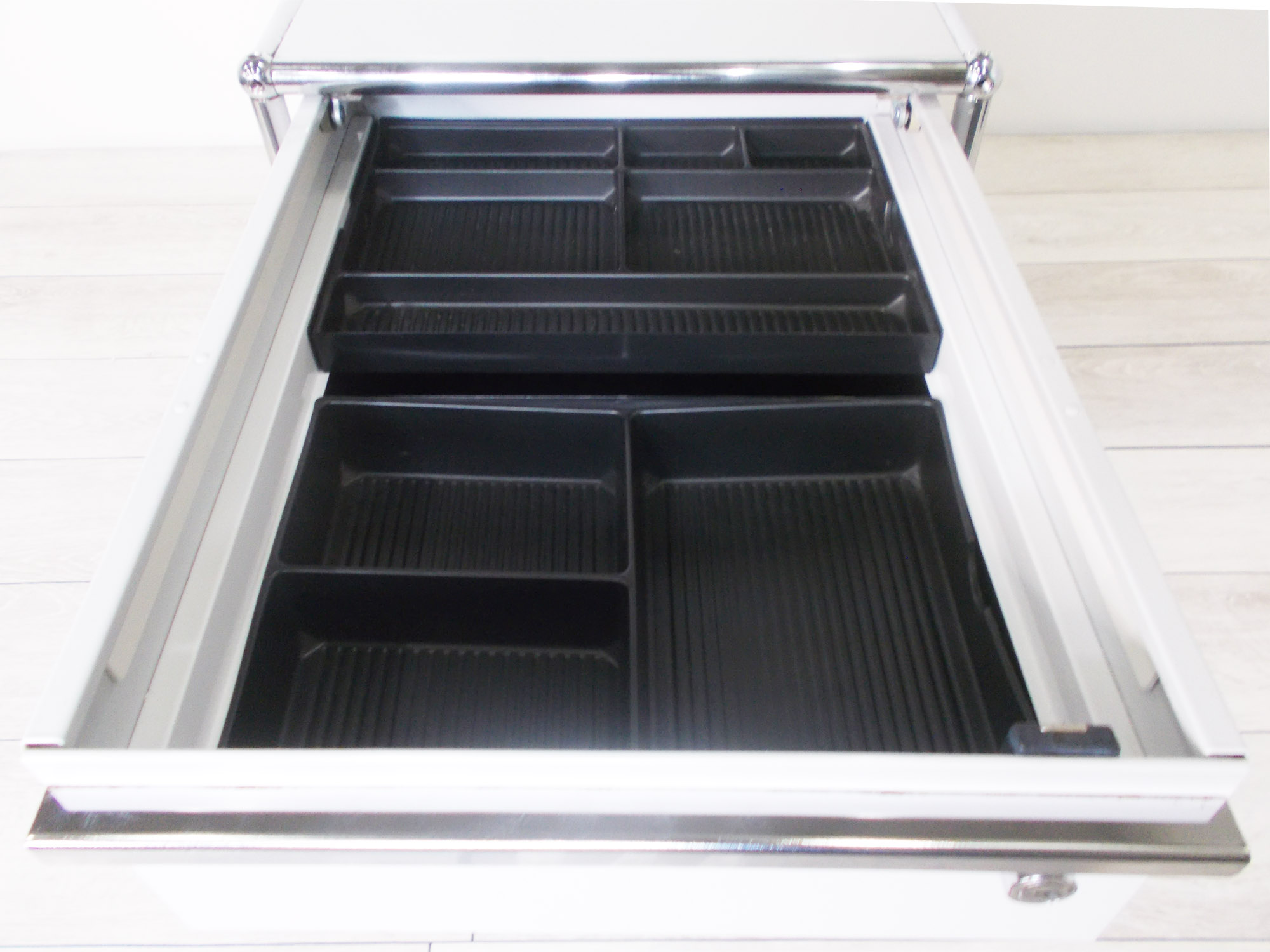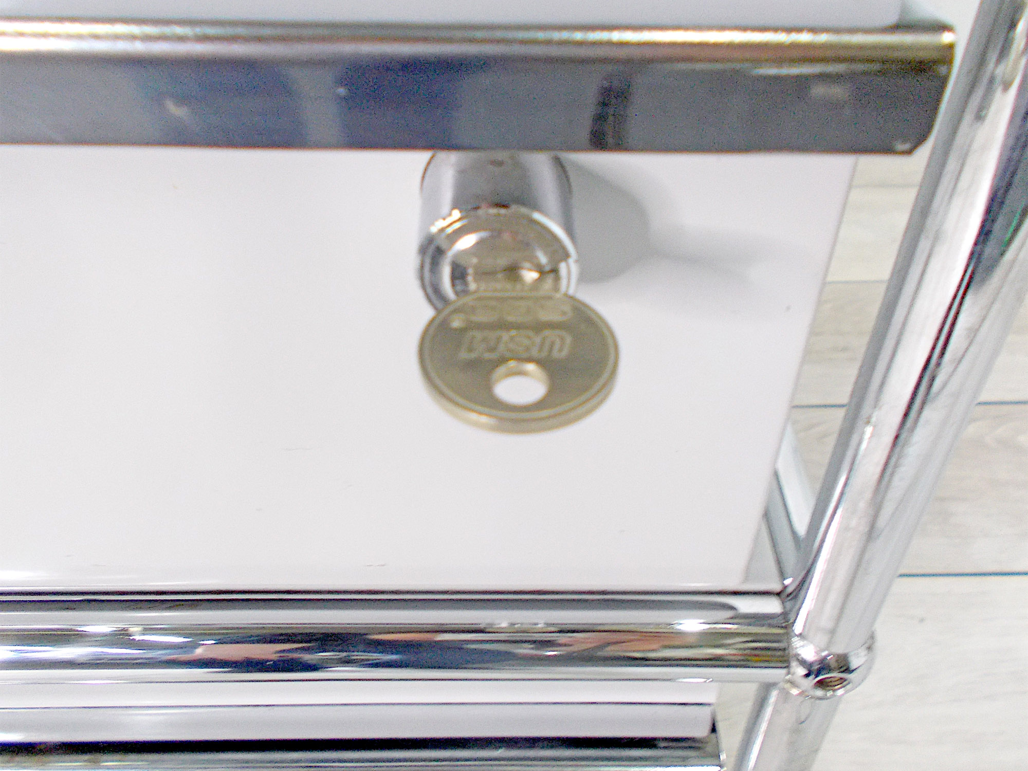 システムキャビネットメーカー『USMハラー』のデスクインワゴンです。 デスクワゴンとしてはもちろん、ベッドサイドのナイトテーブルやキッチン周りの収納キャビネットとしてもお使いいただけます。