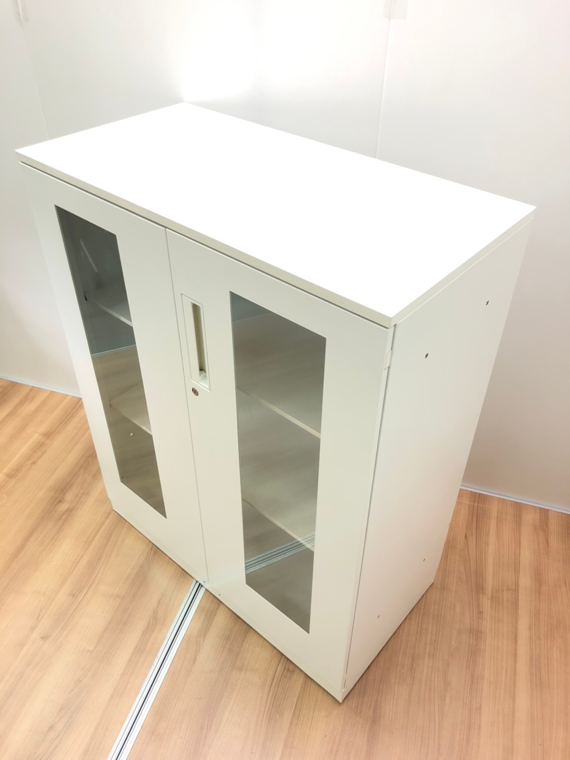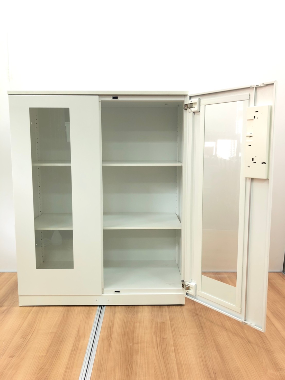 コクヨ製 エディアシリーズ ホワイト シリンダー 施錠 収納物がひとめで分かる両開き戸タイプ! ローキャビネット 両開き書庫!!外部倉庫在庫