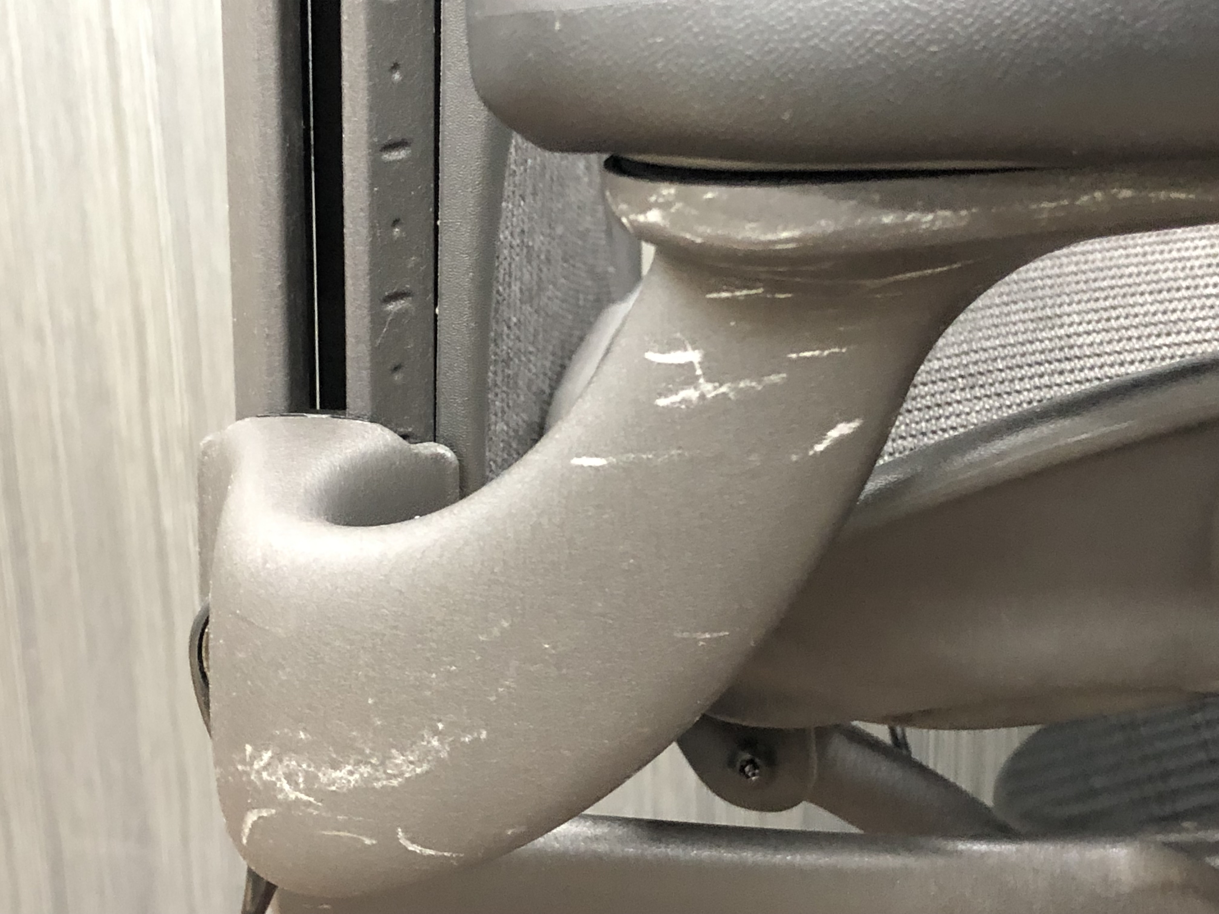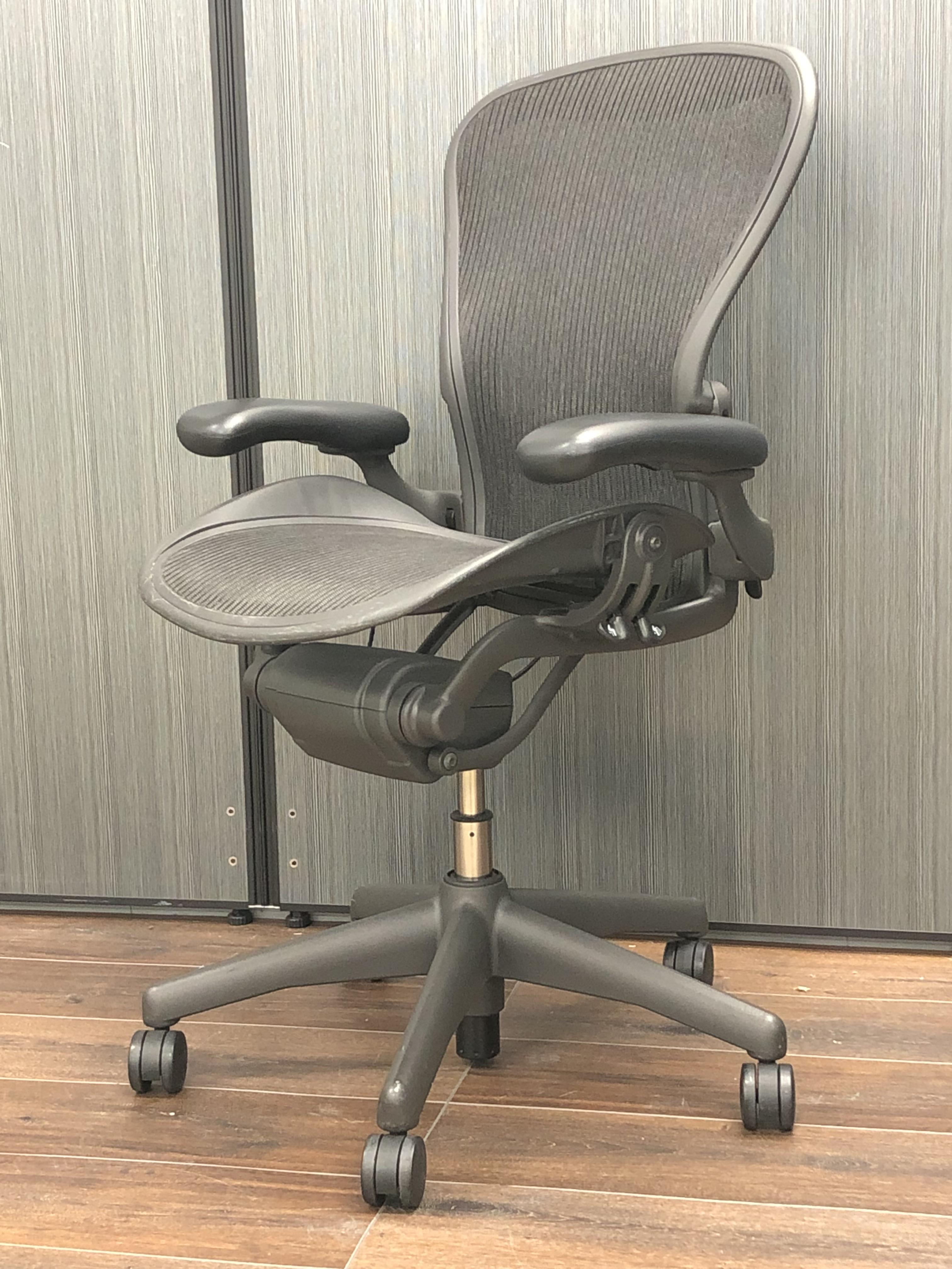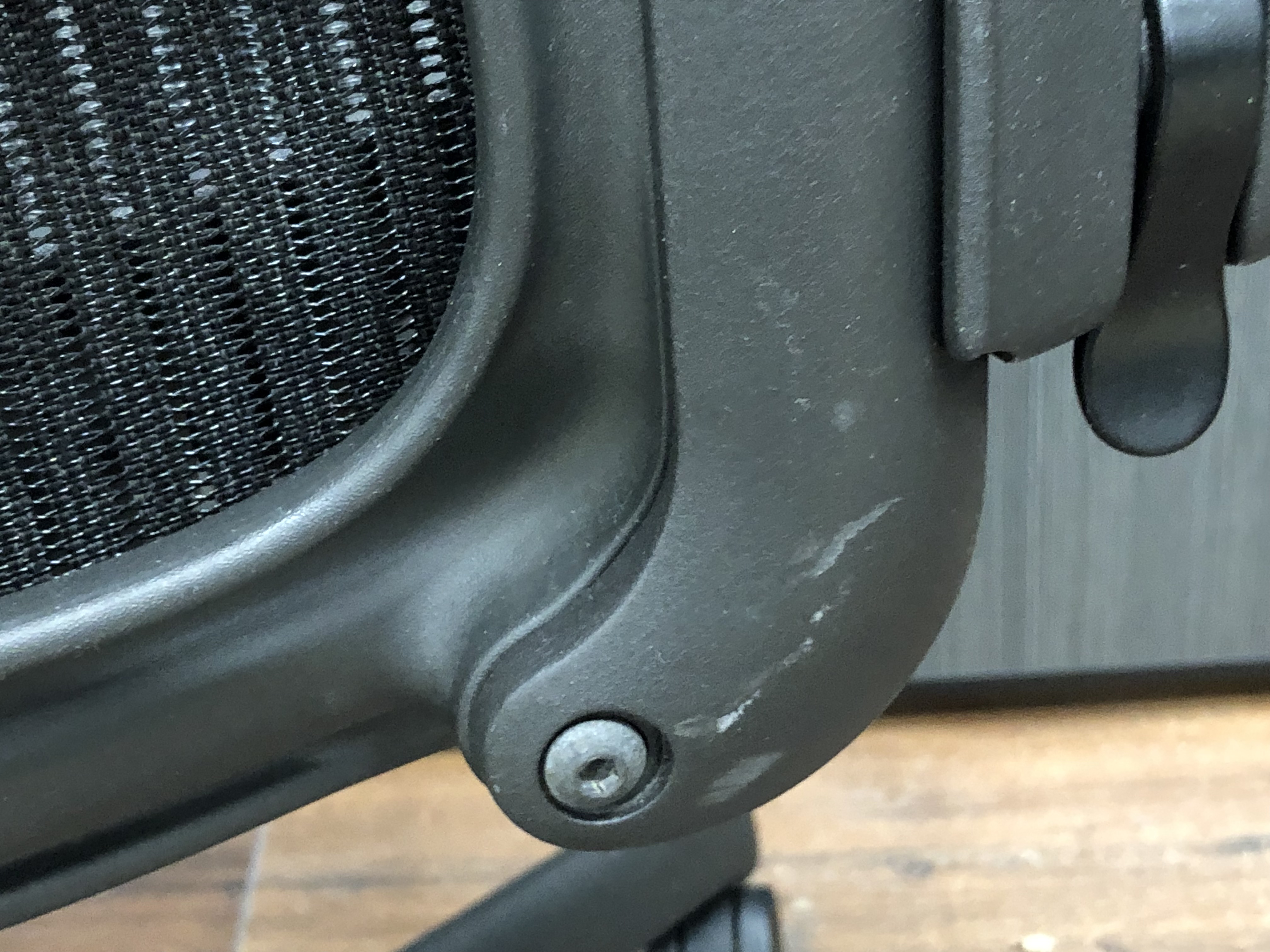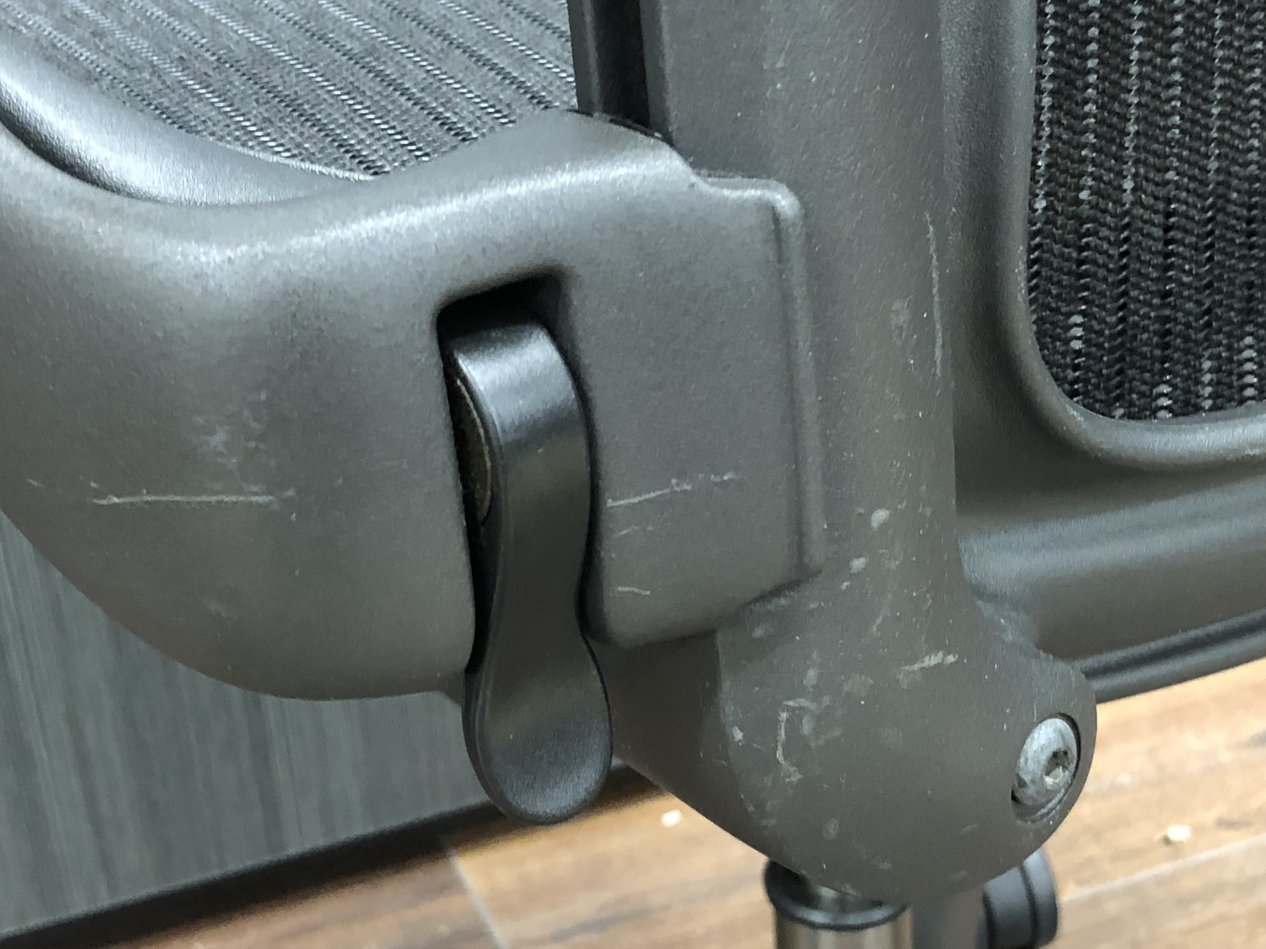 【★状態イマイチのためお安く!】■ハーマンミラー製 アーロンチェア Bサイズ 固定肘 ※キズあり・ランバーサポート無・昇降ガス圧弱めのためお安く!【訳あり特価品】