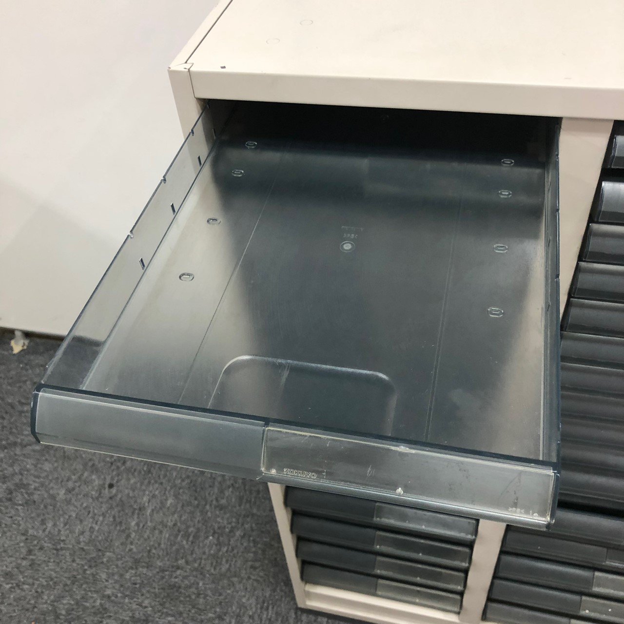 - 多数不具合あり引出の開閉不可、施錠不可、棚板無しといったその書庫の本来の効用を果たすための機能以外の多数が使用不可(例、扉、引出の開閉がしづらいなどがある。 )