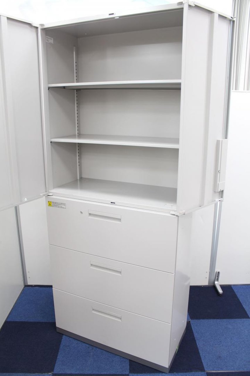 【KS】【豊富な収納量でオフィスをスッキリ整理!】■ウチダ 上下書庫セット(両開き+3段ラテラル)ペールグレイ【良い品がお得!在庫入替セール!】- 茨城南店