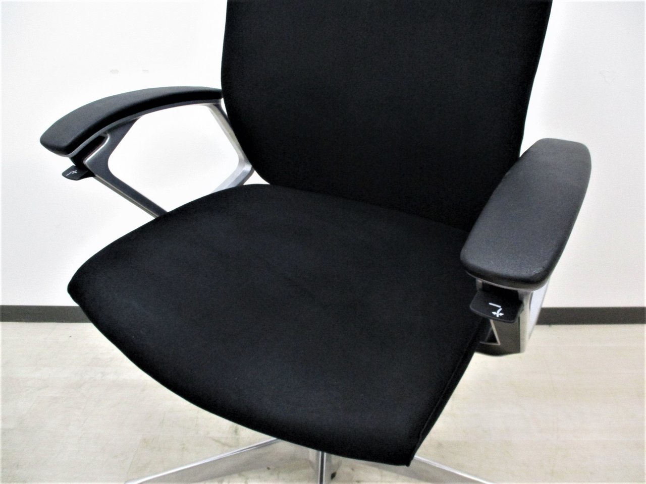 ※ひじ掛け部分に使用感ありのため、特価!【オカムラの最上級モデル!高級感と機能性を融合させたチェア!】■ハイバック 肘付き 背・座クロス張地(スエード調) 固定肘 ※サイド剥がれ有り ランバーサポート付き ブラック/オカムラ/デューク