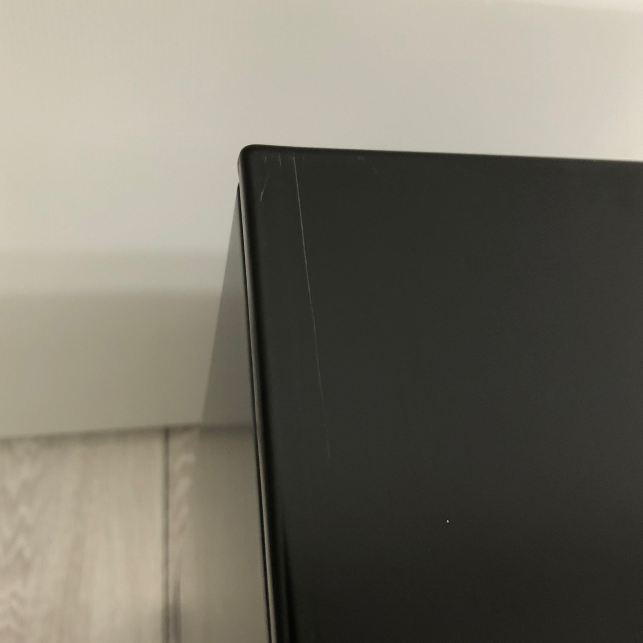 - 目立つ箇所あり傷・凹みが多数、深い傷・凹みが一部ある。(例、天板、正面、背後、サイド部分にある。)