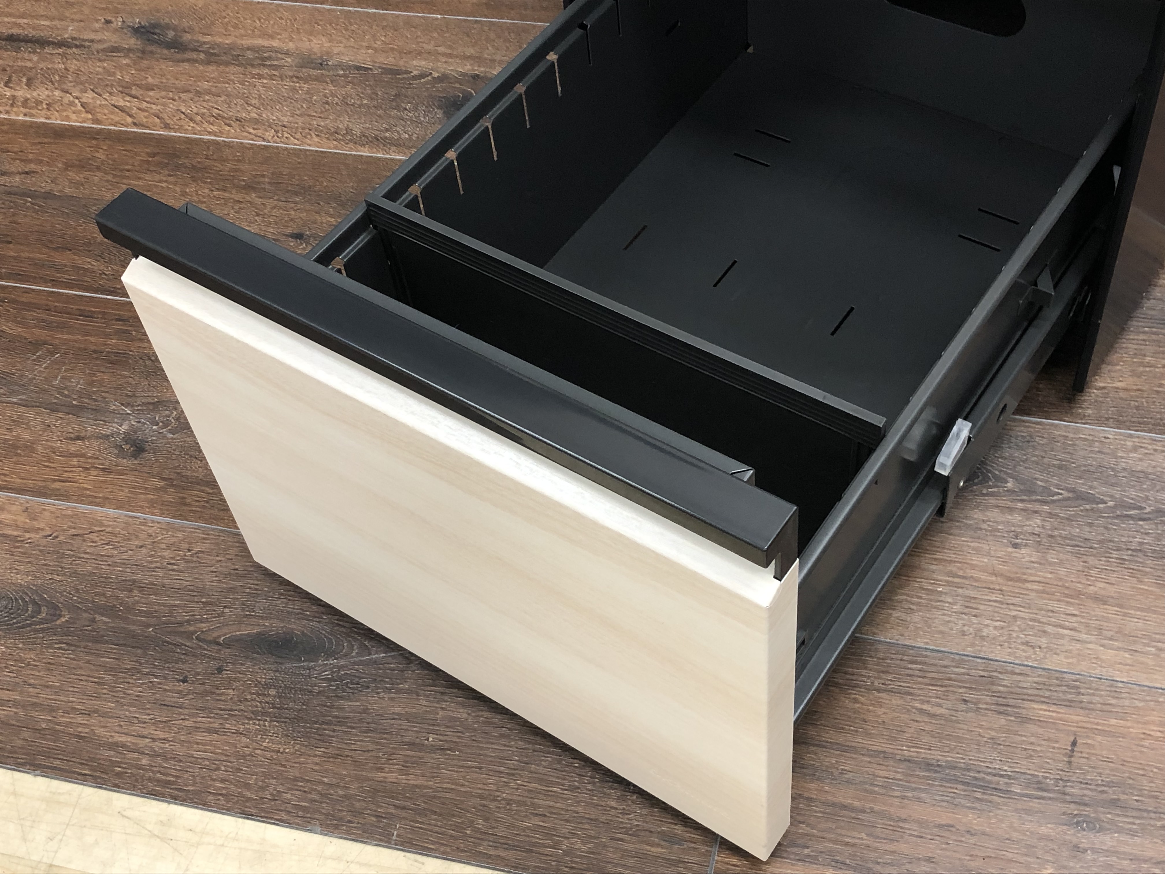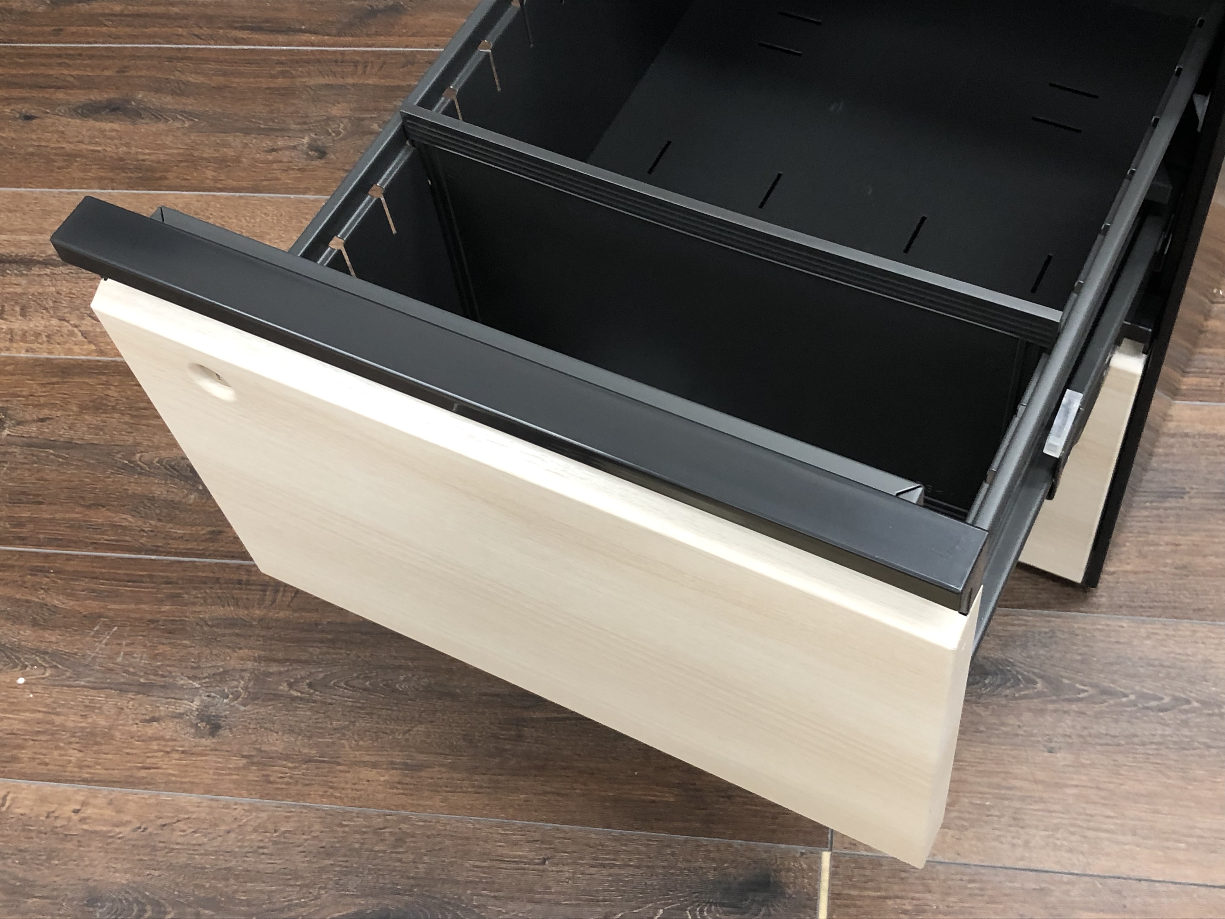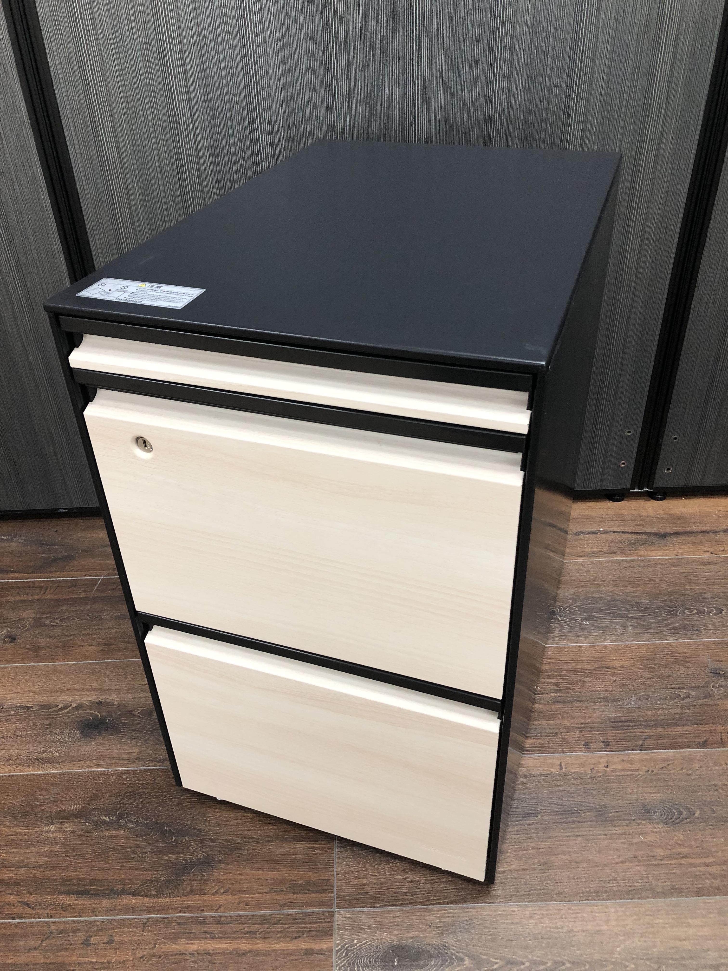 【KS】【上質なデザイン】■オカムラ PROSTAGE CREST(プロステージクレスト)3段ワゴン プライズウッドライト/ブラック- 茨城南店