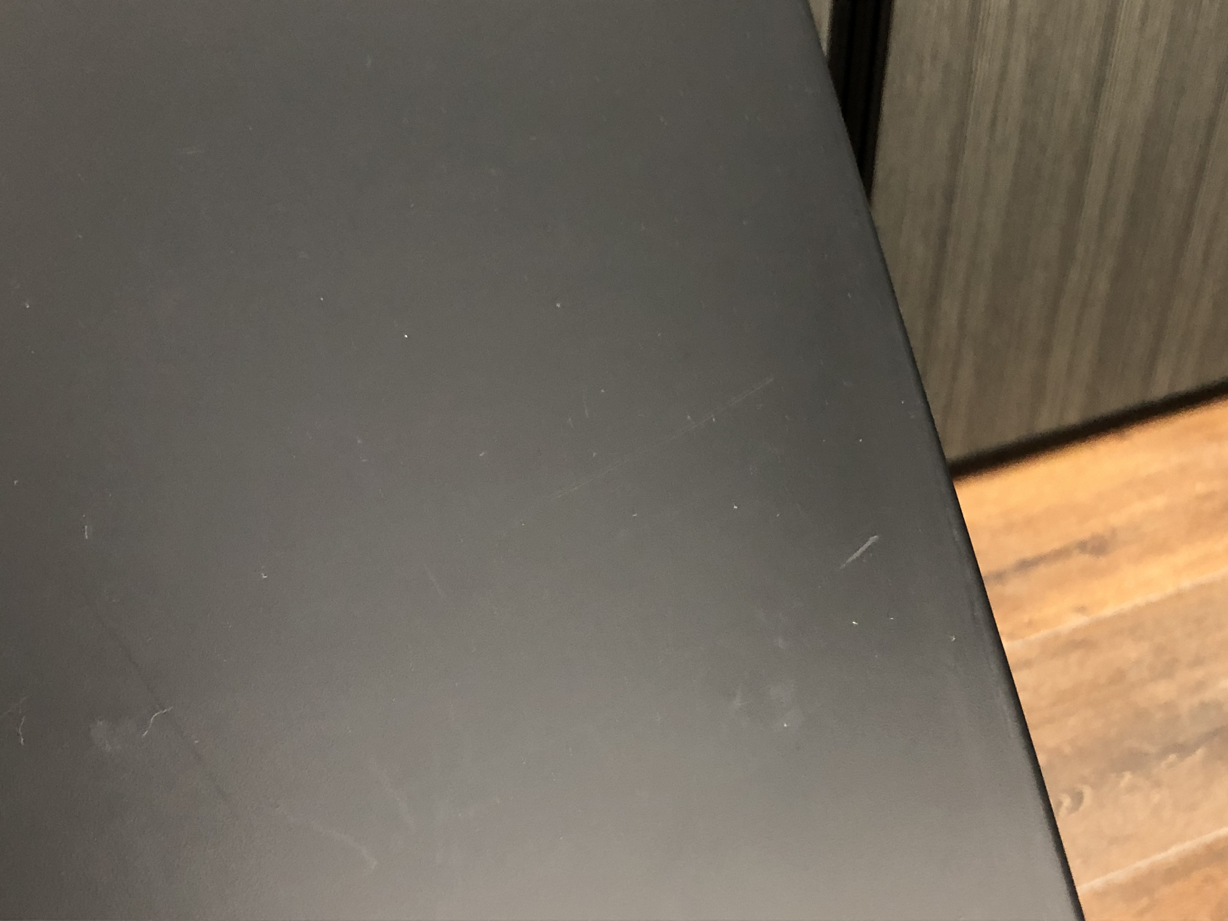 - 目立つ箇所あり傷・凹みが多数、深い傷・凹みが一部ある。(例、天板、正面、背後、サイド部分にある。)