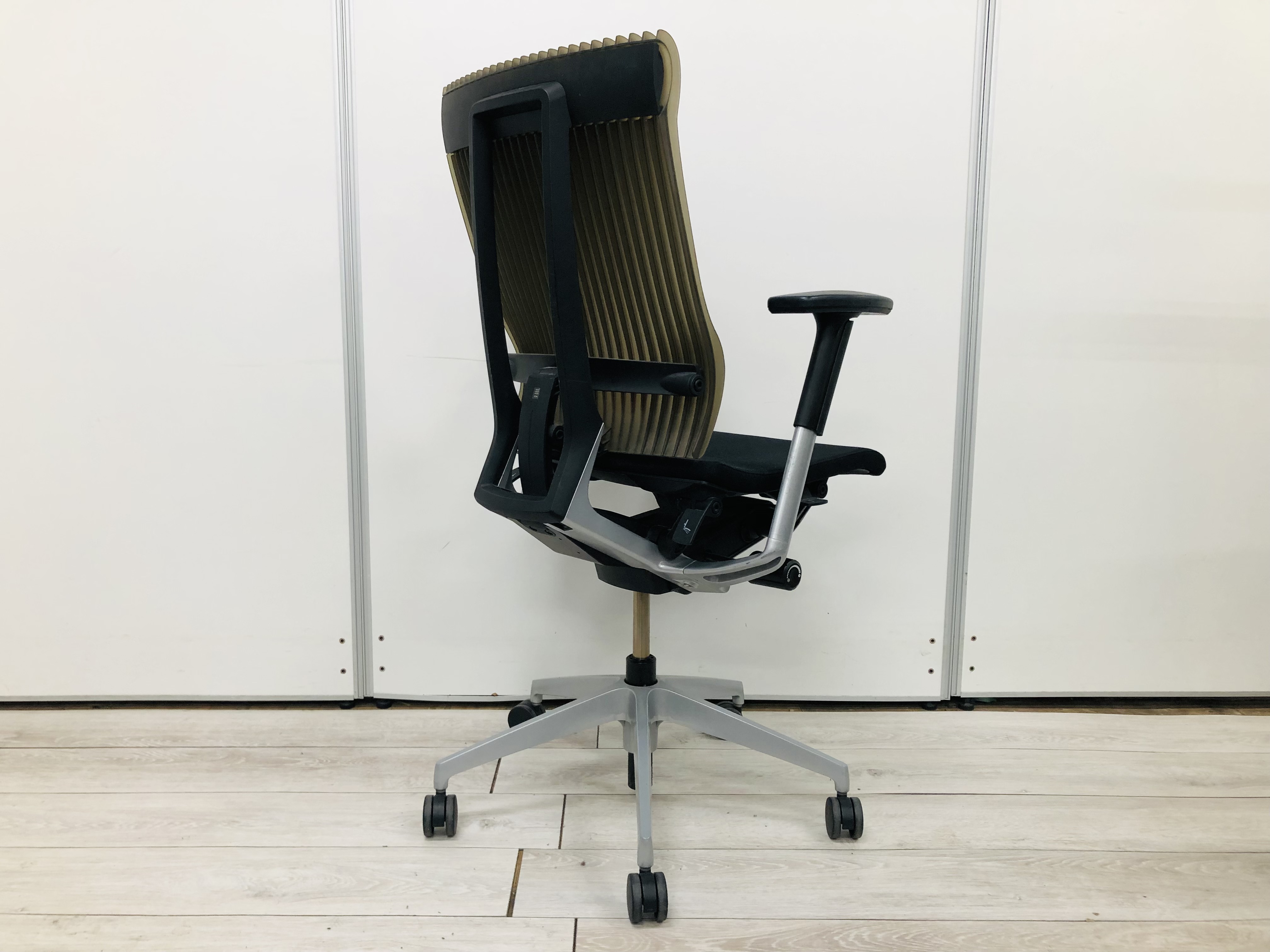 一番の特長は、着座時にチェアがピタっと体にフィットしてくれることです。 人がチェアの座り心地を調節するのではなく、チェアが人に合わせて動くのです!着座時に座面が沈み込みながら後方へスライドし、それと同時に背もたれの腰部分が前にせり出し、「ずっと座っていたくなる」と言われるほどの座り心地に調節してくれます。それを実現しているのが、A.L.S(アクティブ・ランバー・サポート)機構とP.S.S(パッシブ・スライド・シート)機構です。 さらに、背もたれにかかる体圧を徹底的に分析して作られた絶妙なカーブが、常に腰をサポートしつつ背骨のラインに沿ってくれます。