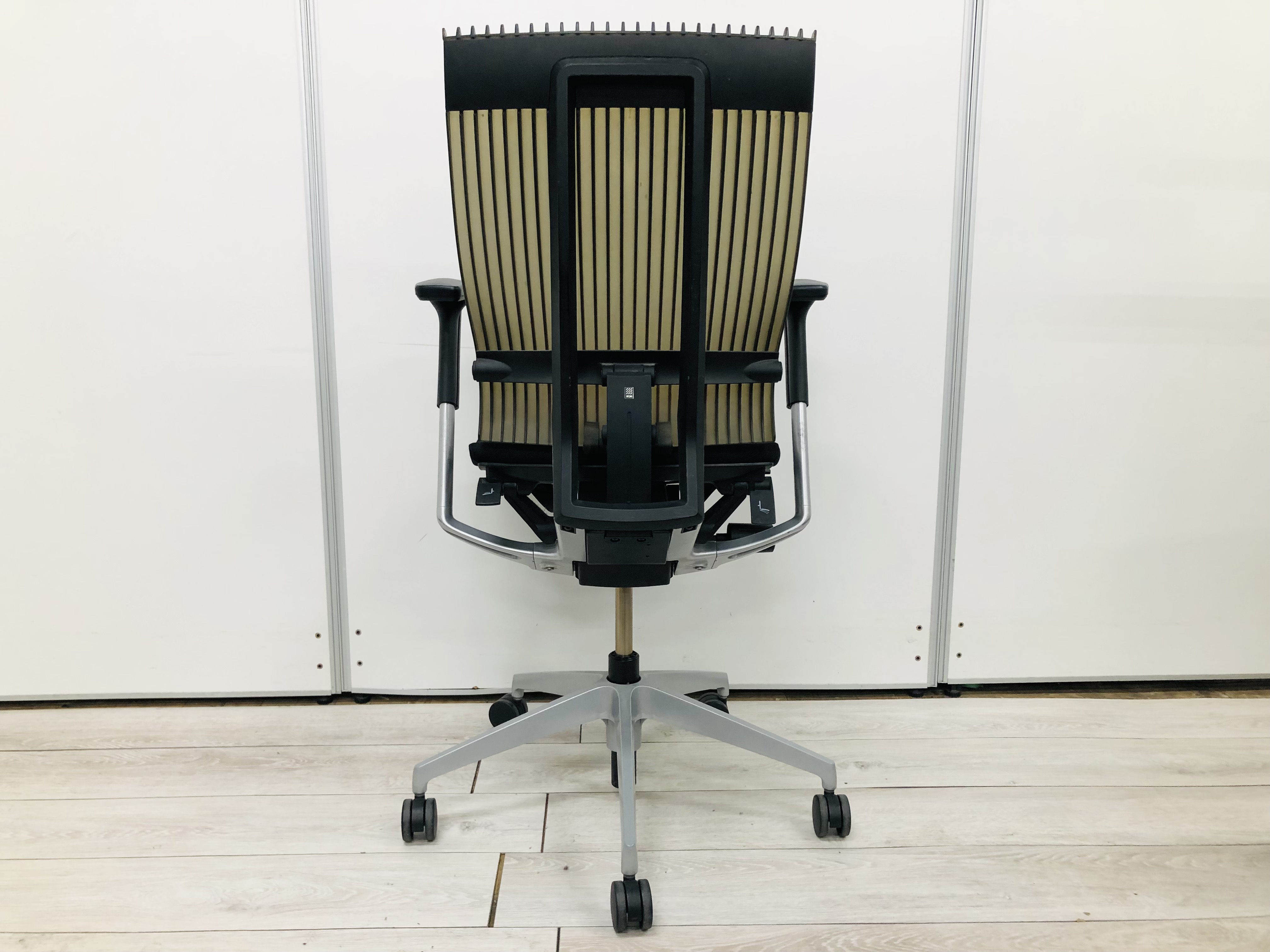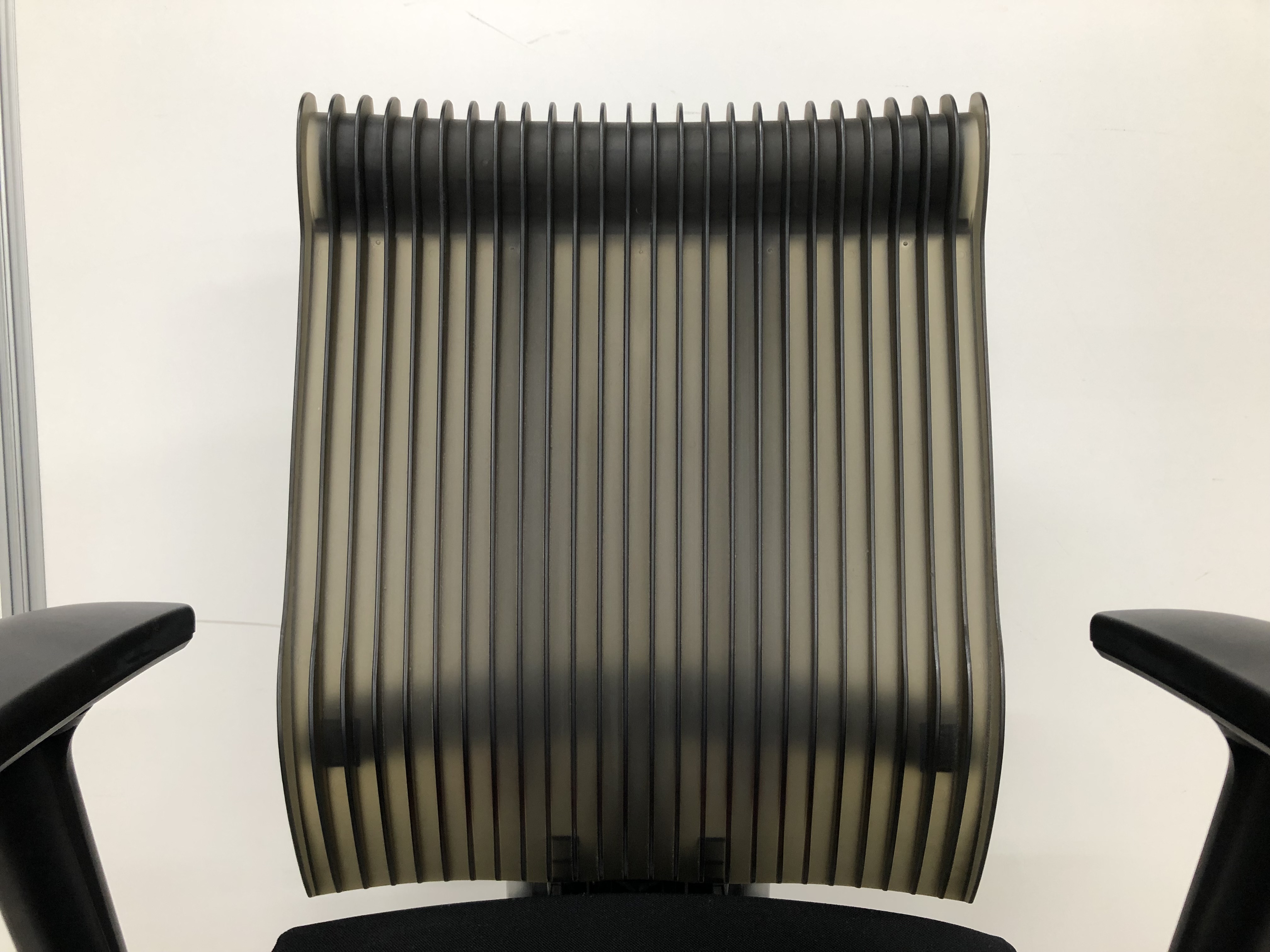 見た目は少し硬そうに見えるエラストマー素材ですが、座ってみると程よいしなり具合のやわらかな座り心地で、背中が痛くなるようなことはまるでありません。面ではなく線で支えることで、背面の通気性の良さは抜群です。