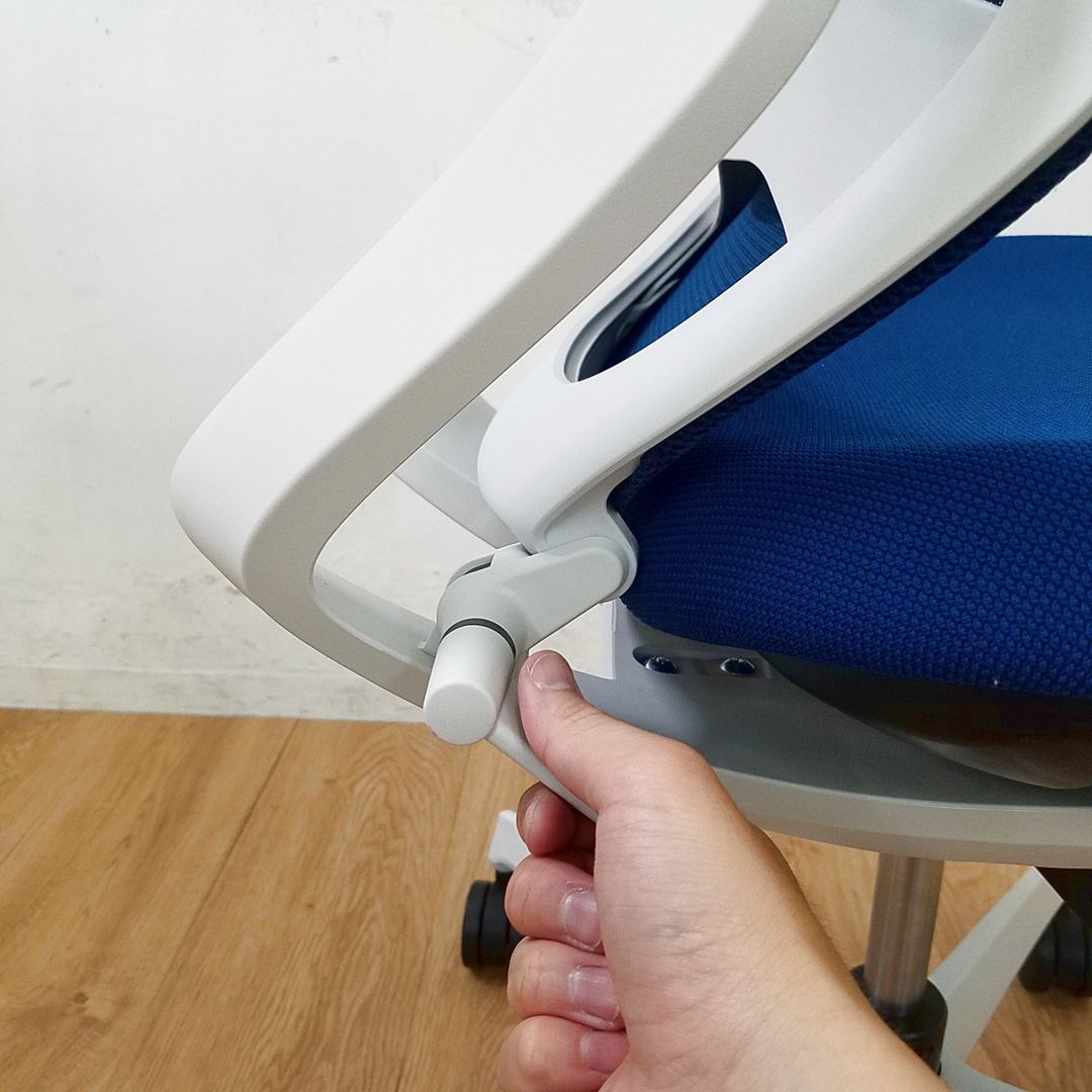 - 高さは上下ストローク100㎜で調節可能。肘掛け部は前後に80㎜調節でき、作業姿勢の変化に柔軟に対応できます。
