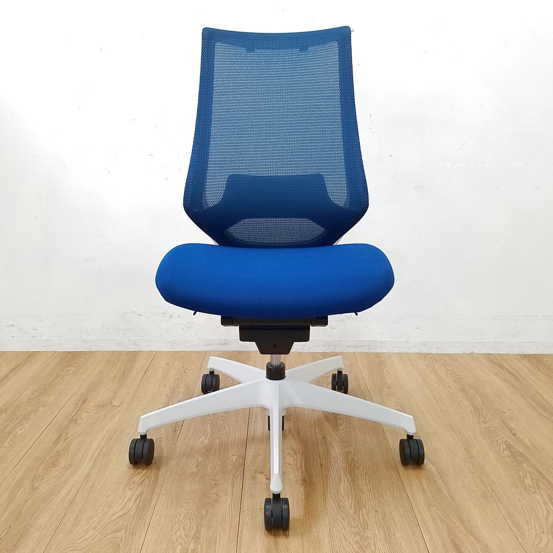 【在庫入替セール】コクヨ デュオラ 肘無しモデル クッションタイプ ブルー×ブラックフレームの定番のカラーリング コートハンガー付き ※背もたれに破れ有り【T9】