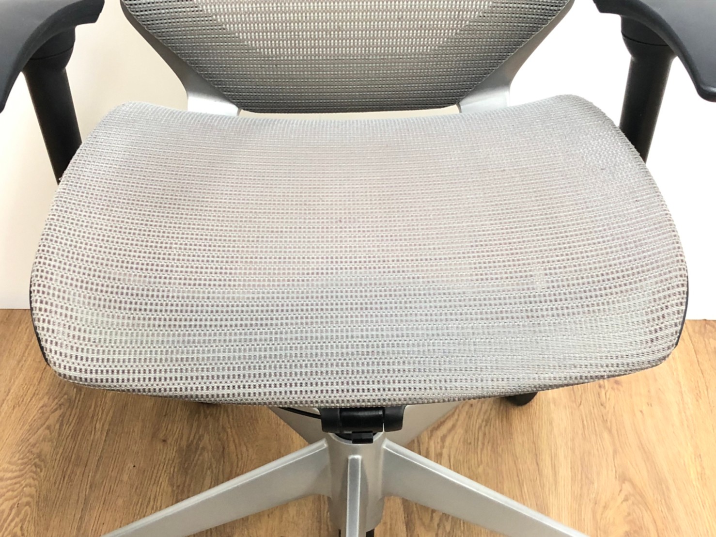 もちろん座り心地もコンテッサの直系ですから快適です。座面の素材はクッションとメッシュの2タイプあります。私、個人的には座面の中心部分でも外側でもテンションが変わらないクッション素材が、足を閉じても開いても快適なので推しです!"