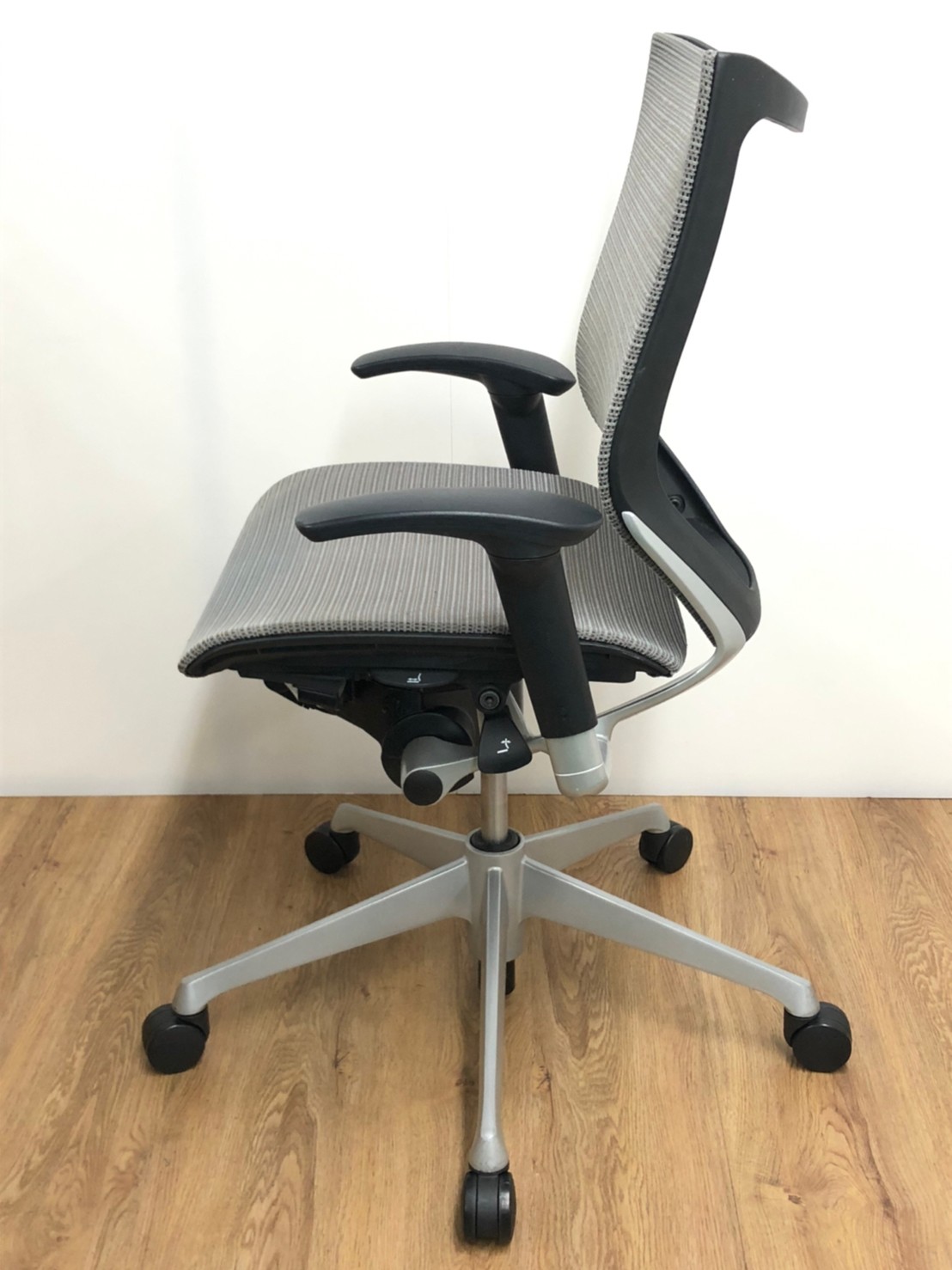 気に入っているのはリクライニング調整の自由さです。同じオカムラ社製の上位モデルや下位モデルも、角度が5段階程度の固定位置だったり、リクライニング強度も4段階だったりしますが、バロンチェアはどちらも無段階。つまり完全に好きな位置、好きな強度に調整することができます。