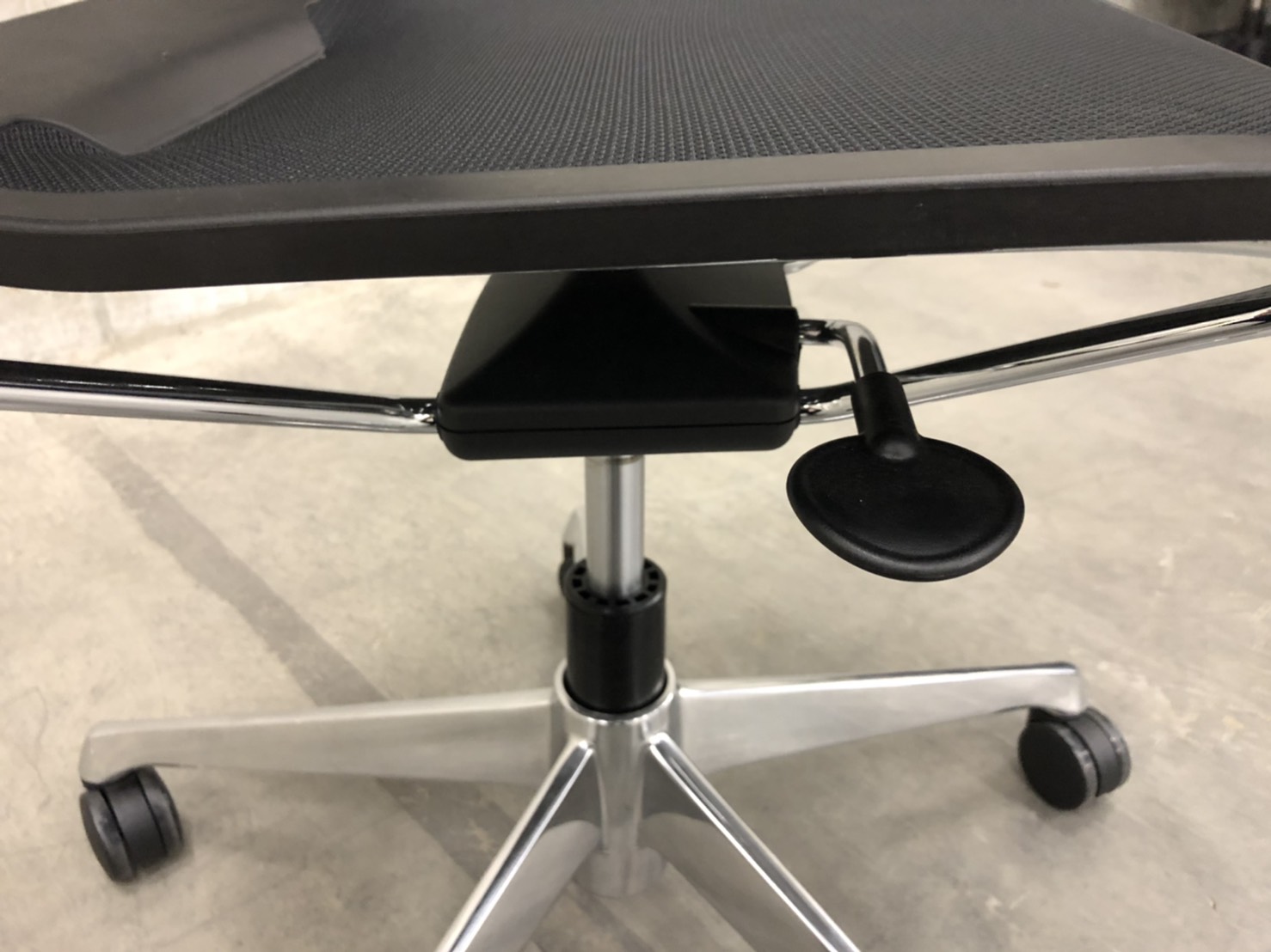 他の機能としましても、他のOAチェア同様、5本脚タイプは座面下のレバーで高さ調整が可能です(調整範囲87mm)