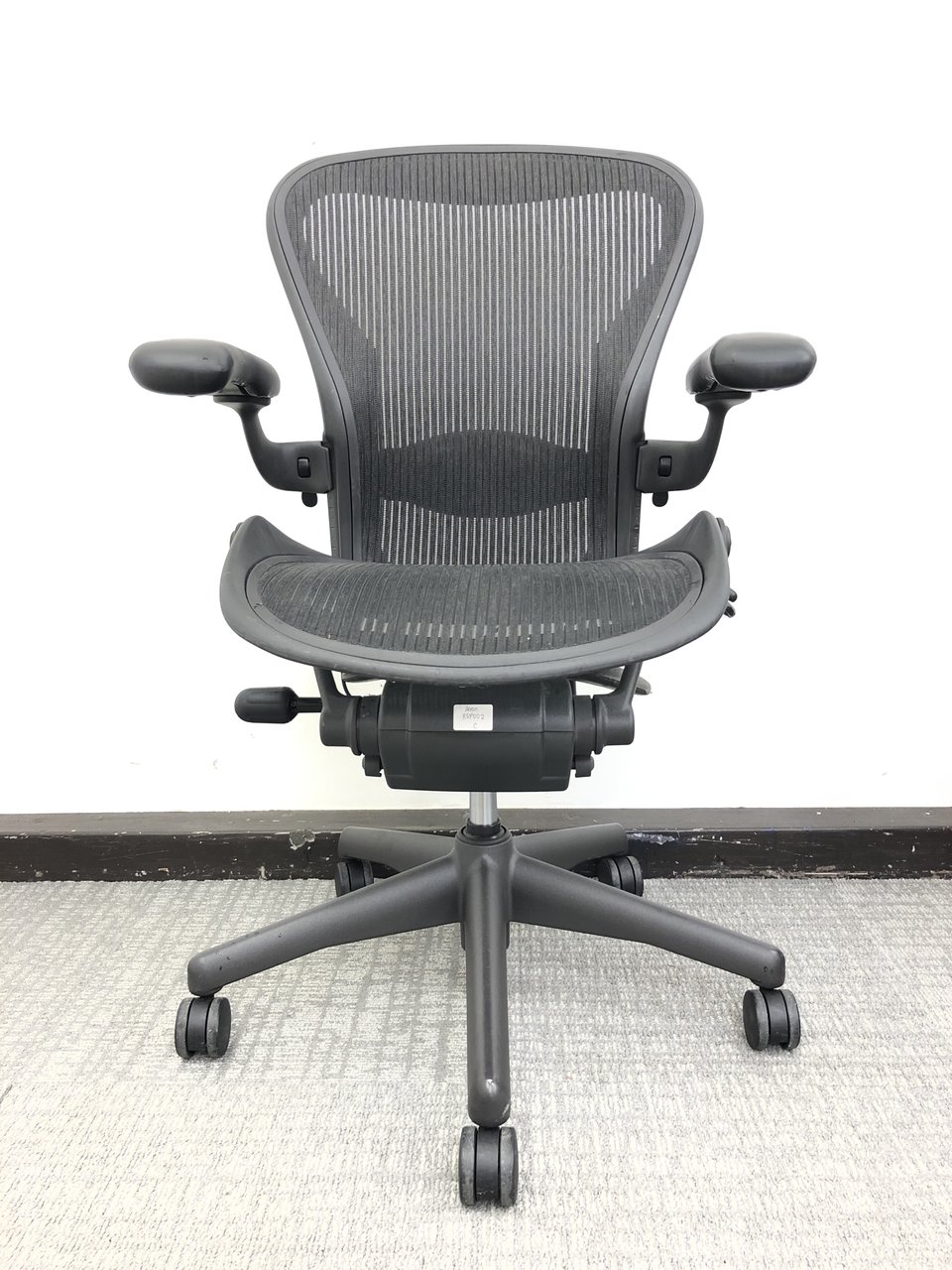 【★状態イマイチのためお安く!】■ハーマンミラー製 アーロンチェア Bサイズ 固定肘 ※キズあり・ランバーサポート無・昇降ガス圧弱めのためお安く!【訳あり特価品】