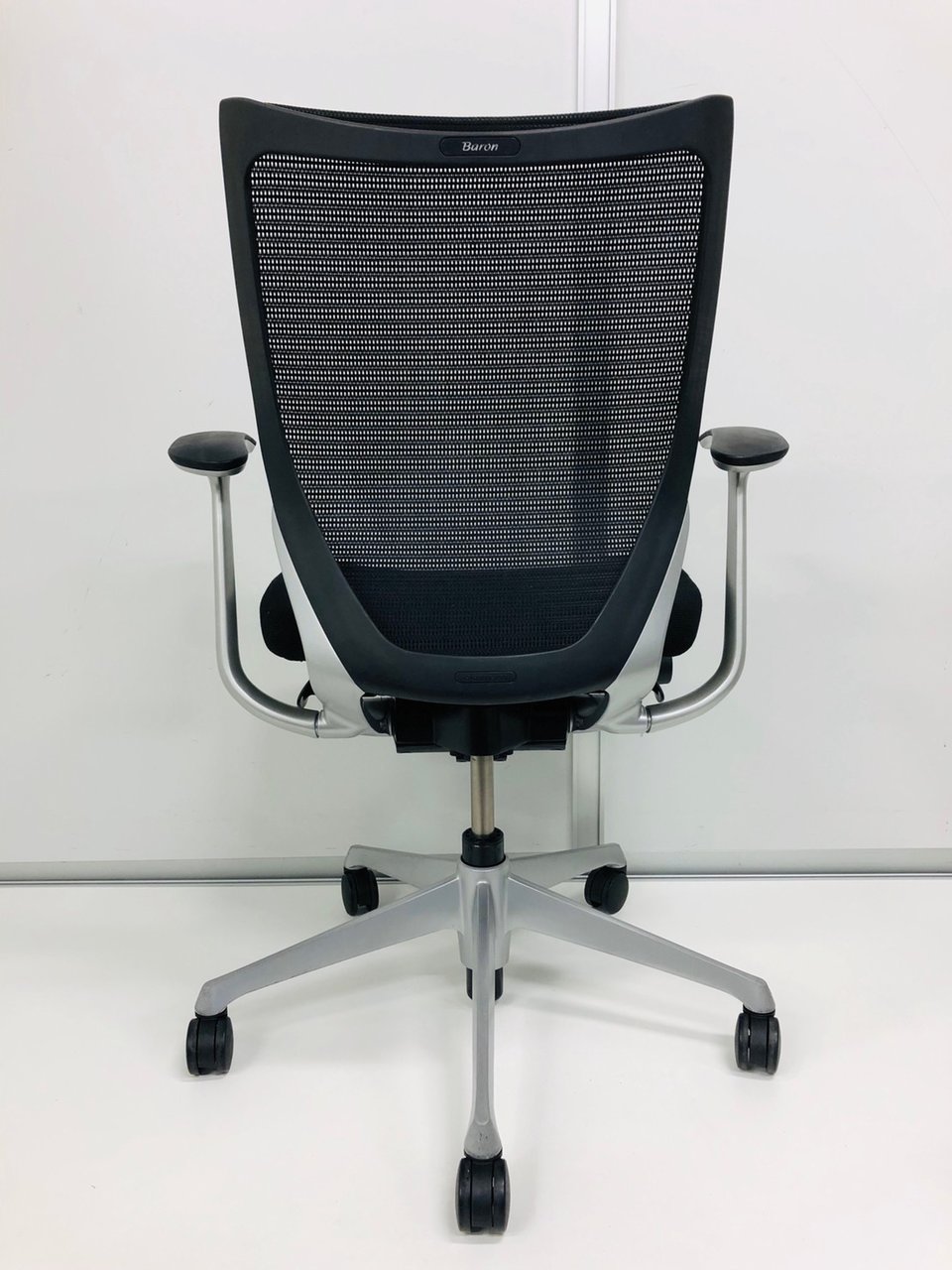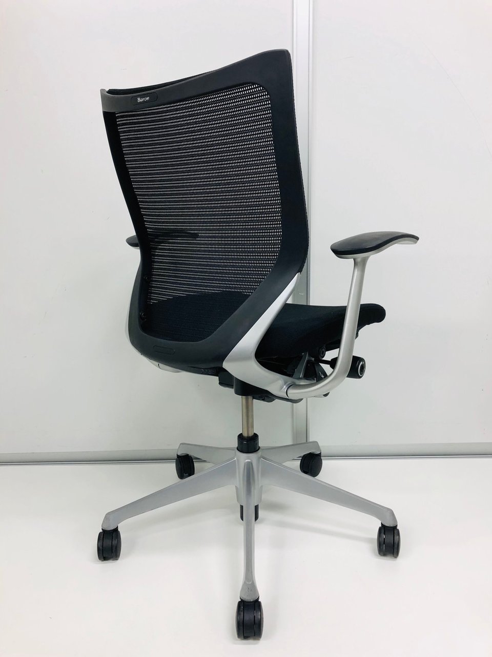 【国産メッシュチェアの代表格!オフィスの執務室、会議室におすすめ!】■オカムラ(okamura)製 バロン(Baron)チェア 肘付 ローバック 背面メッシュ ■固定肘 ■ブラック×ホワイトシェル【AD】