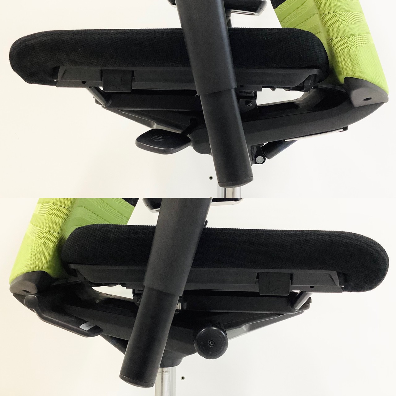 - 座面は、前後45mm(15mmピッチ4段階)の範囲でスライドします。