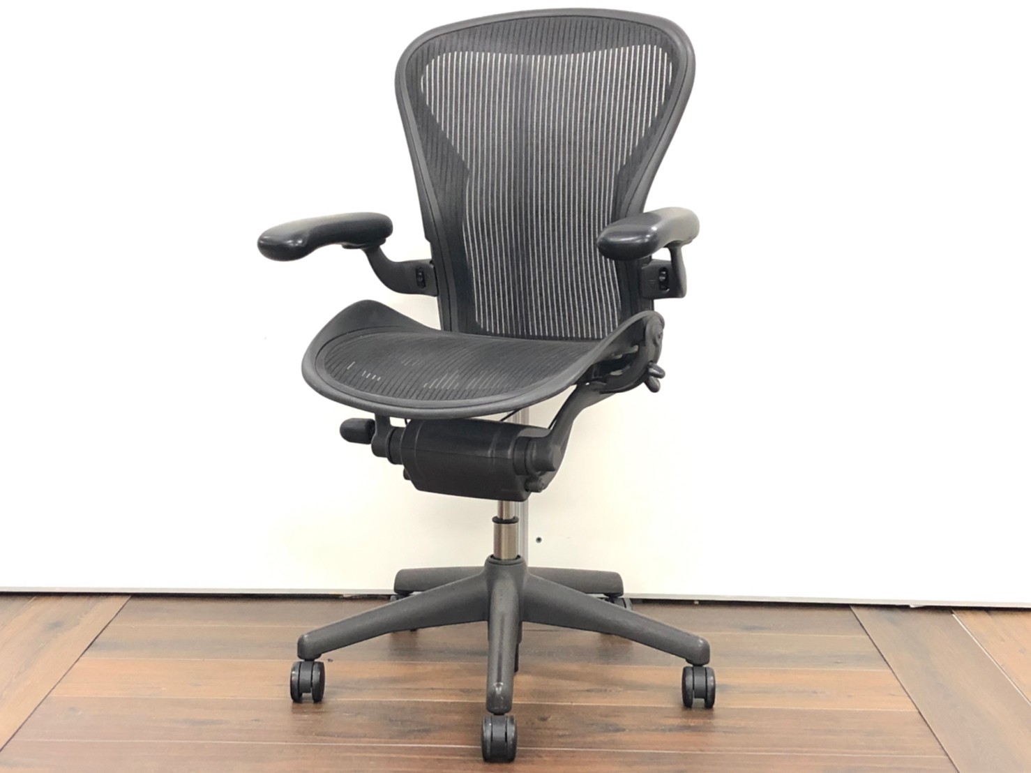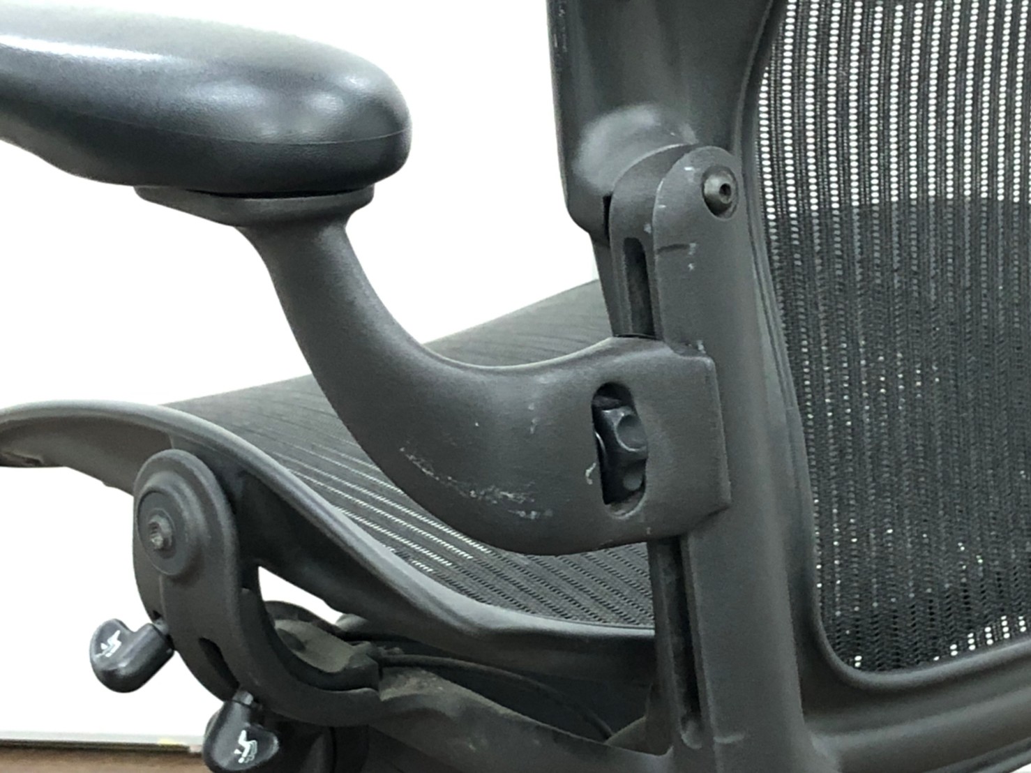 【スタイリッシュなデザインに快適な座り心地!】■ハーマンミラー アーロンチェア Bサイズ 固定肘 ランバーサポート無 ※キズあり・劣化ありのためお安く!【A01029474】
