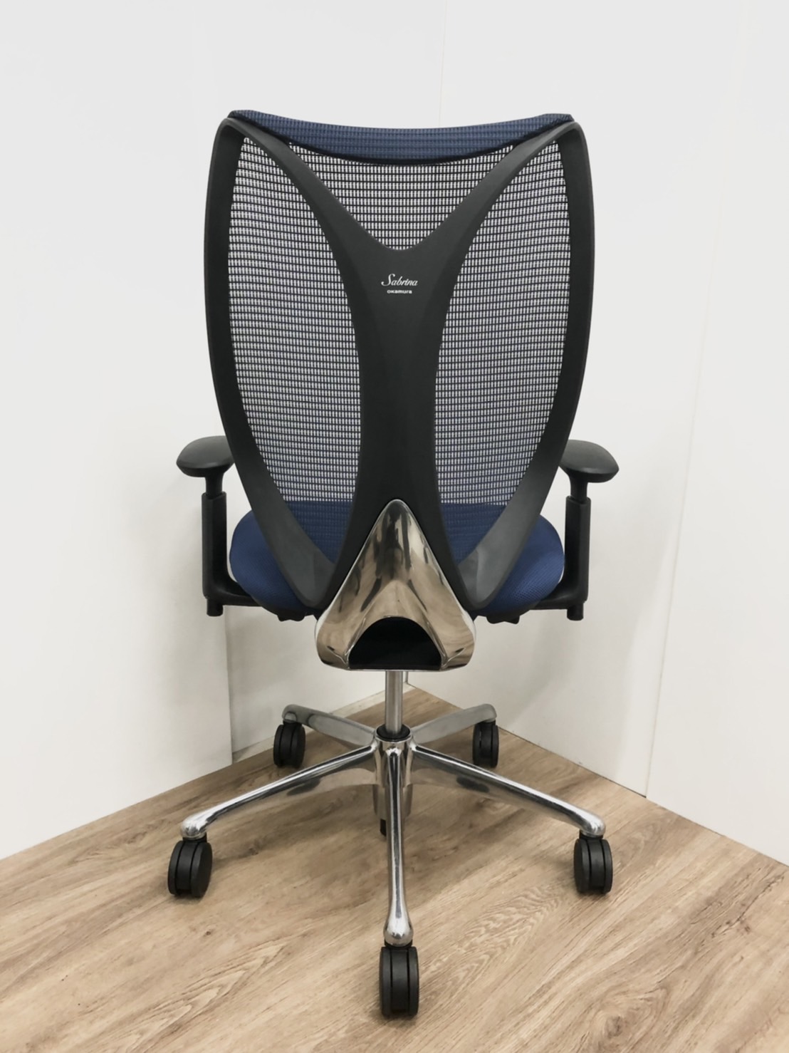 【在庫入替】【1脚限定/クレジット決済優先】【前傾チルト付!】■okamura製 Sabrina ハイバック 肘付き ■可動肘 ■背面メッシュ:アクアブルー 座面:ブルー ホワイトフレーム/オカムラ/サブリナ ■弊社使用欄【A01014866】【T1】