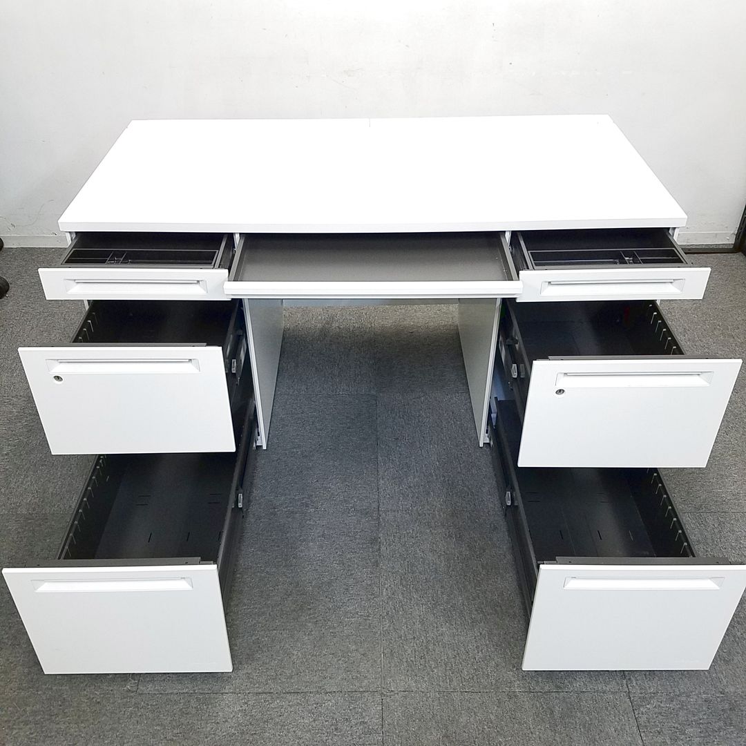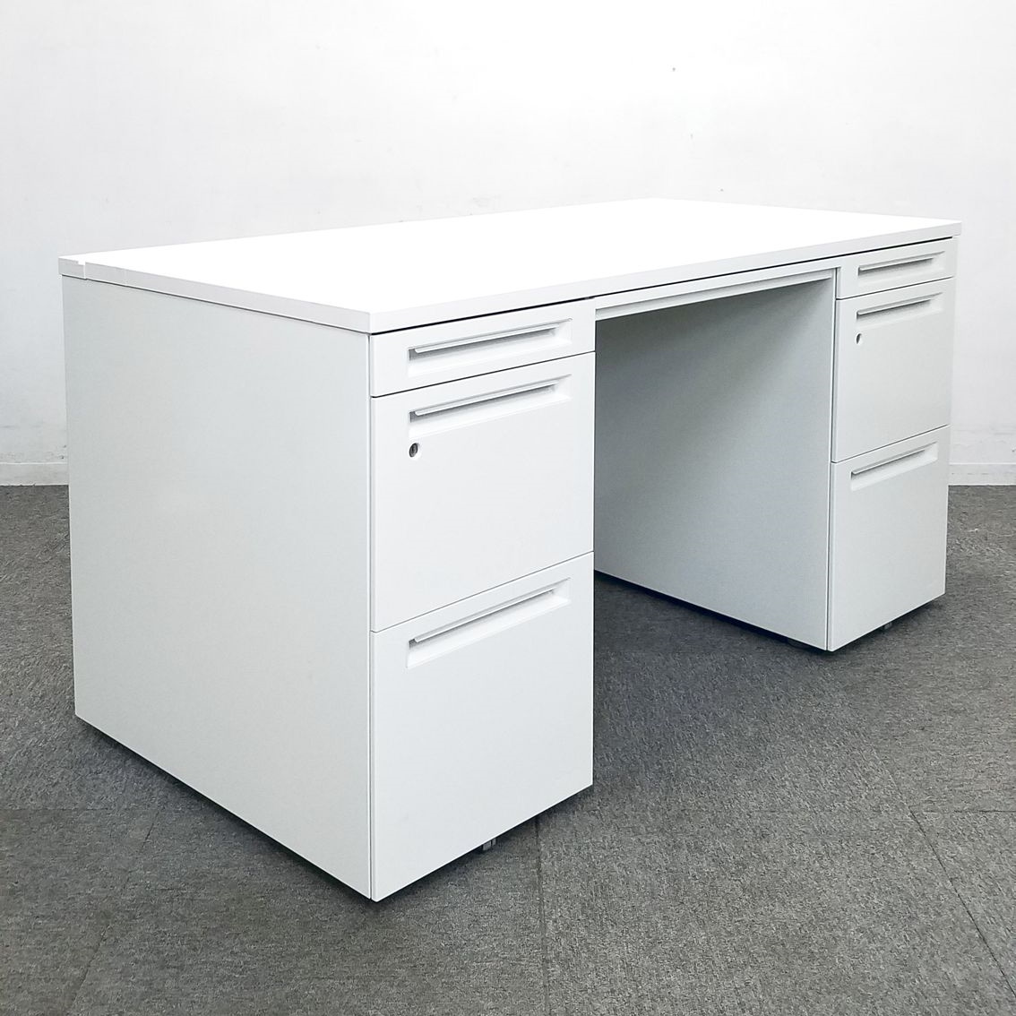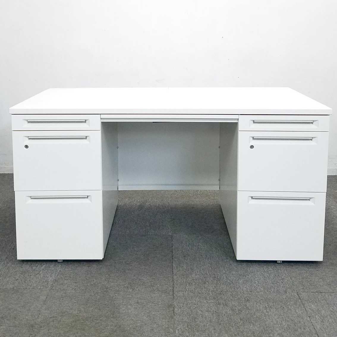 定番/大人気/希少 オカムラ(okamura)製 アドバンス 両袖机 幅1400㎜ ■ホワイト ■シリンダー錠