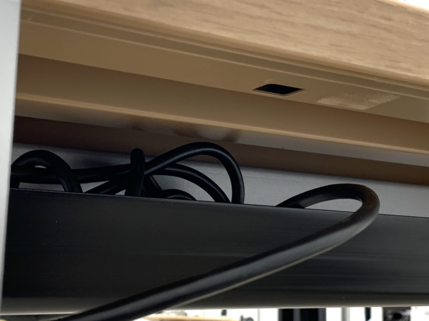 デスクの高さ設定は天板下の上下ボタンを押すだけ。