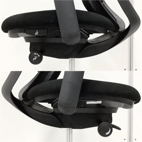 - 座面右下のダイヤル操作で、リクライニングの強弱調整が行えます。これまでのダイヤル式よりも、少ない回転数で、最弱?最強の調整が可能です。