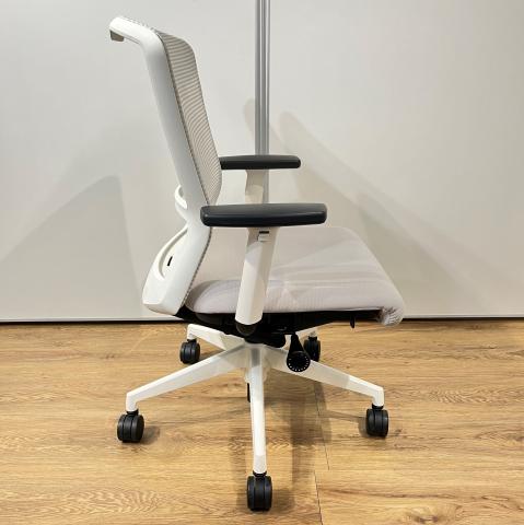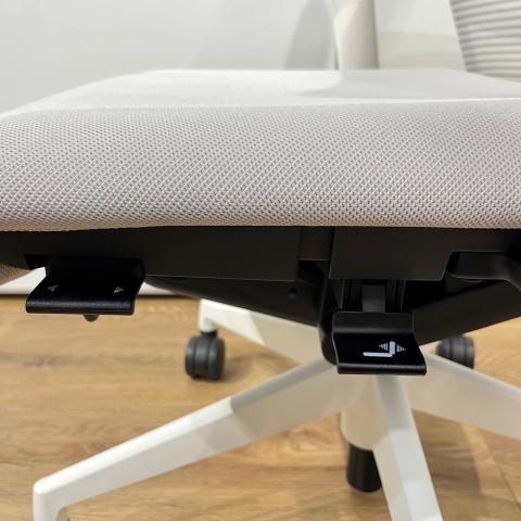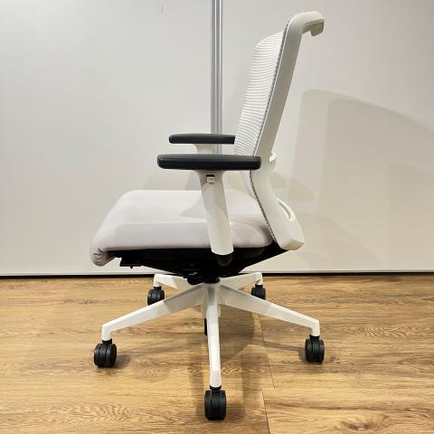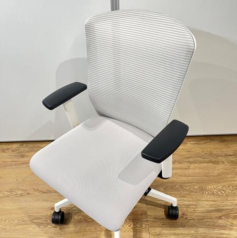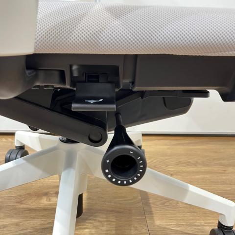 また、個人的にオススメなのは『フルアジャスタブル肘』というアーム部分が斜め前に伸びていくタイプの肘置きを搭載したモデルです。高さを上げれば上げるほどパッドが前方に迫り出していくので、デスクワークの際にちょうど肘を置きたい場所に肘置きがきます。これがとても快適なので、ぜひ一度お試しいただきたいです!*エルフィチェアの肘パーツはフルアジャスタブル肘の他に、固定肘、アジャスタブル肘などがあります。